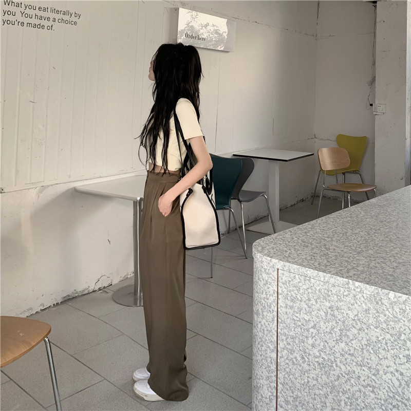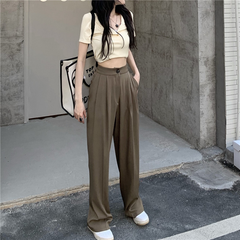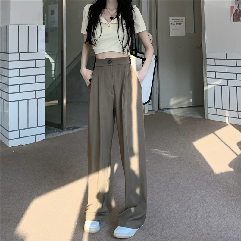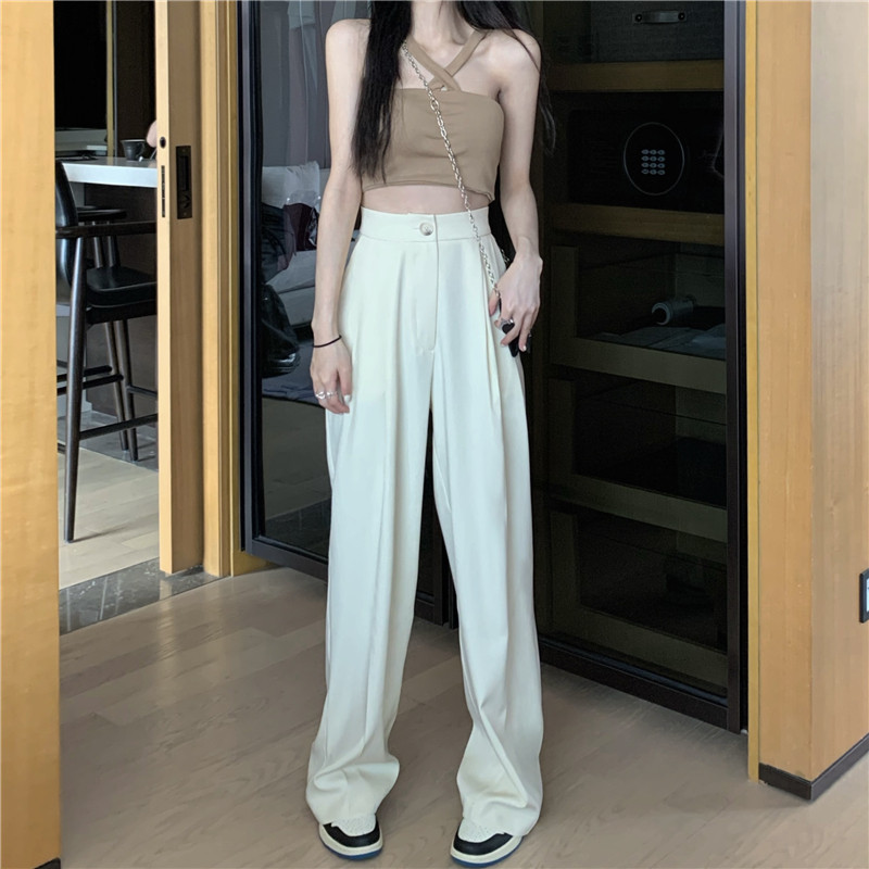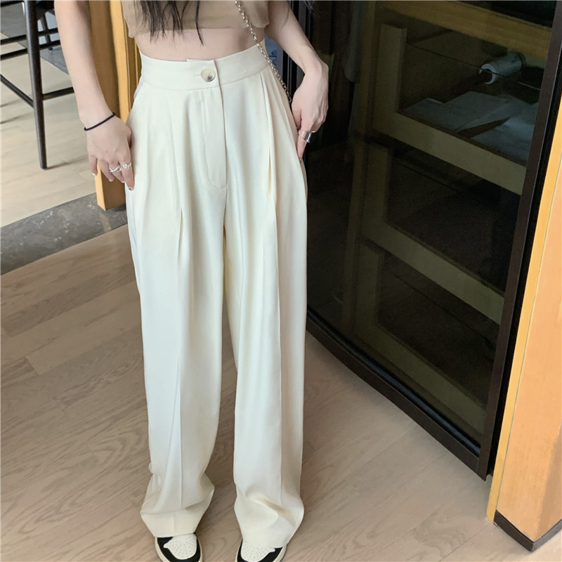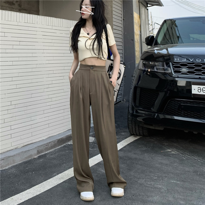 PF927#韩版chic复古港味高腰垂感长裤女宽松显瘦西装裤休闲裤