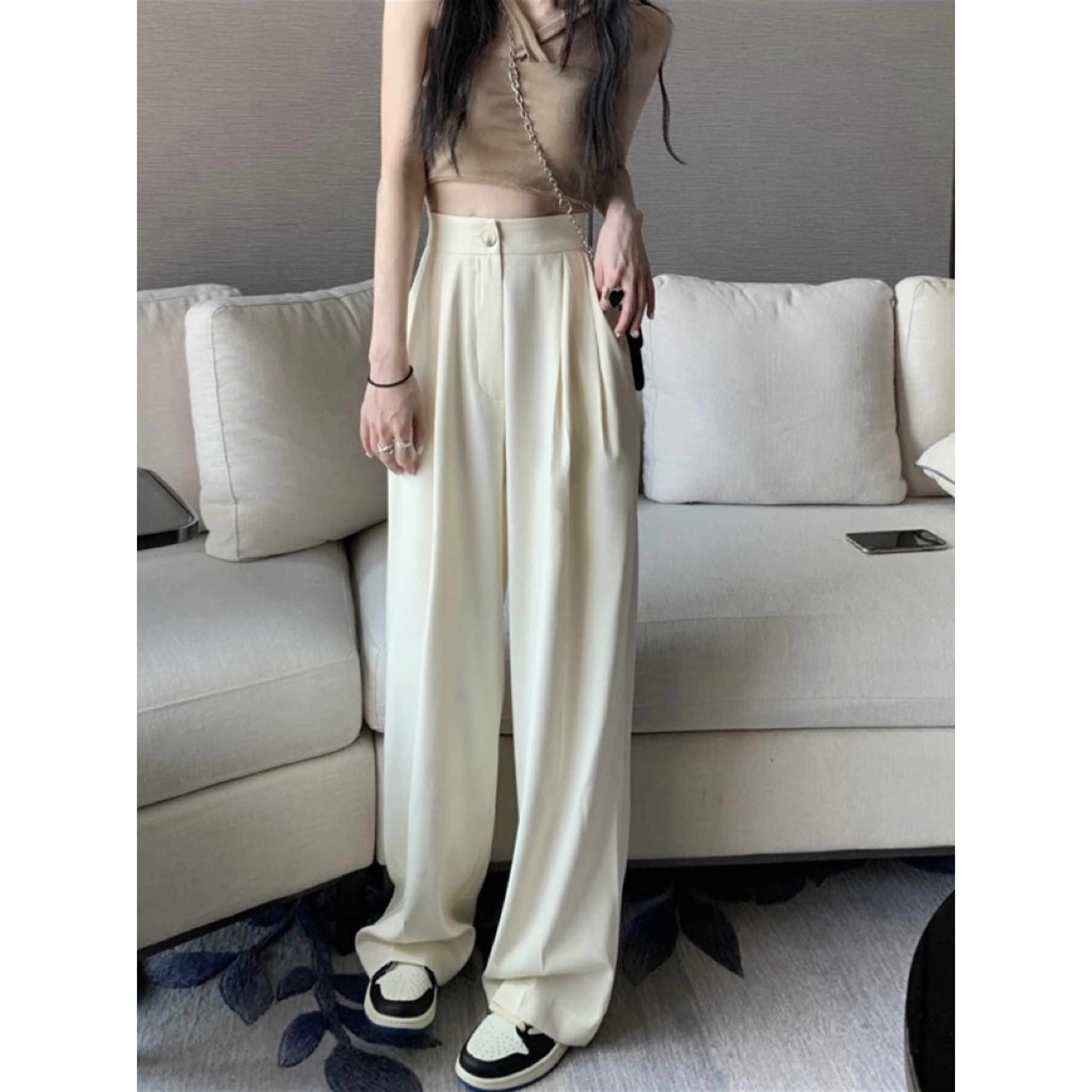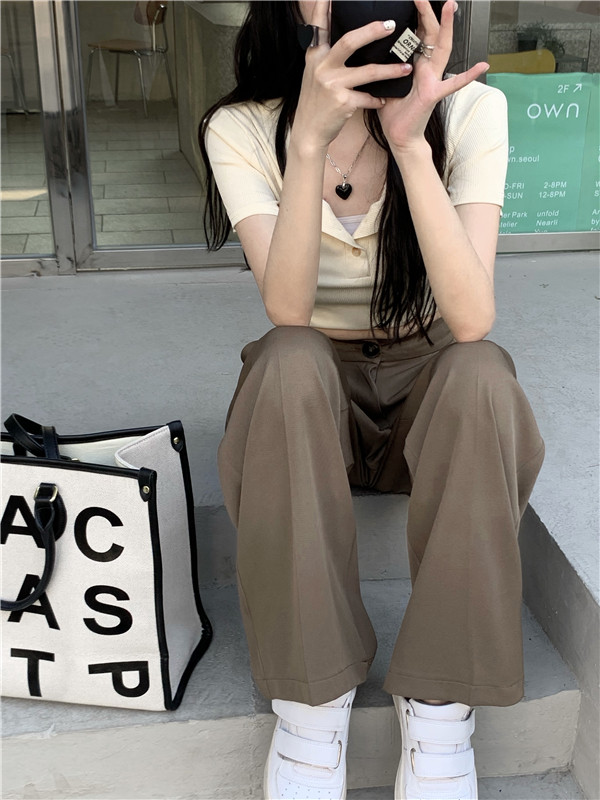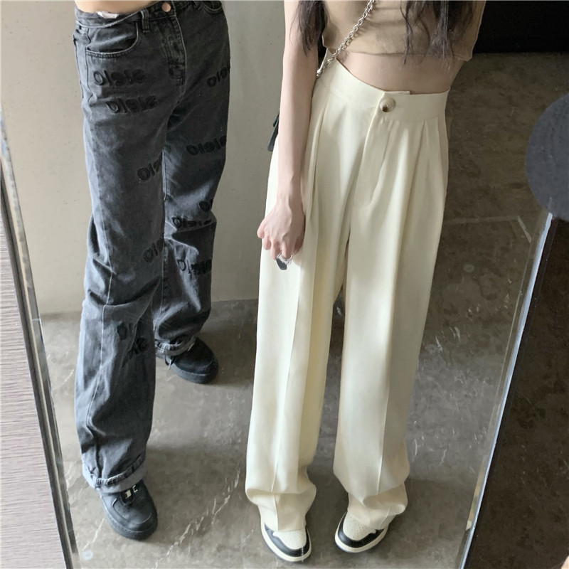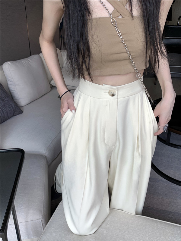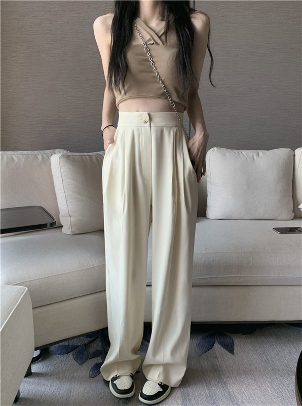 PF927#韩版chic复古港味高腰垂感长裤女宽松显瘦西装裤休闲裤