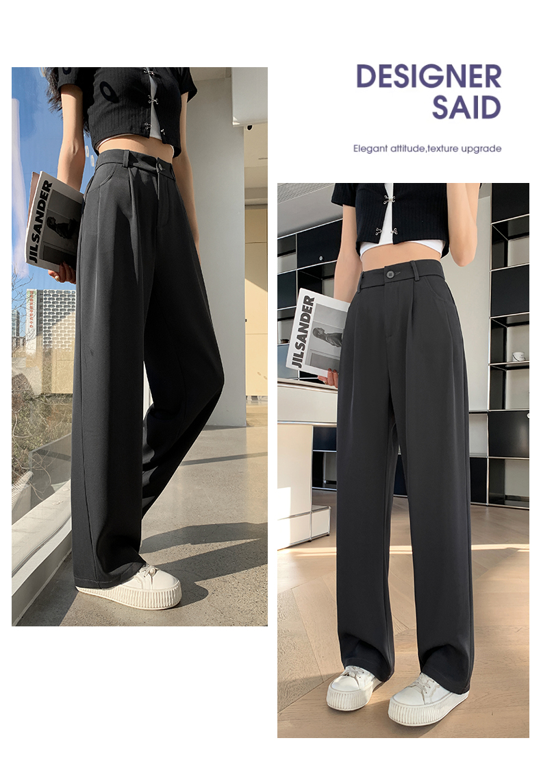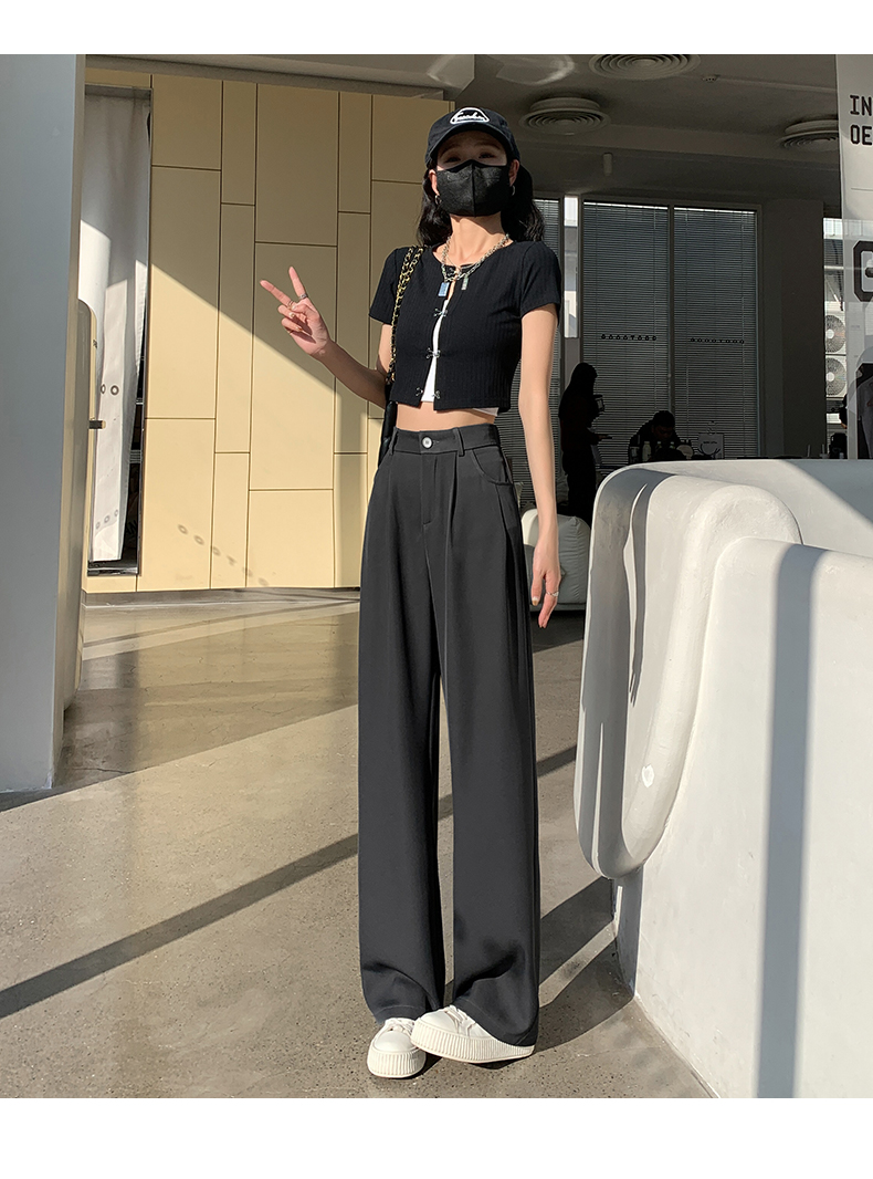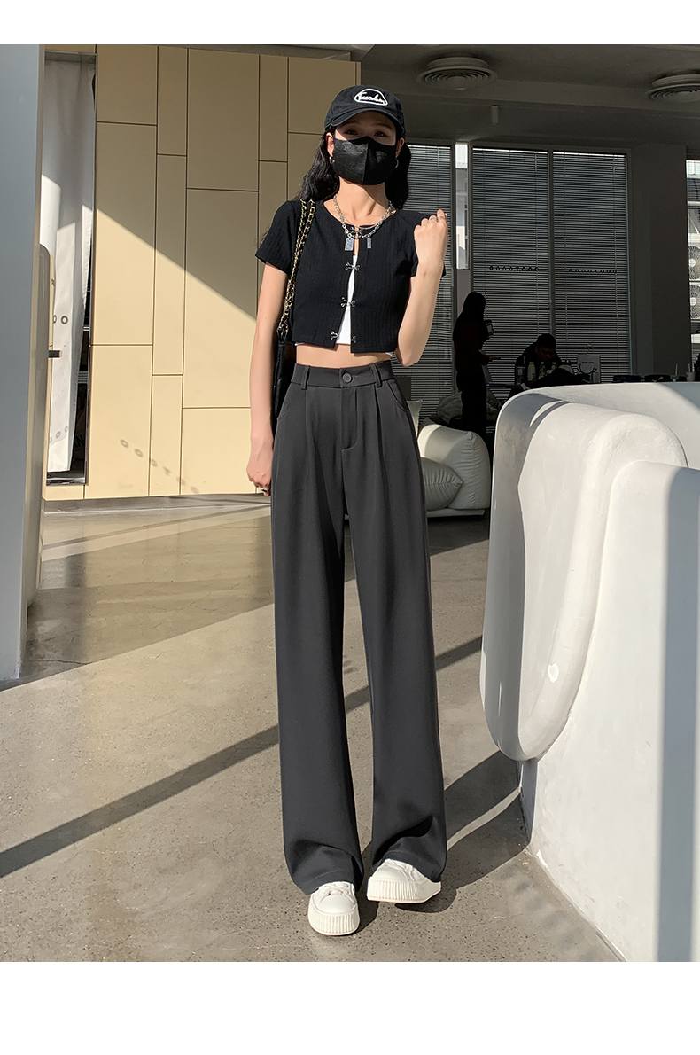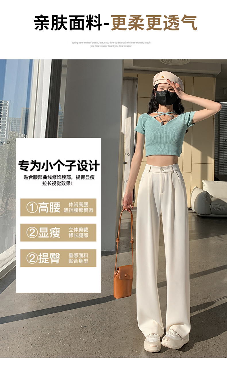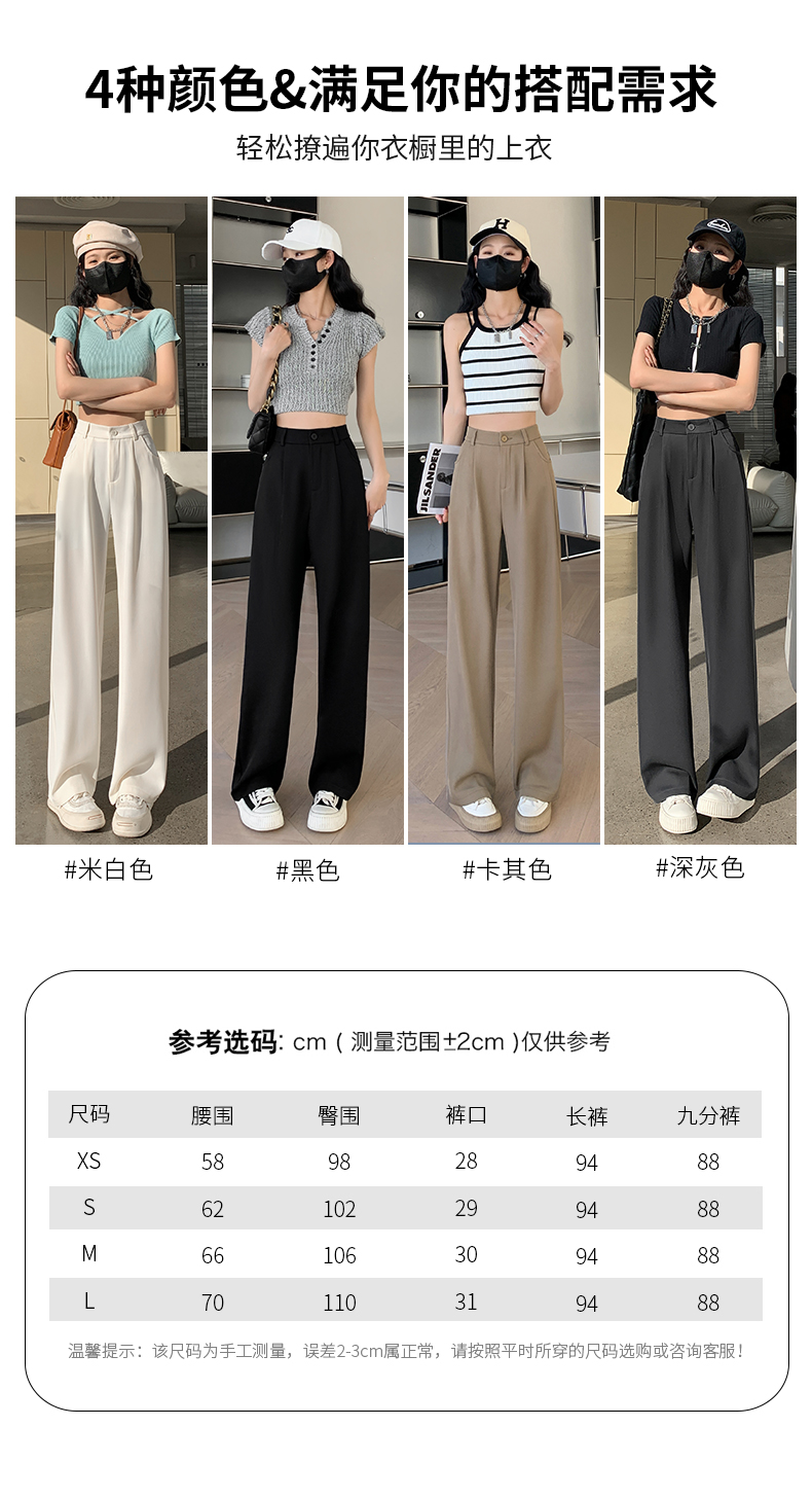 PF945#窄版阔腿裤女2024新款春秋垂感休闲黑色直筒小个子夏季冰丝西装裤