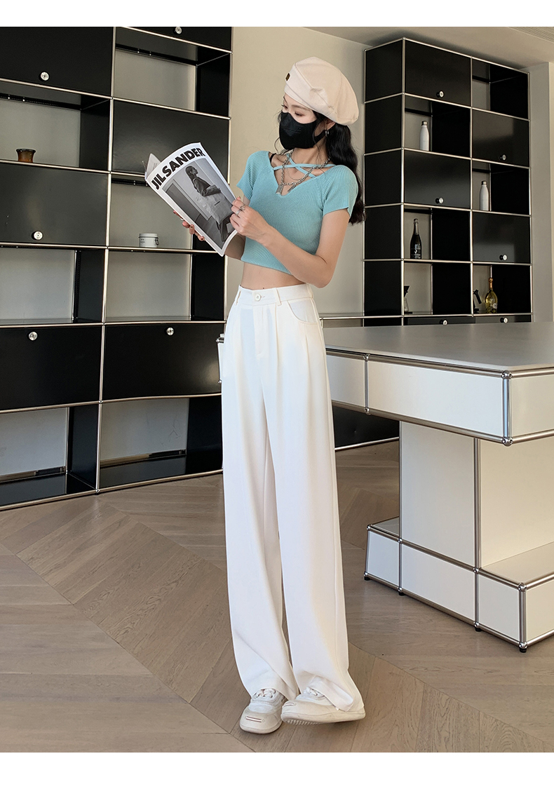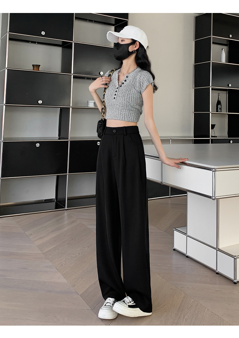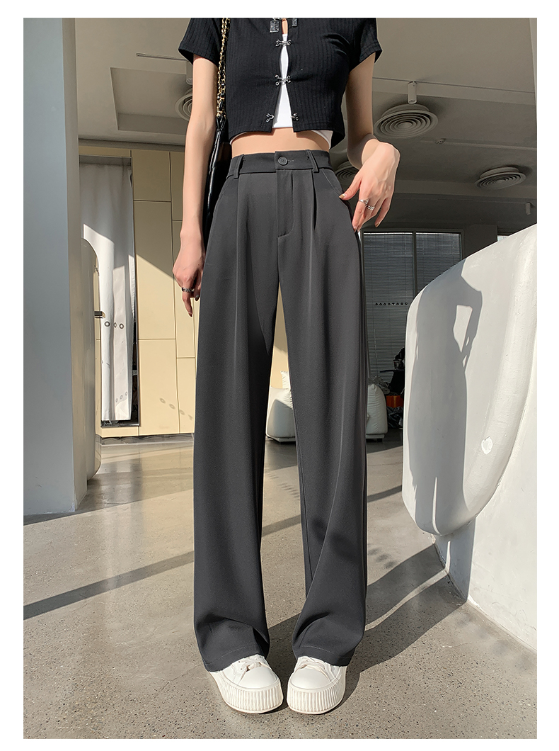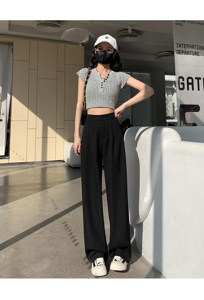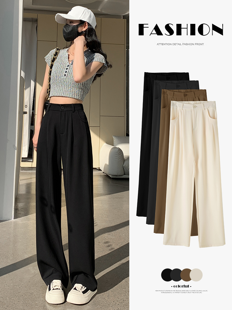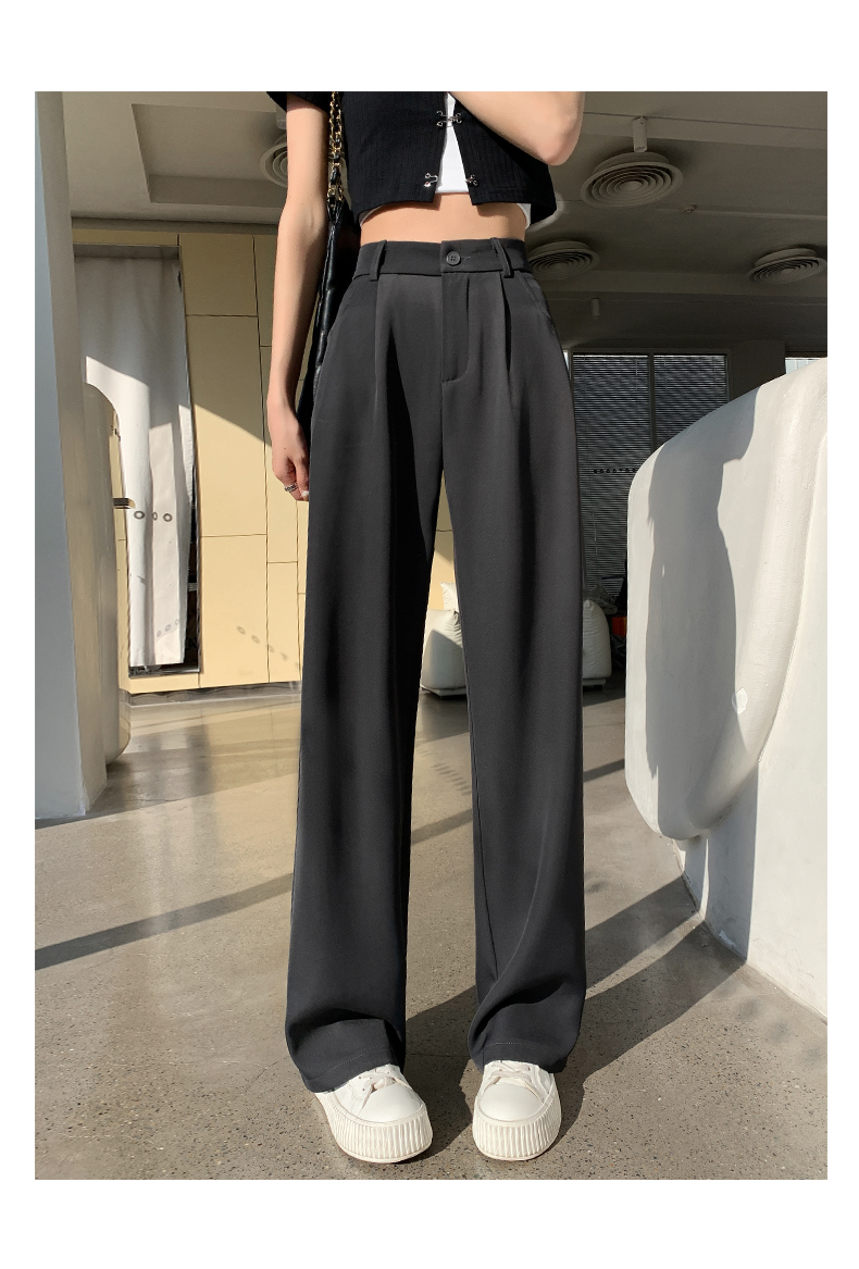 PF945#窄版阔腿裤女2024新款春秋垂感休闲黑色直筒小个子夏季冰丝西装裤
