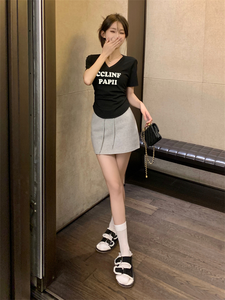 PF975#大码女装 夏装新款胖妹妹时尚休闲遮肚子上衣短袖别致T恤