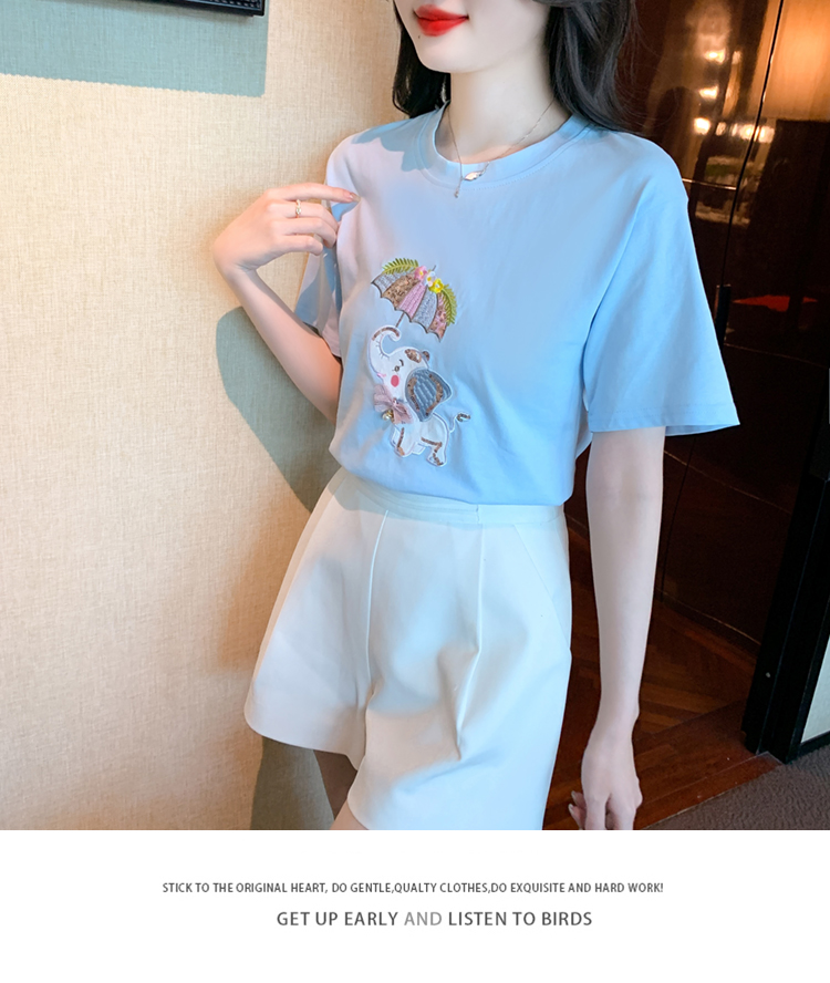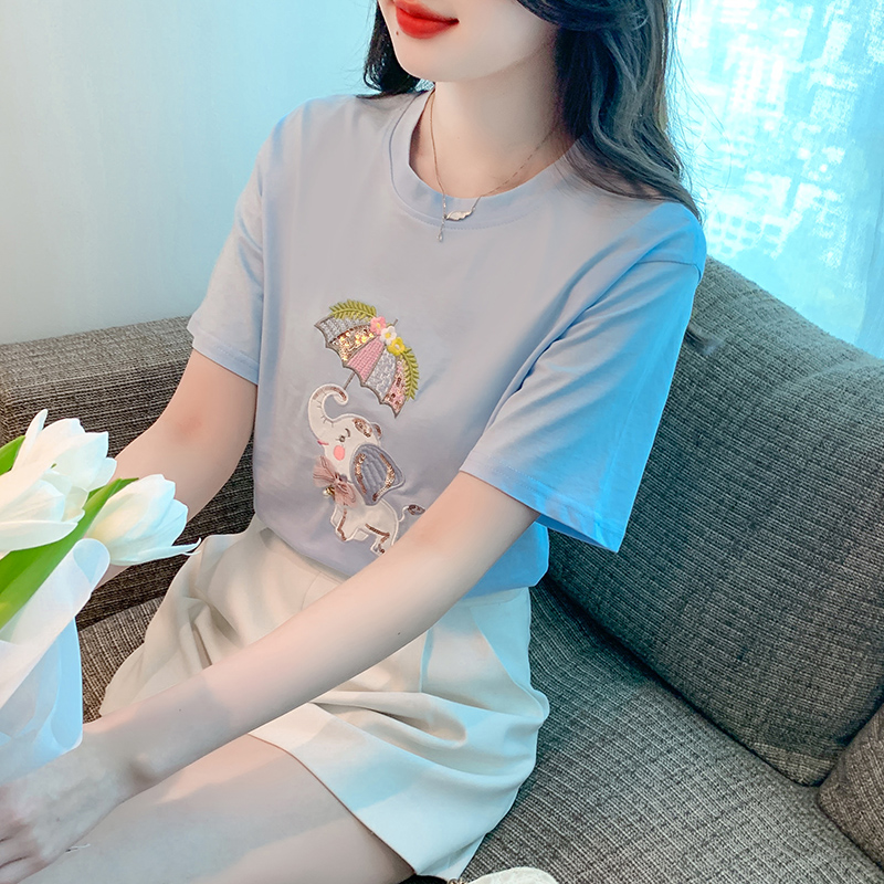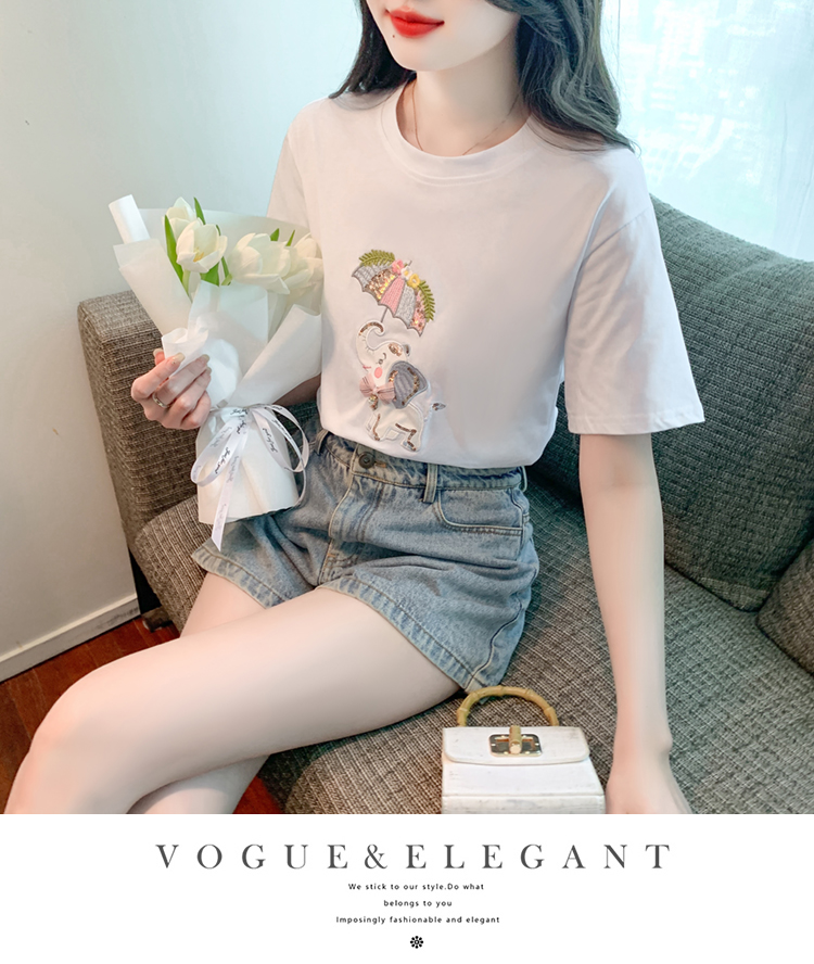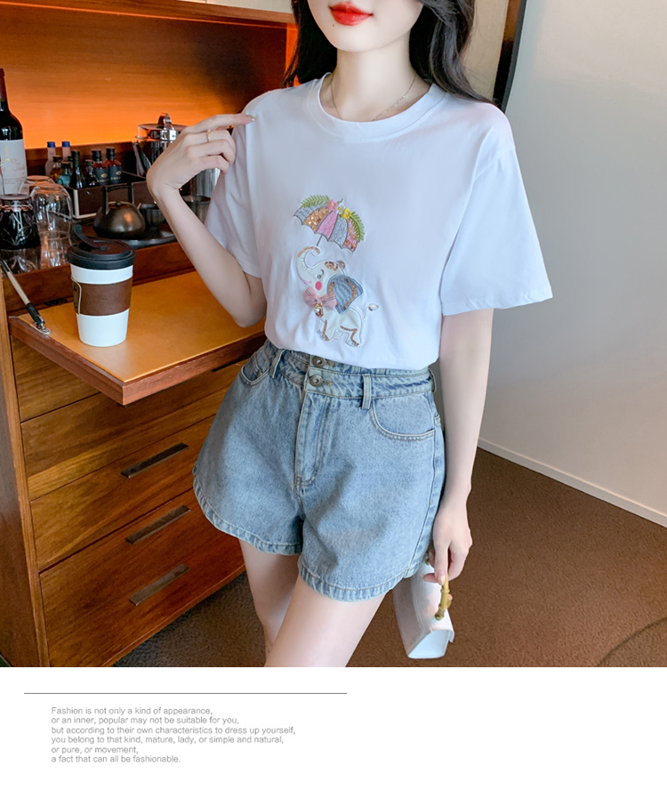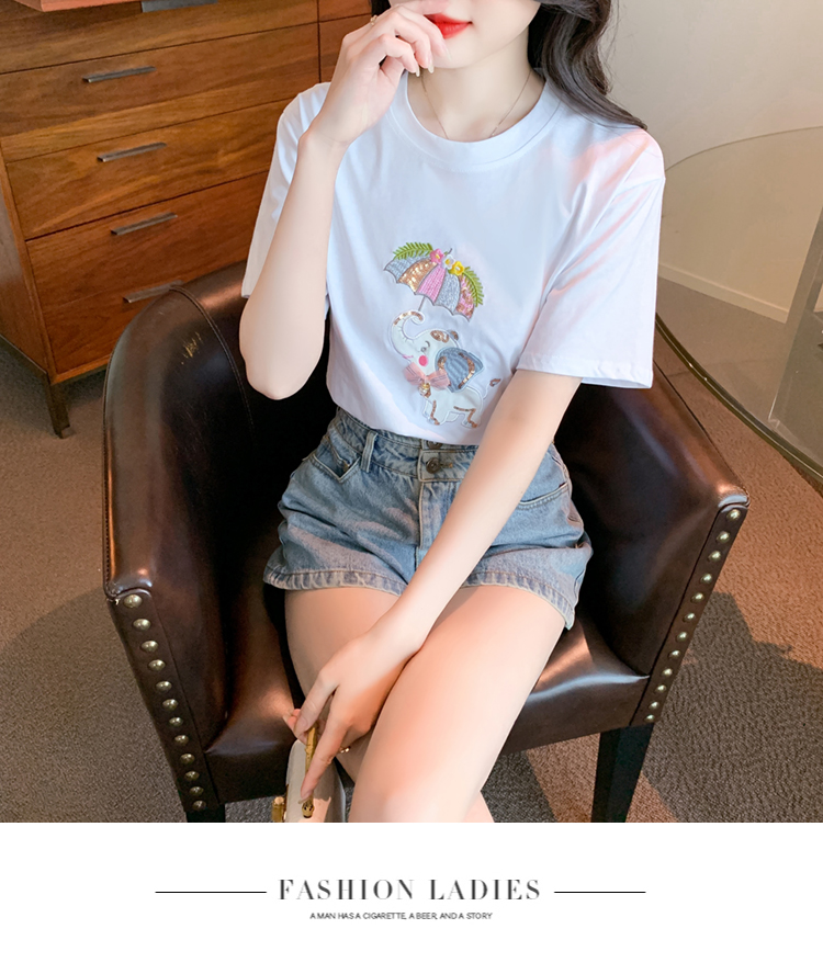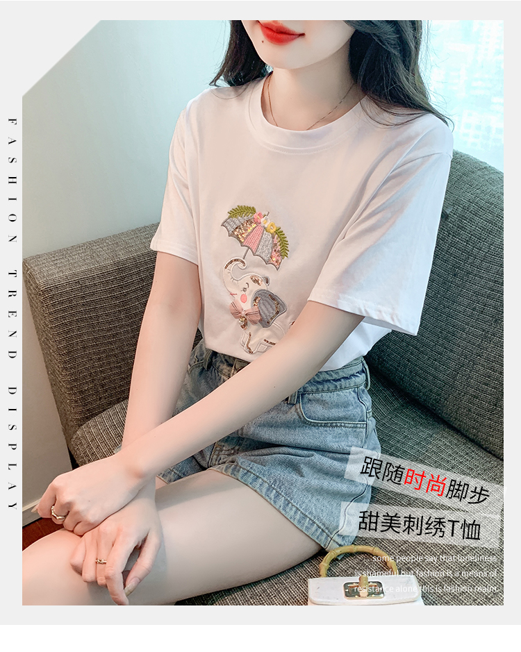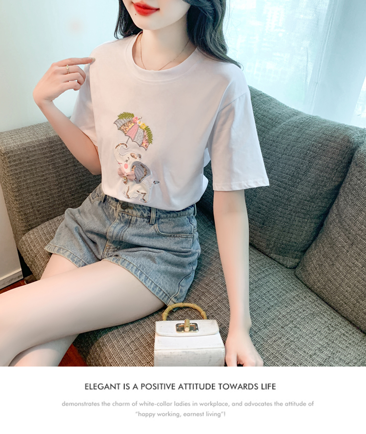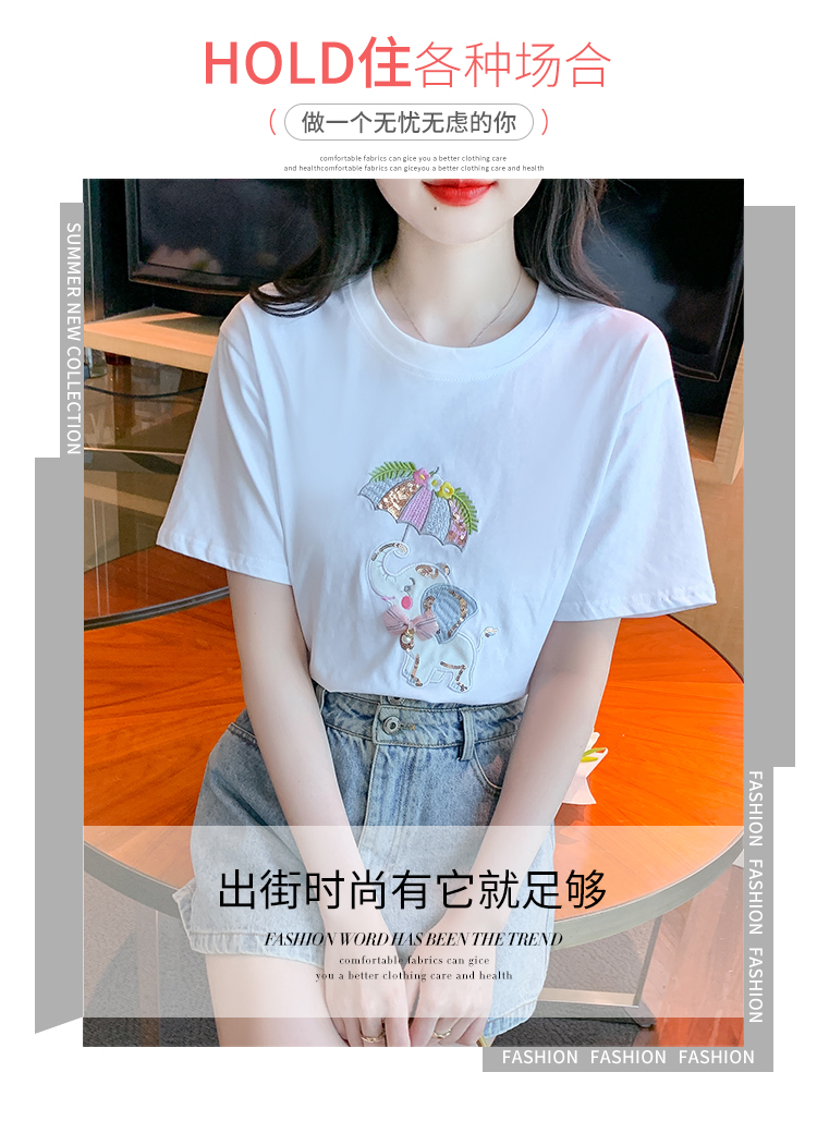 PF1000#夏季新款T恤简约休闲卡通套头标准H型圆领字母/数字/文字人物