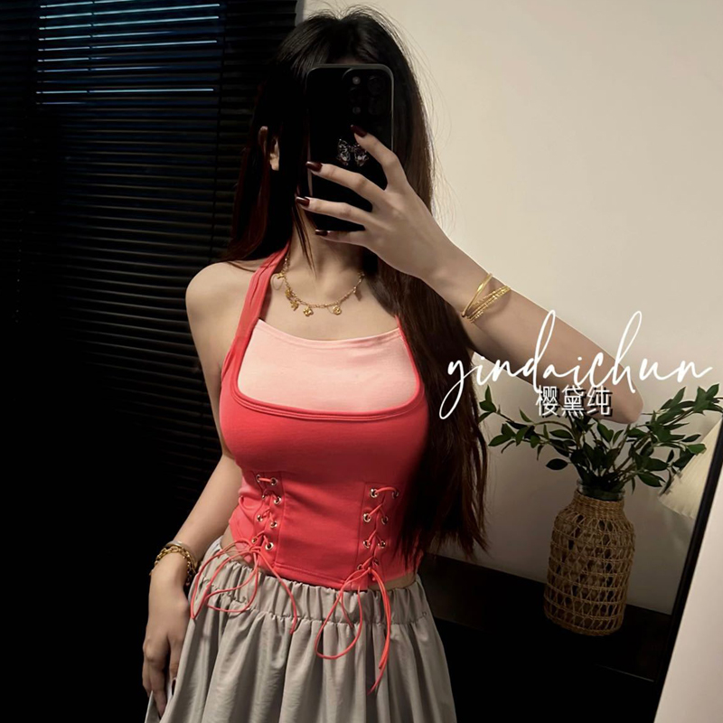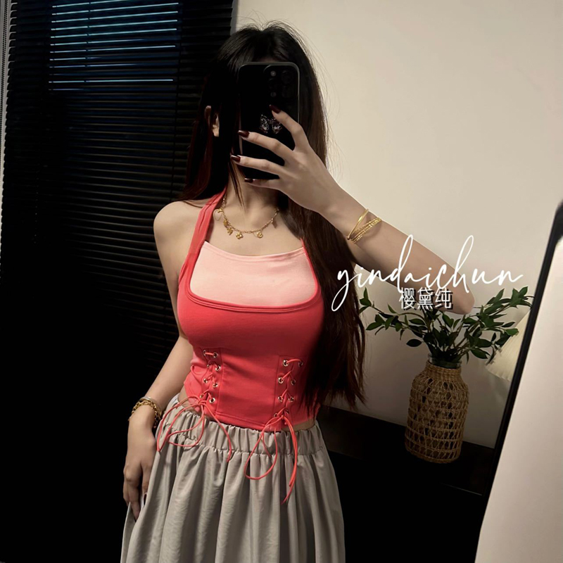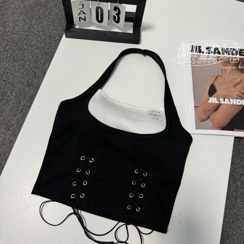 PF1020#大码女装吊带不规则背心遮肚性感辣妹修身外穿上衣带胸垫抹胸