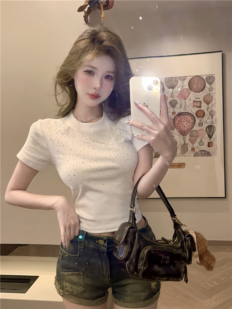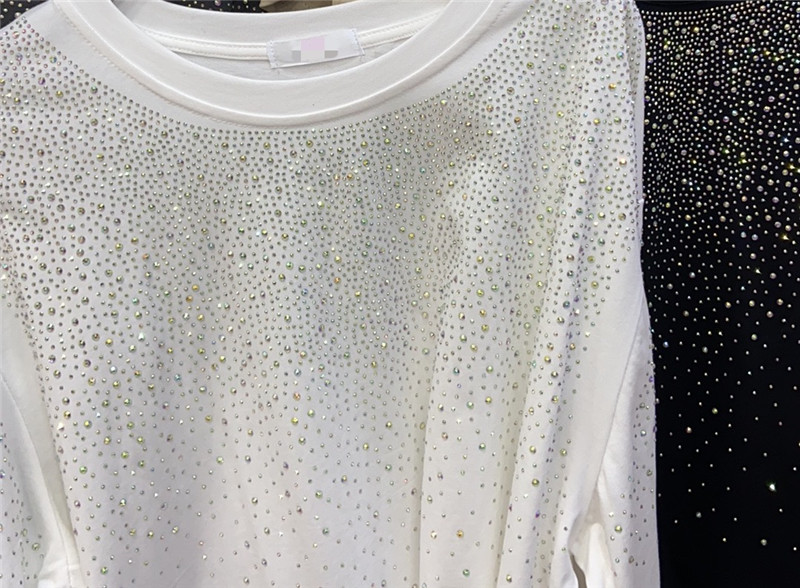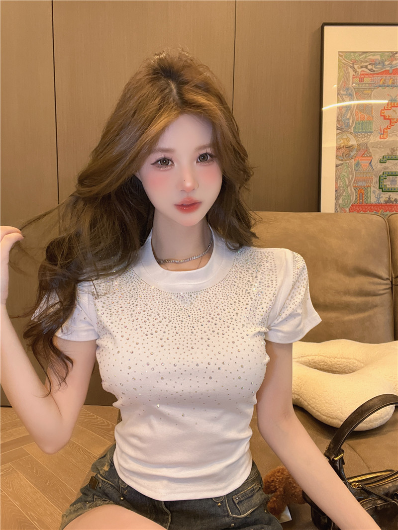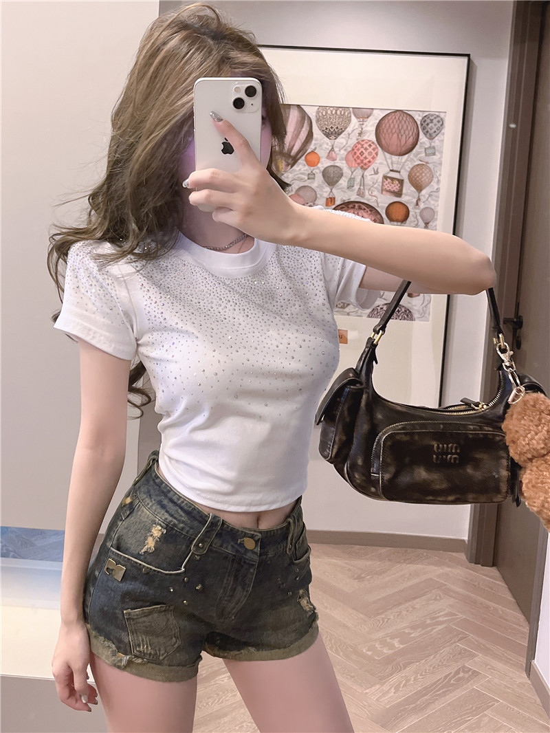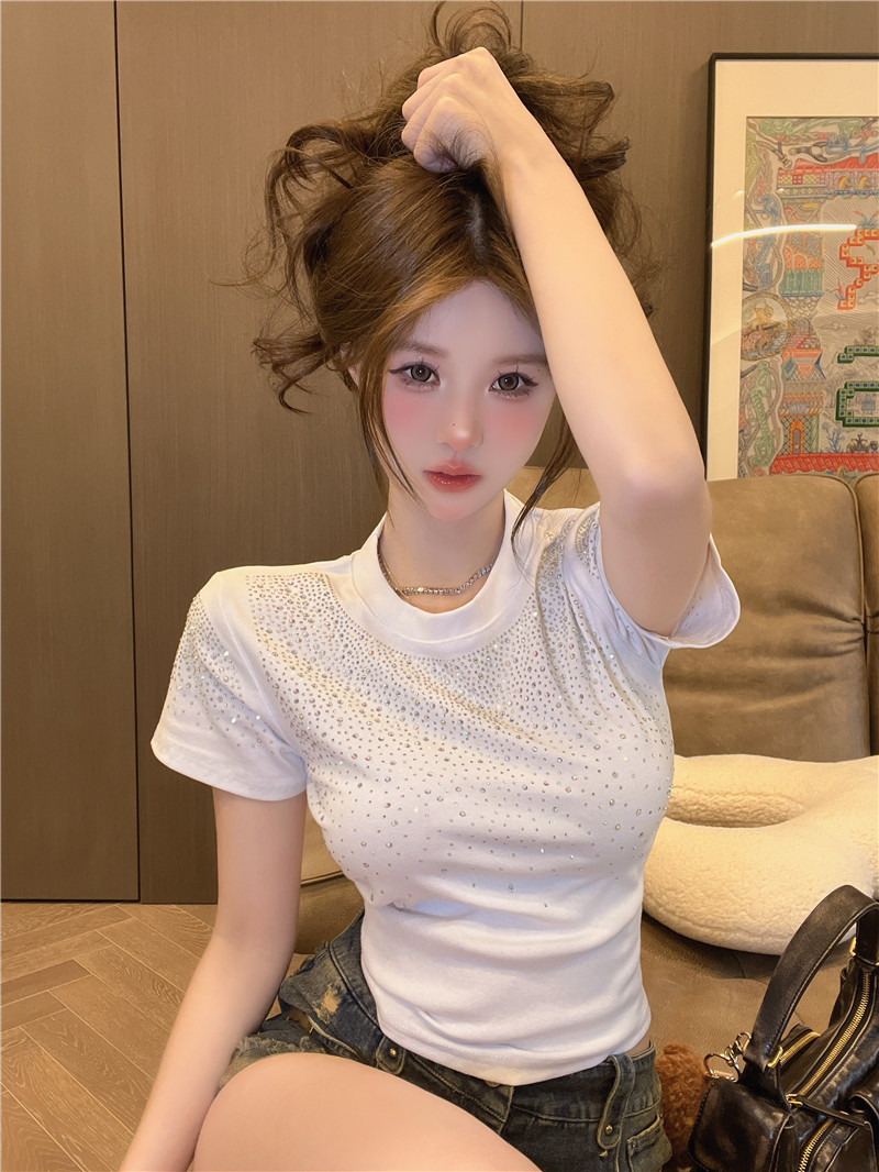 PF1112#网红同款 新款辣妹满天星烫钻领口重工短袖T恤女