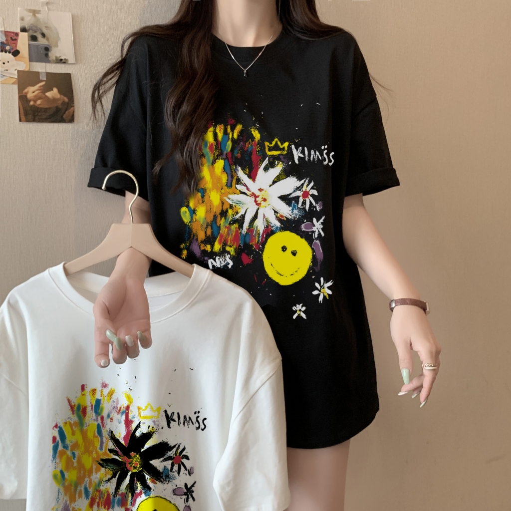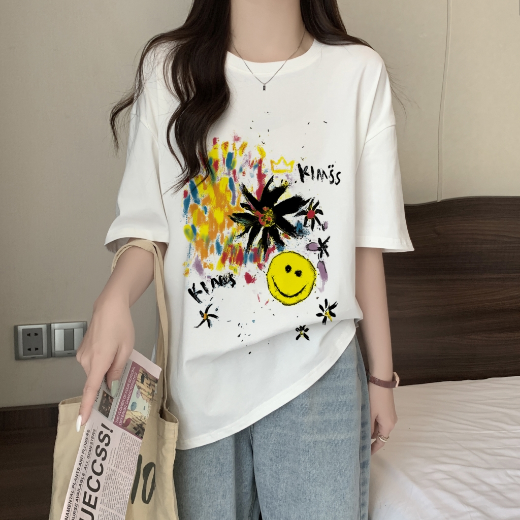 PF1183#棉精梳纯棉 印花夏装短袖T恤女宽松韩版