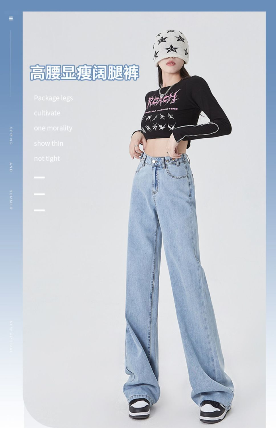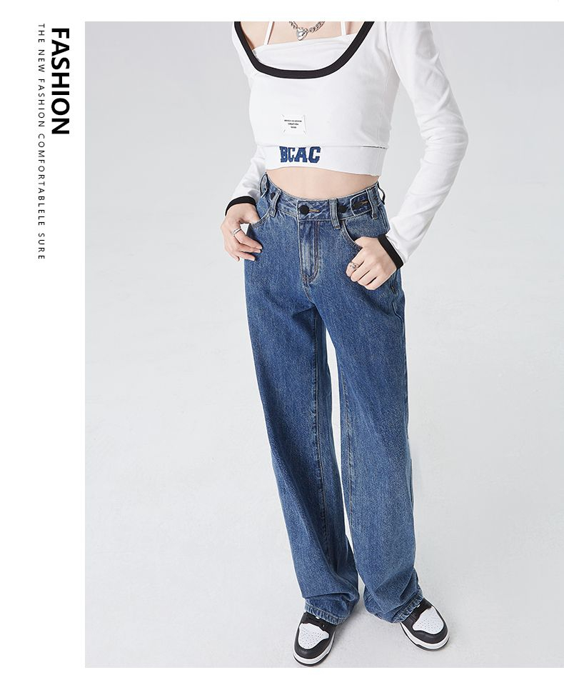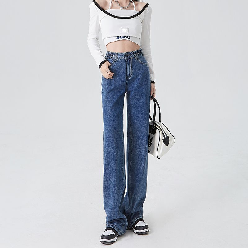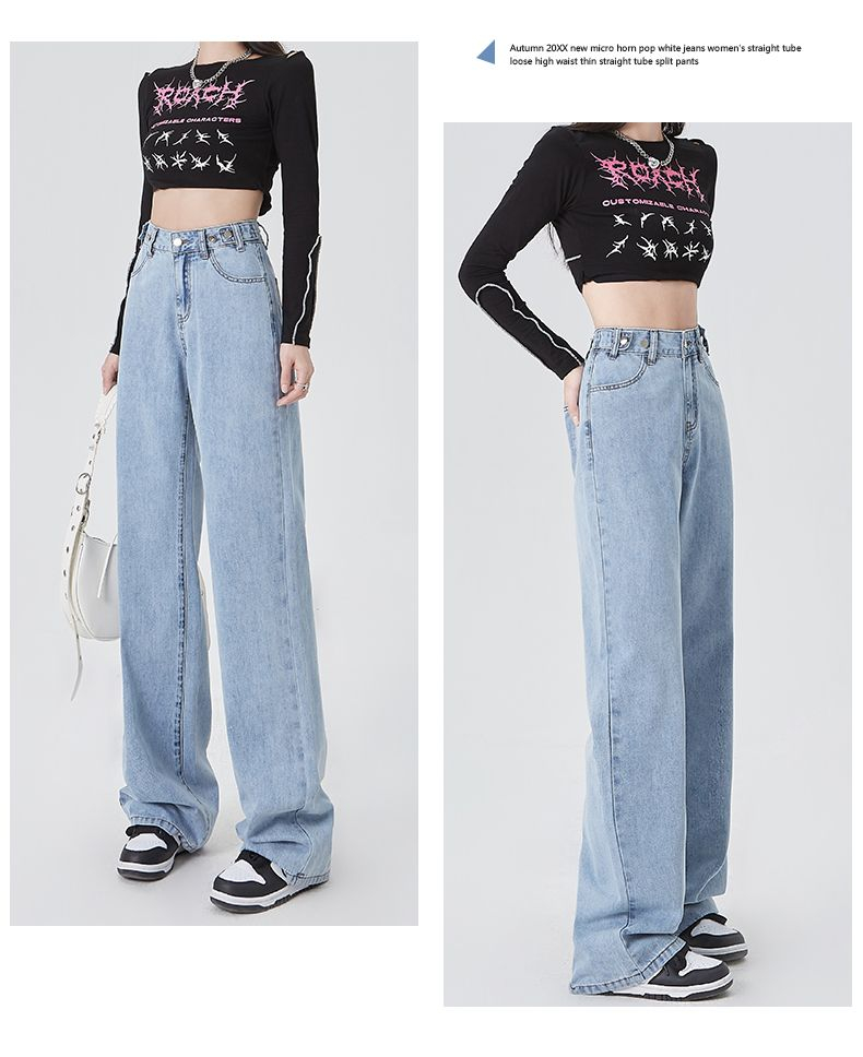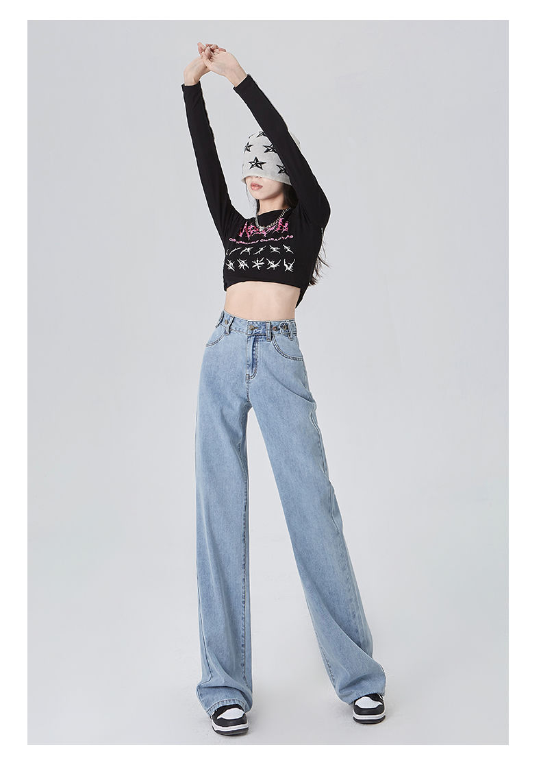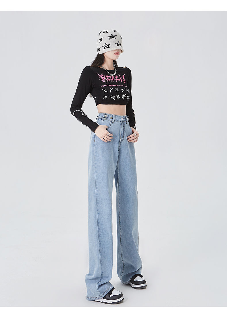 BY03# XS-2XL高腰阔腿学生牛仔裤女春夏薄款宽松显瘦垂感拖地裤