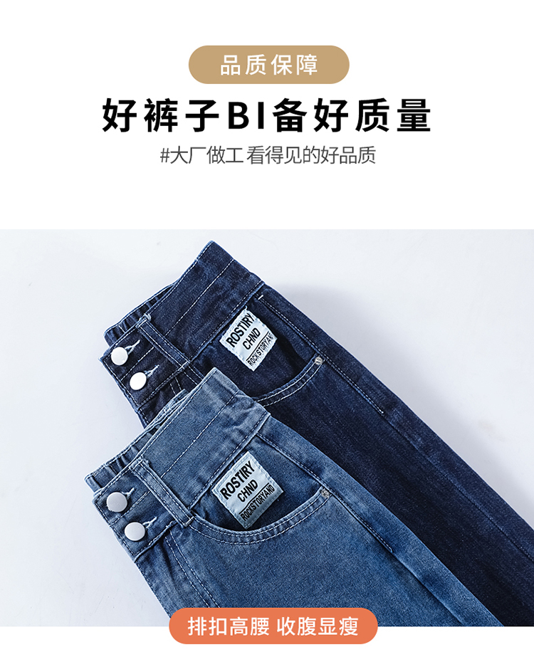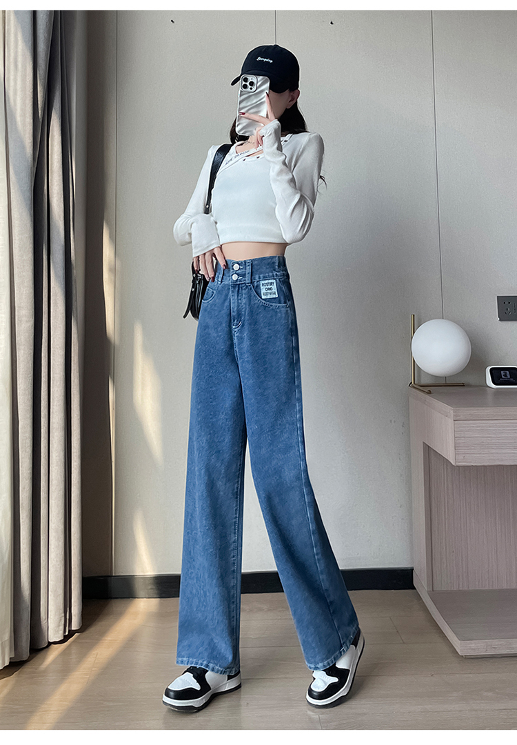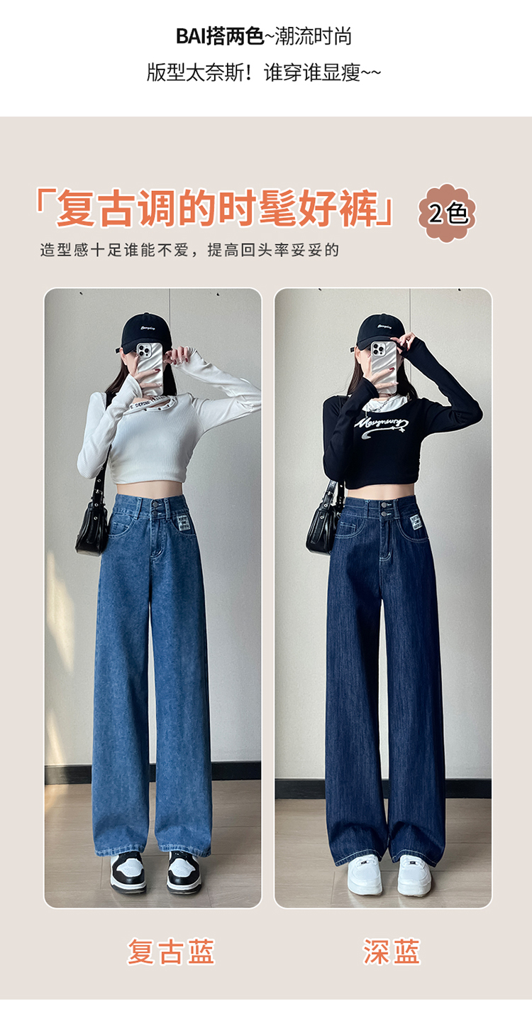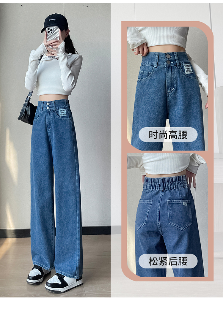 PF1241#后腰松紧牛仔裤女 新款宽松高腰百搭显瘦垂感直筒阔腿裤子
