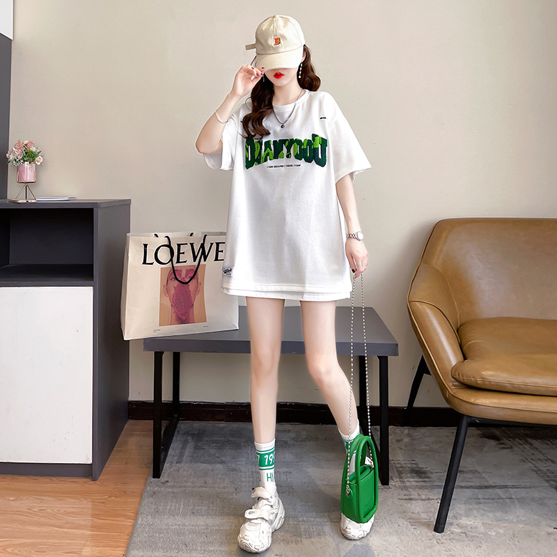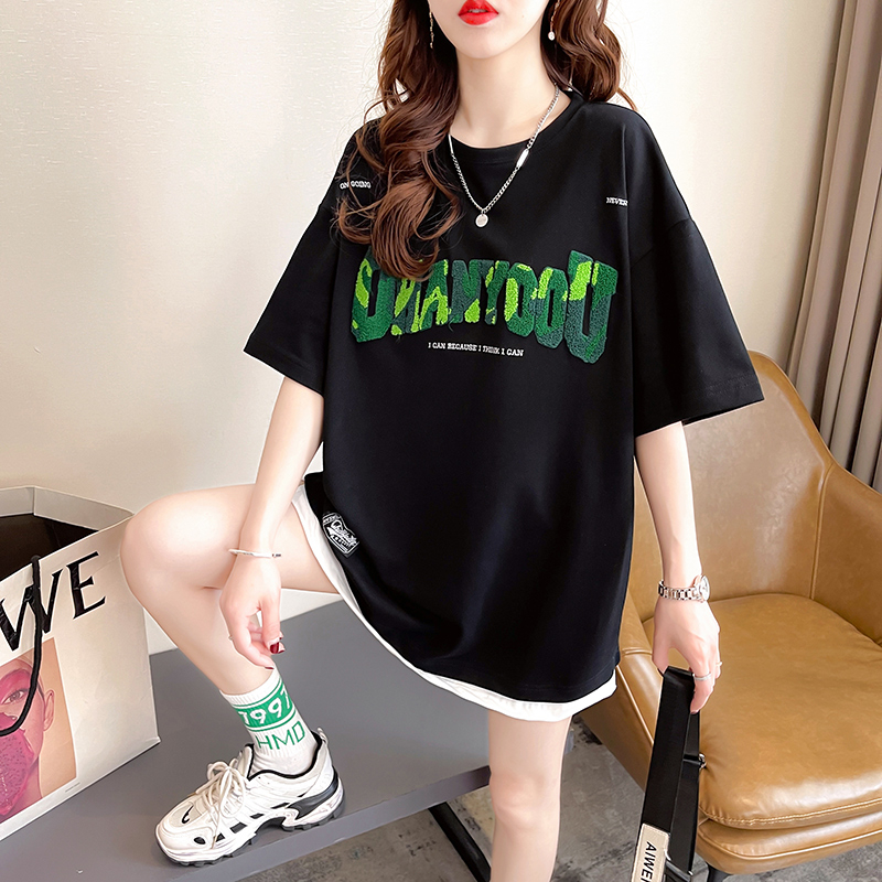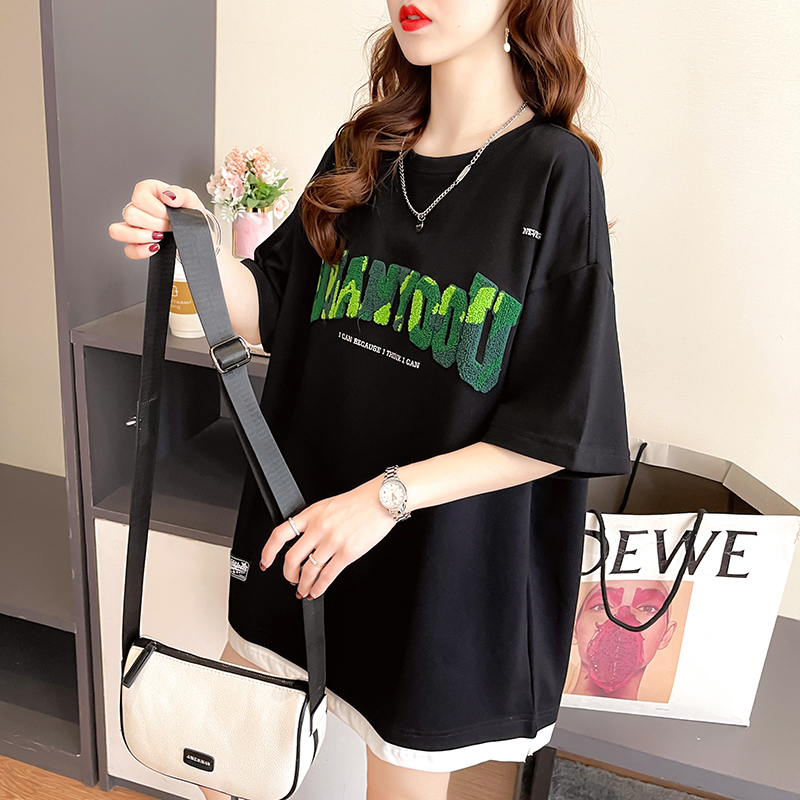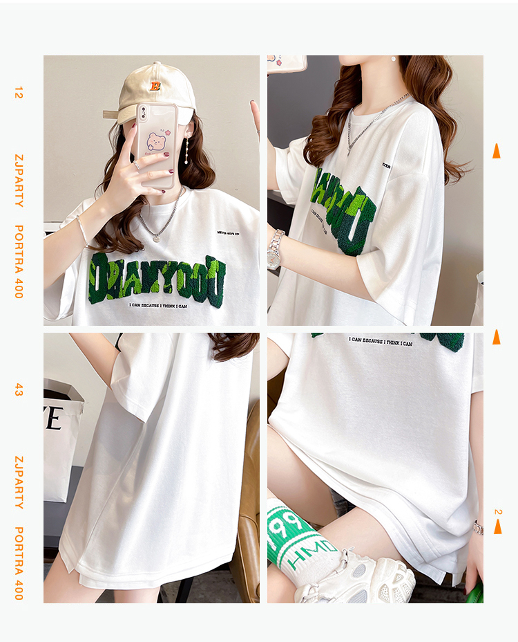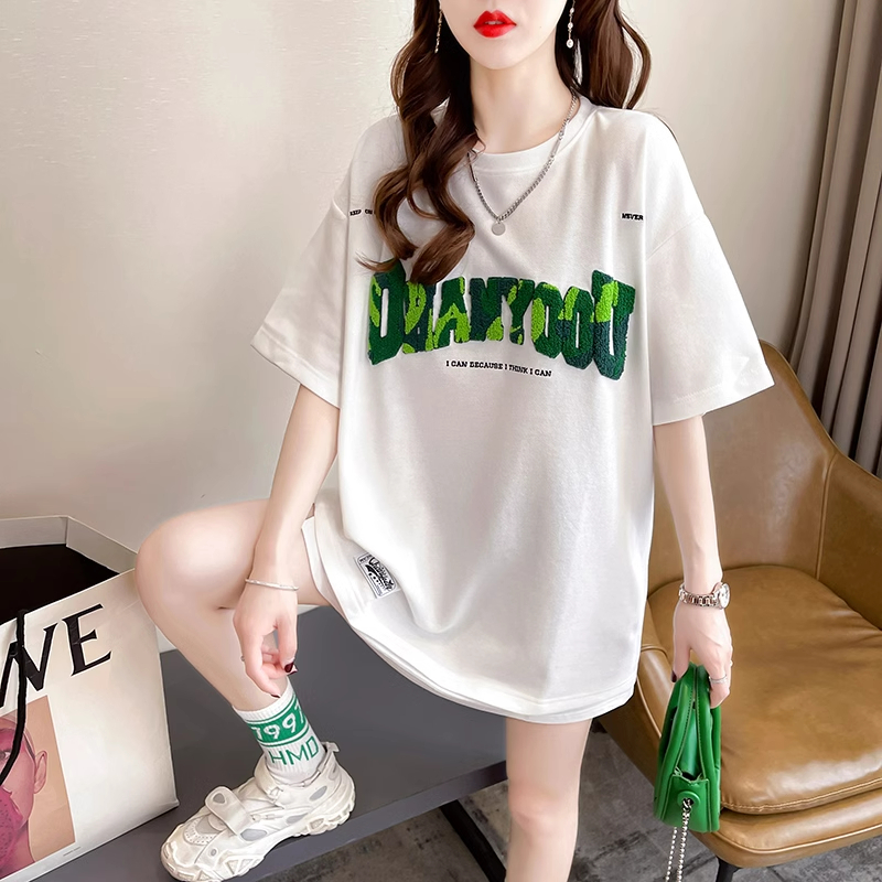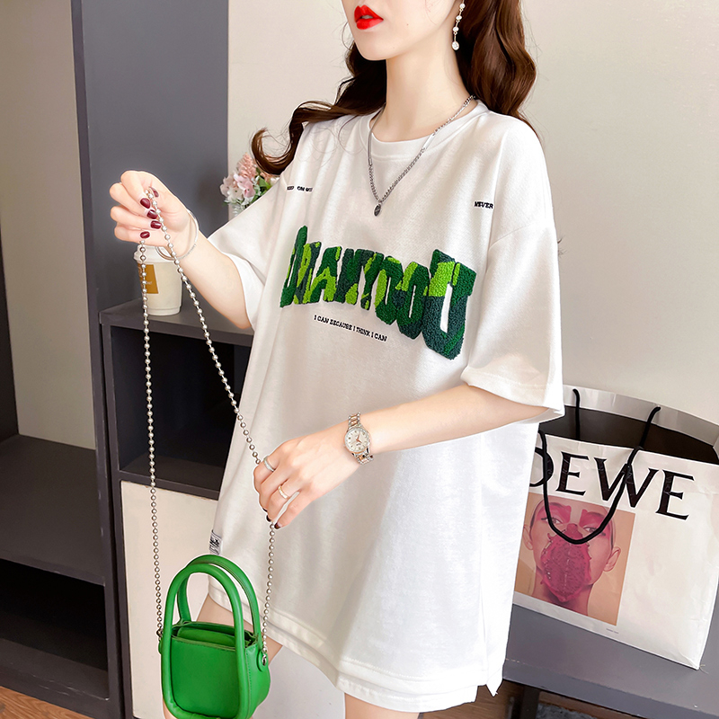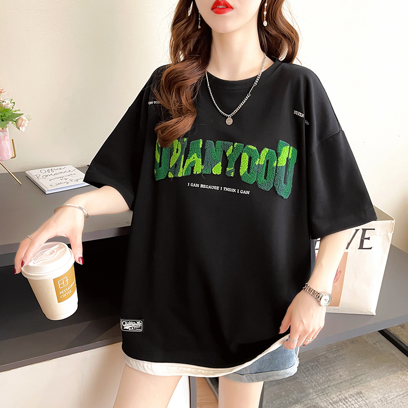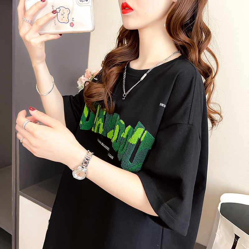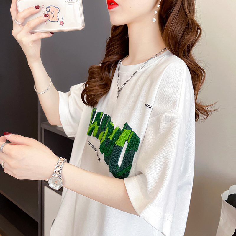 PF1287#纯棉短袖t恤女夏2024刺绣圆领新款上衣大码女装