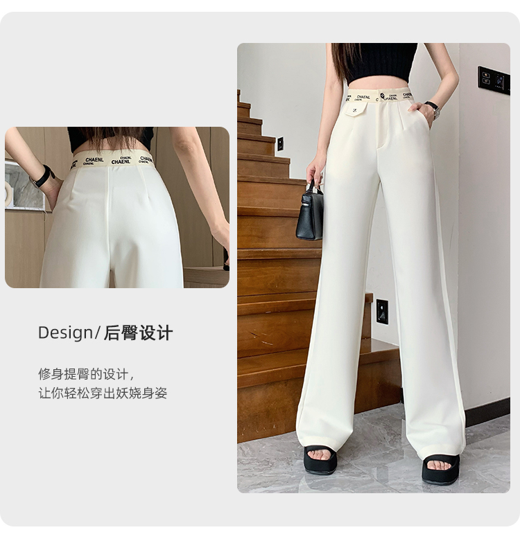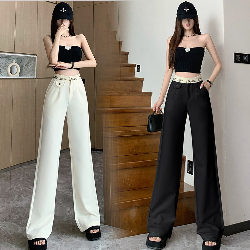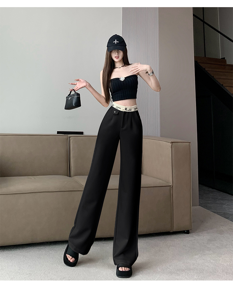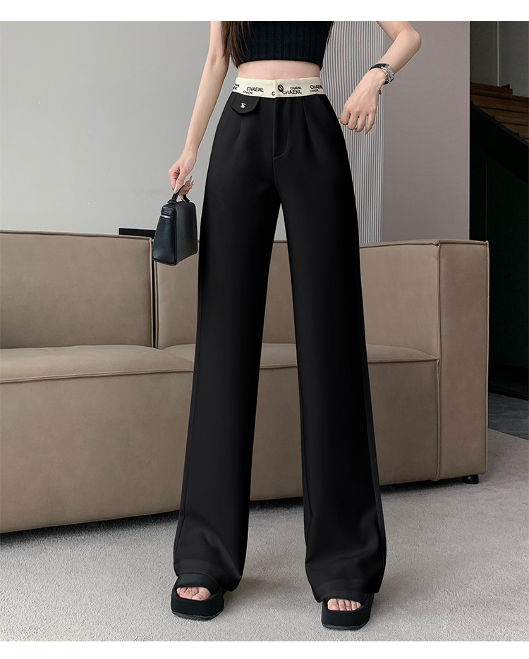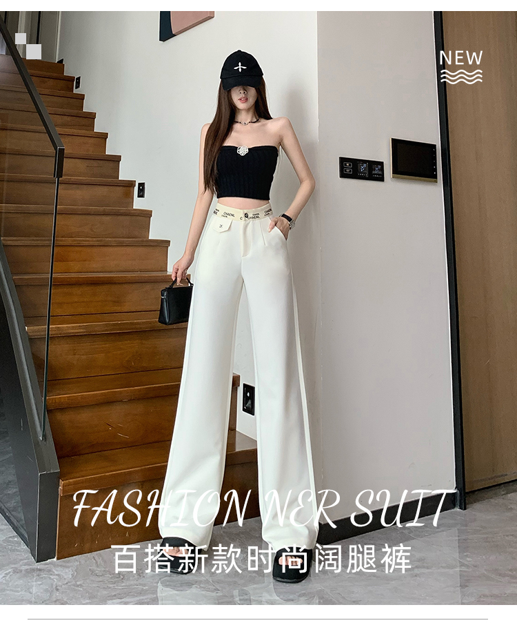 PF1310#小香风西装阔腿裤女春夏新款欧货设计感字母腰头显瘦垂感拖地裤潮