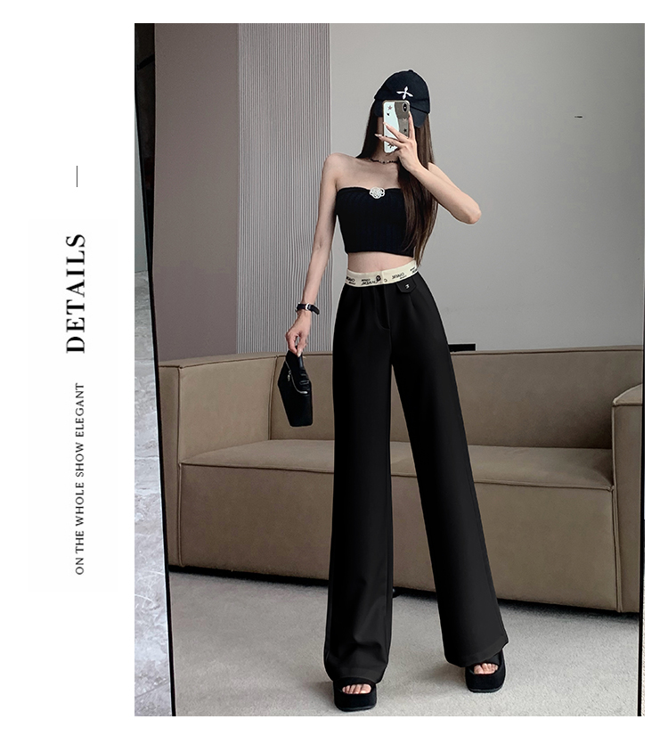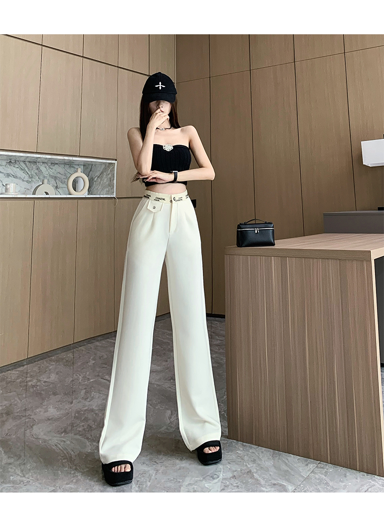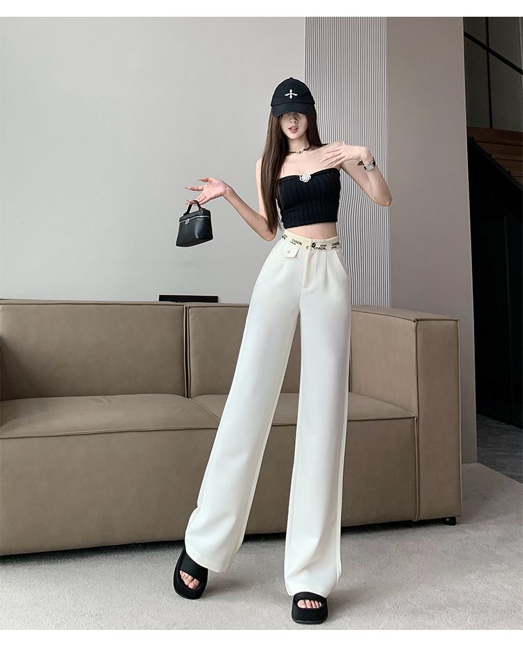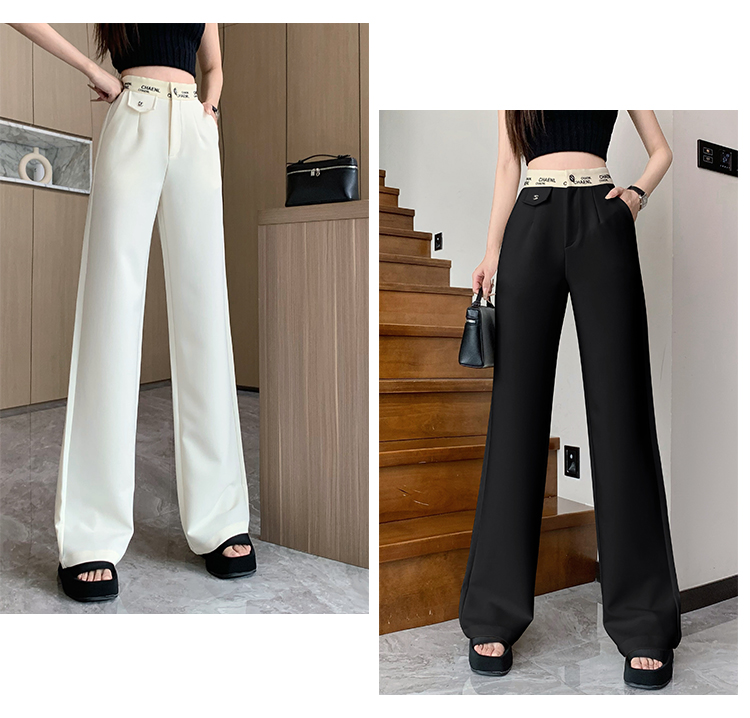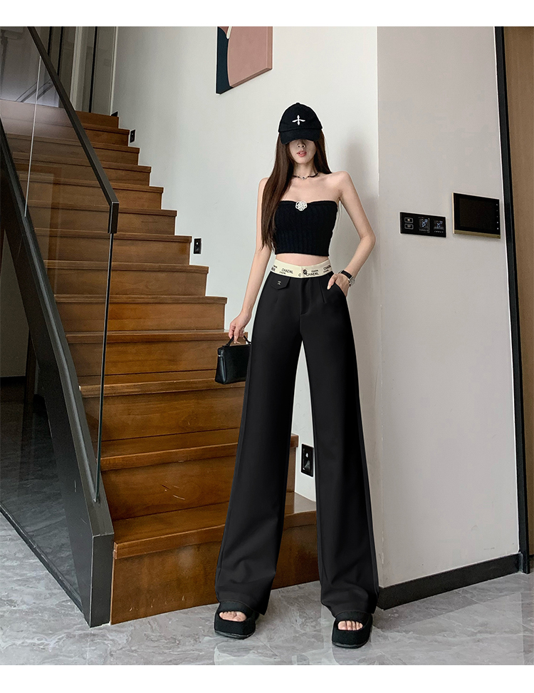PF1310#小香风西装阔腿裤女春夏新款欧货设计感字母腰头显瘦垂感拖地裤潮