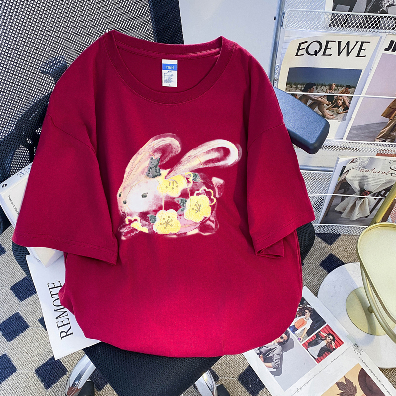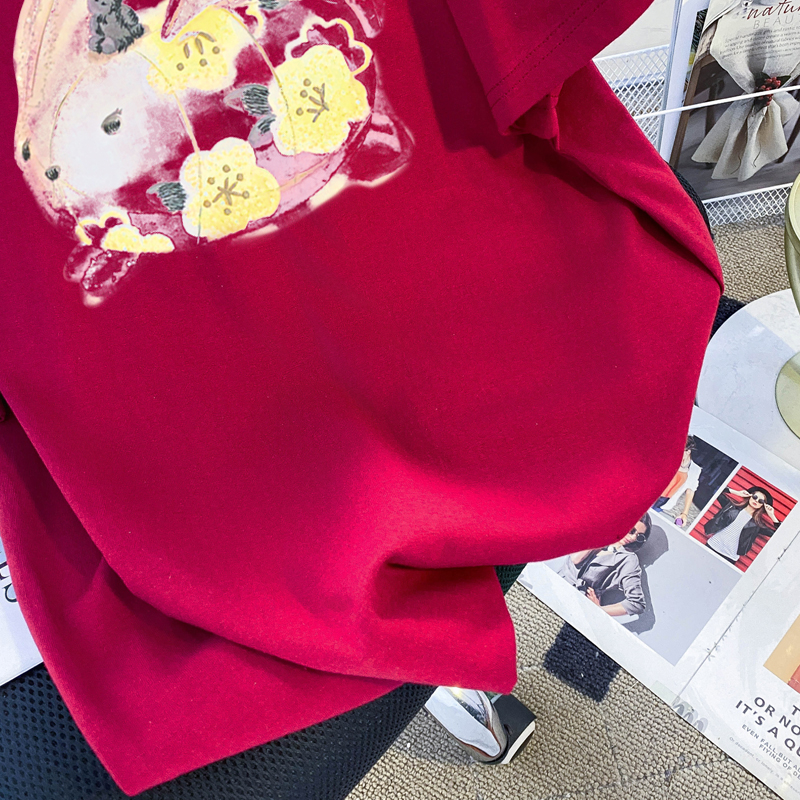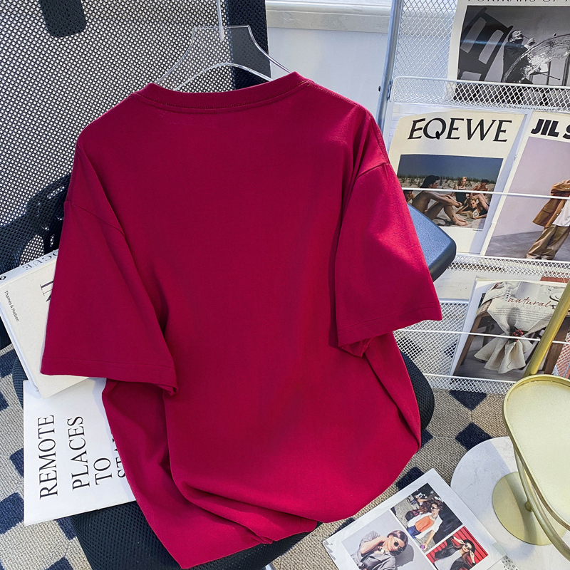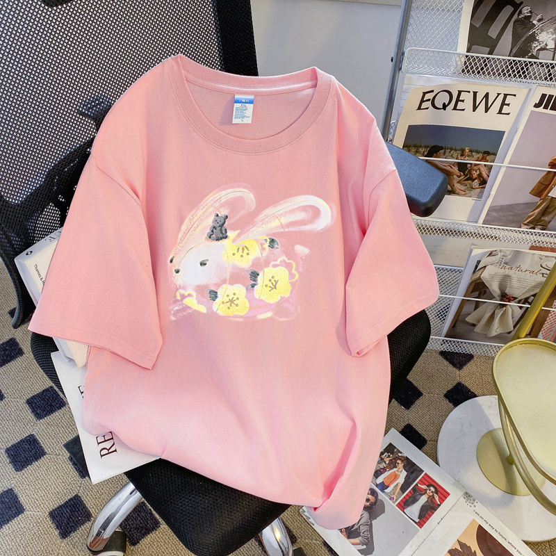 PF1320#纯棉大码韩版宽松休闲印花T恤夏新款百搭落肩短袖女