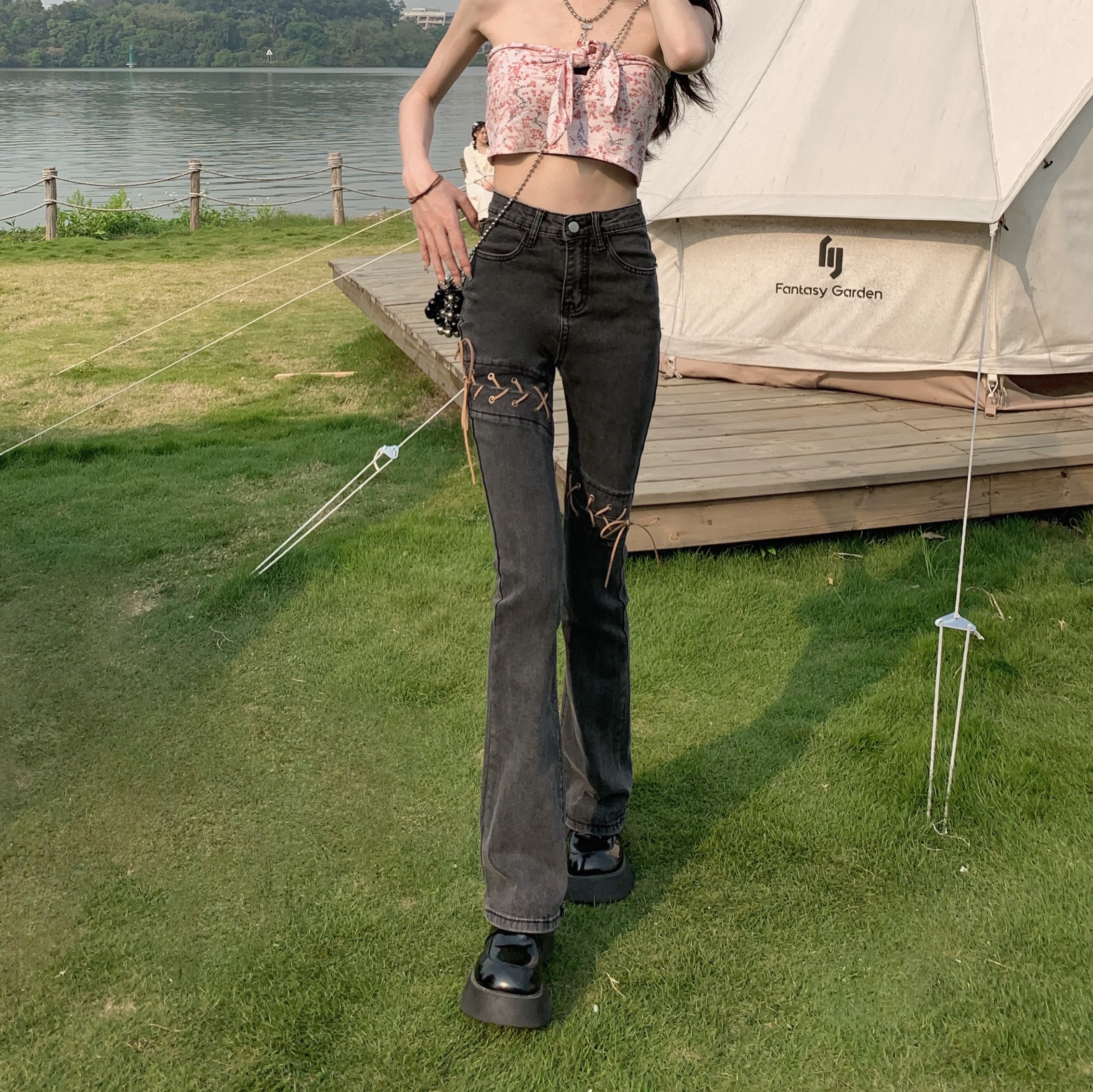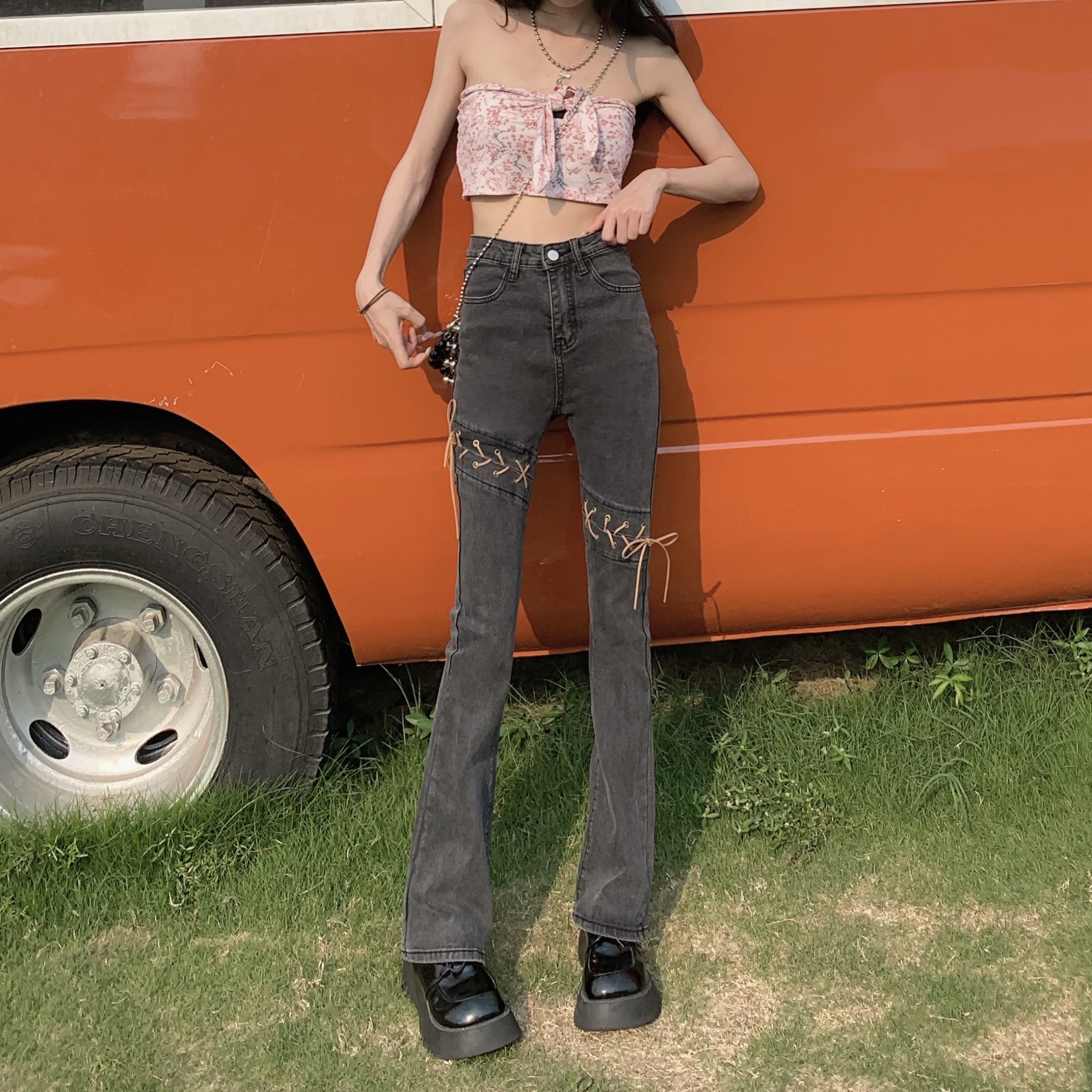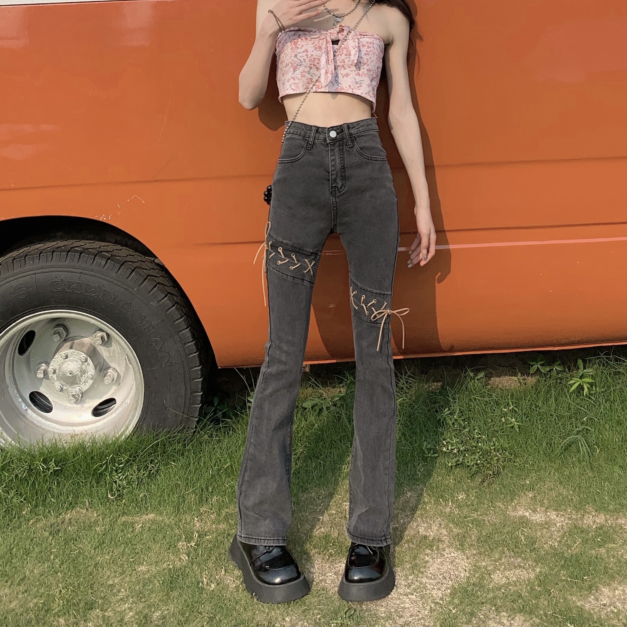 PF1365#微喇叭牛仔裤女春秋新款高腰弹力显瘦拖地网红牛仔裤高腰潮