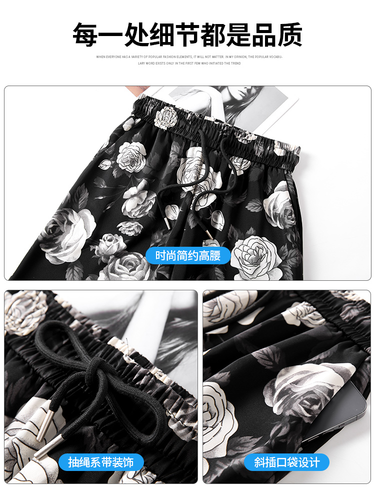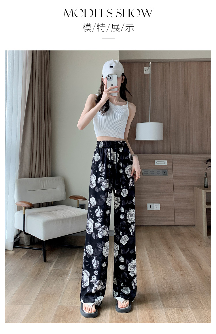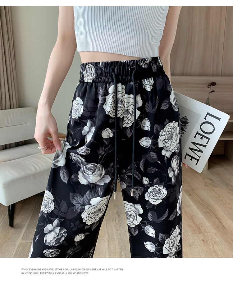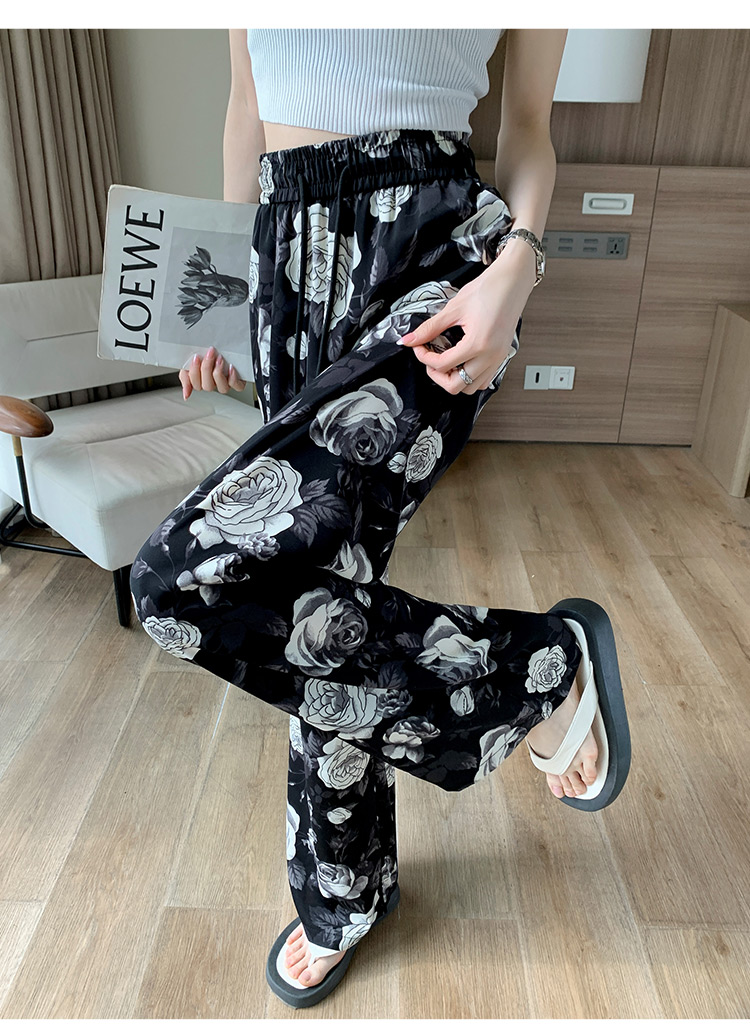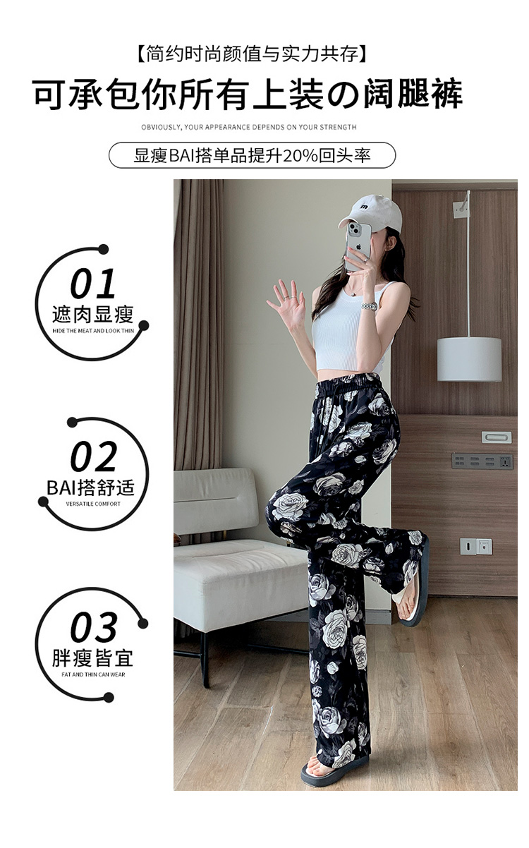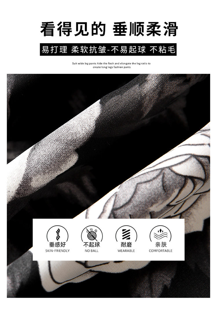 PF1368#印花休闲裤女 遛弯裤直筒长裤慵懒垂感阔腿裤拖地裤