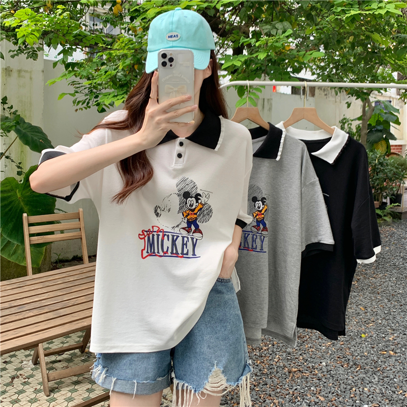 PF1378#包领珠地布夏季新款插色Polo衫短袖t恤女