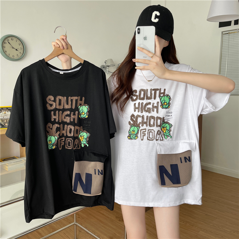 PF1383#包领夏季新款宽松口袋设计感大码短袖t恤女