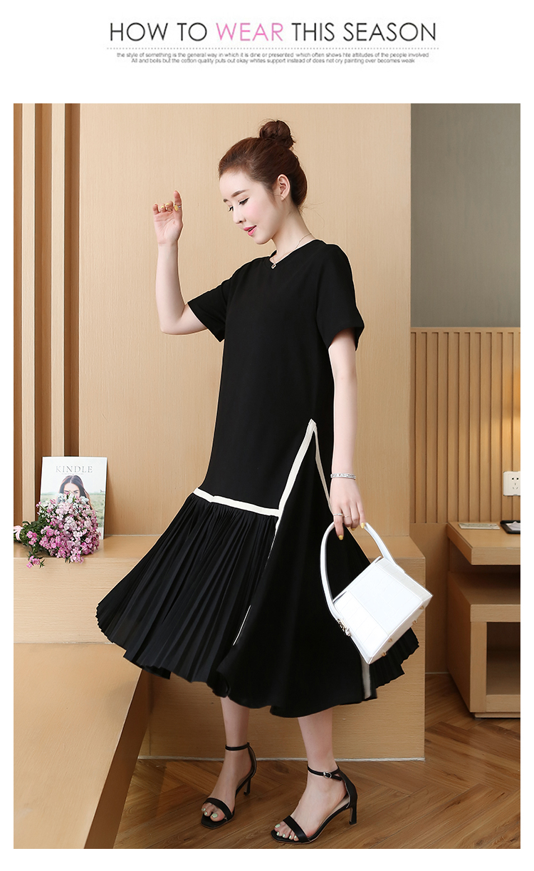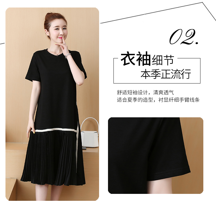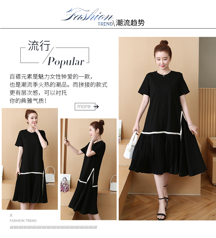 BY05#夏季新款欧美风宽松大码短袖连衣裙不规则拼接下摆百褶裙女