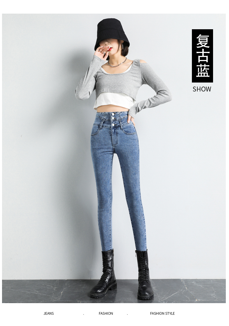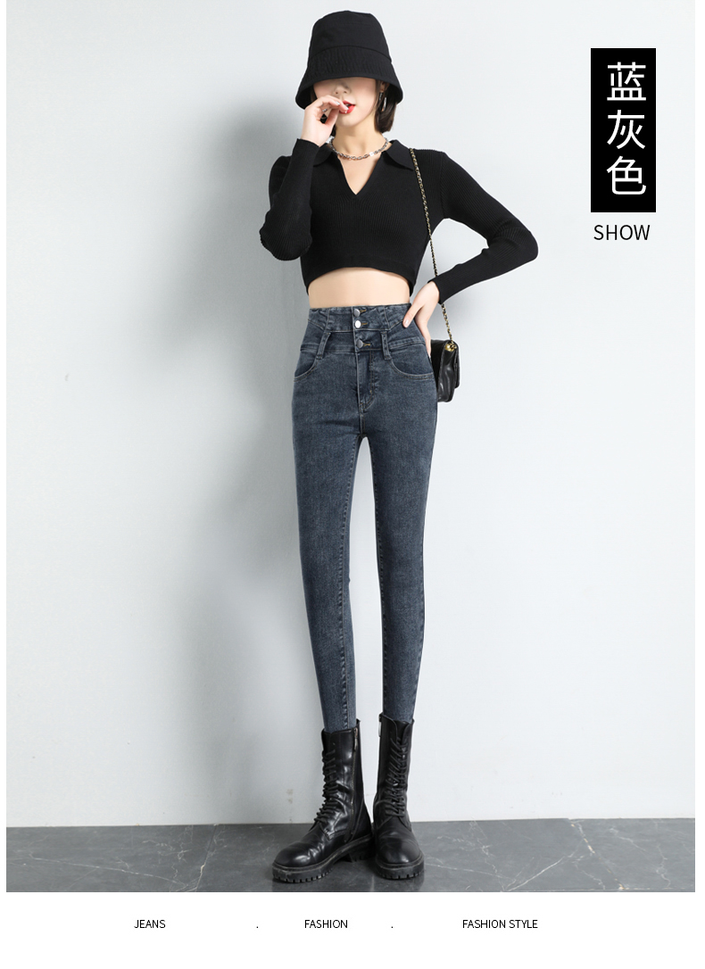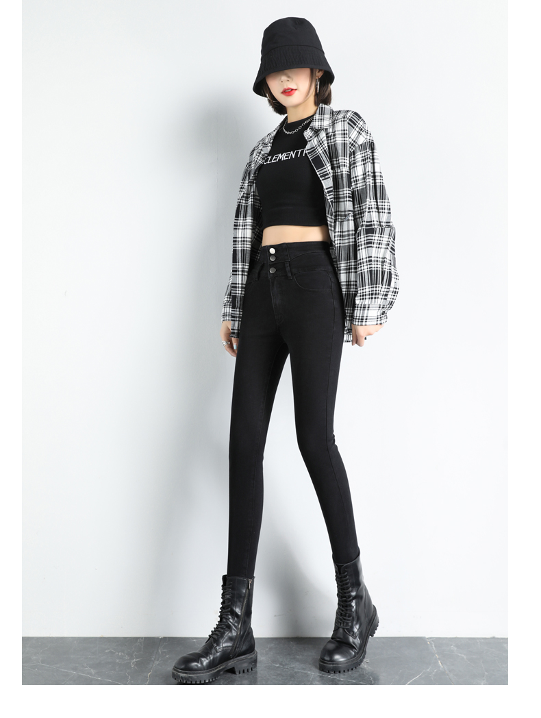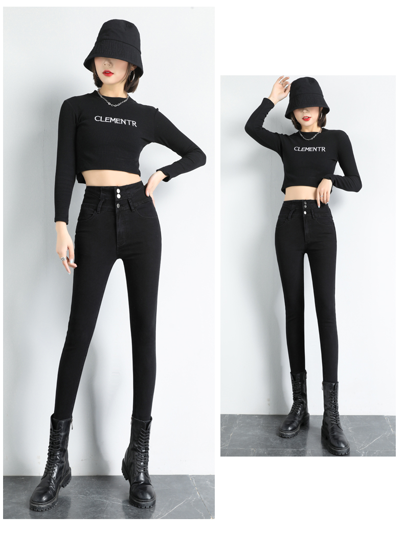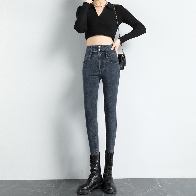 BY09#韩版高腰牛仔裤女秋冬新款显高显瘦百搭紧身铅笔小脚牛仔裤