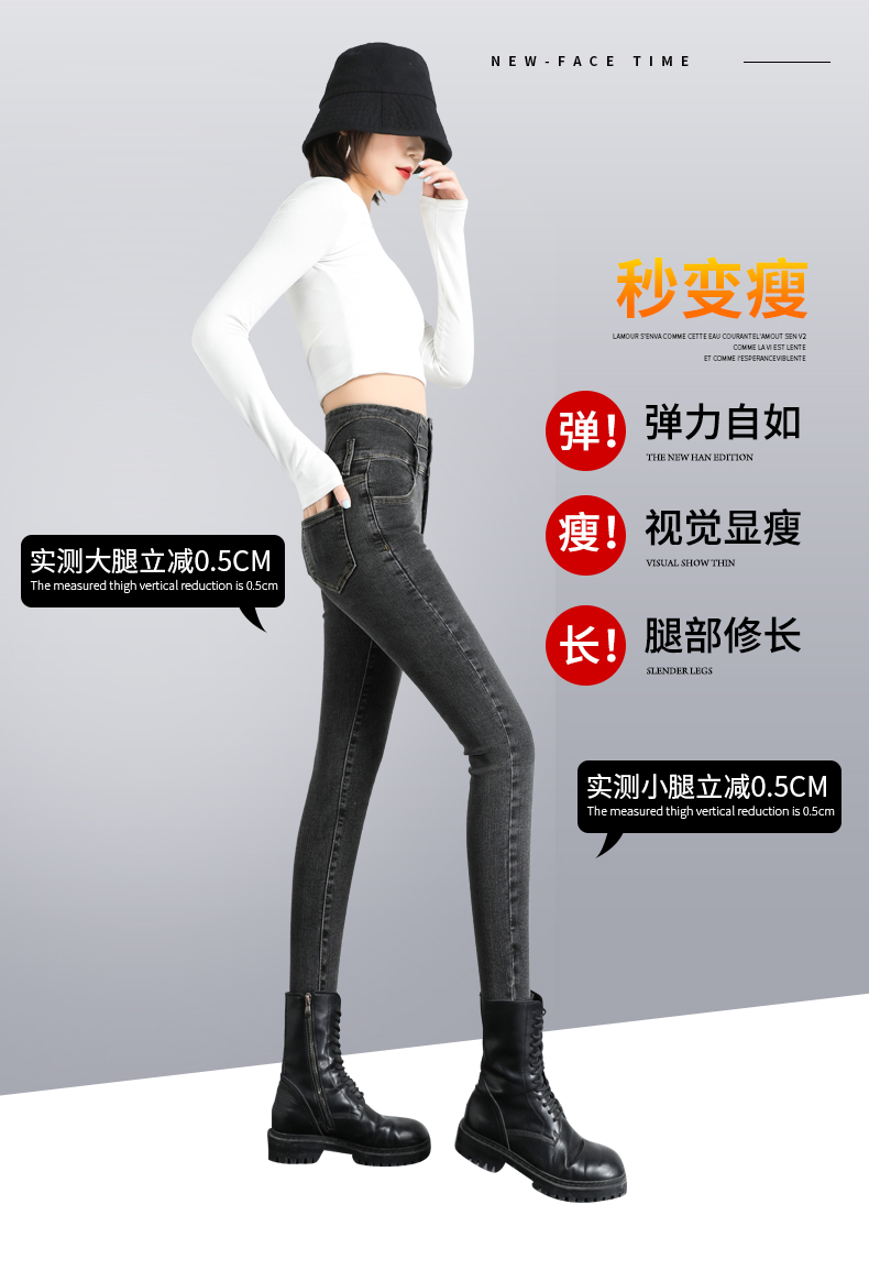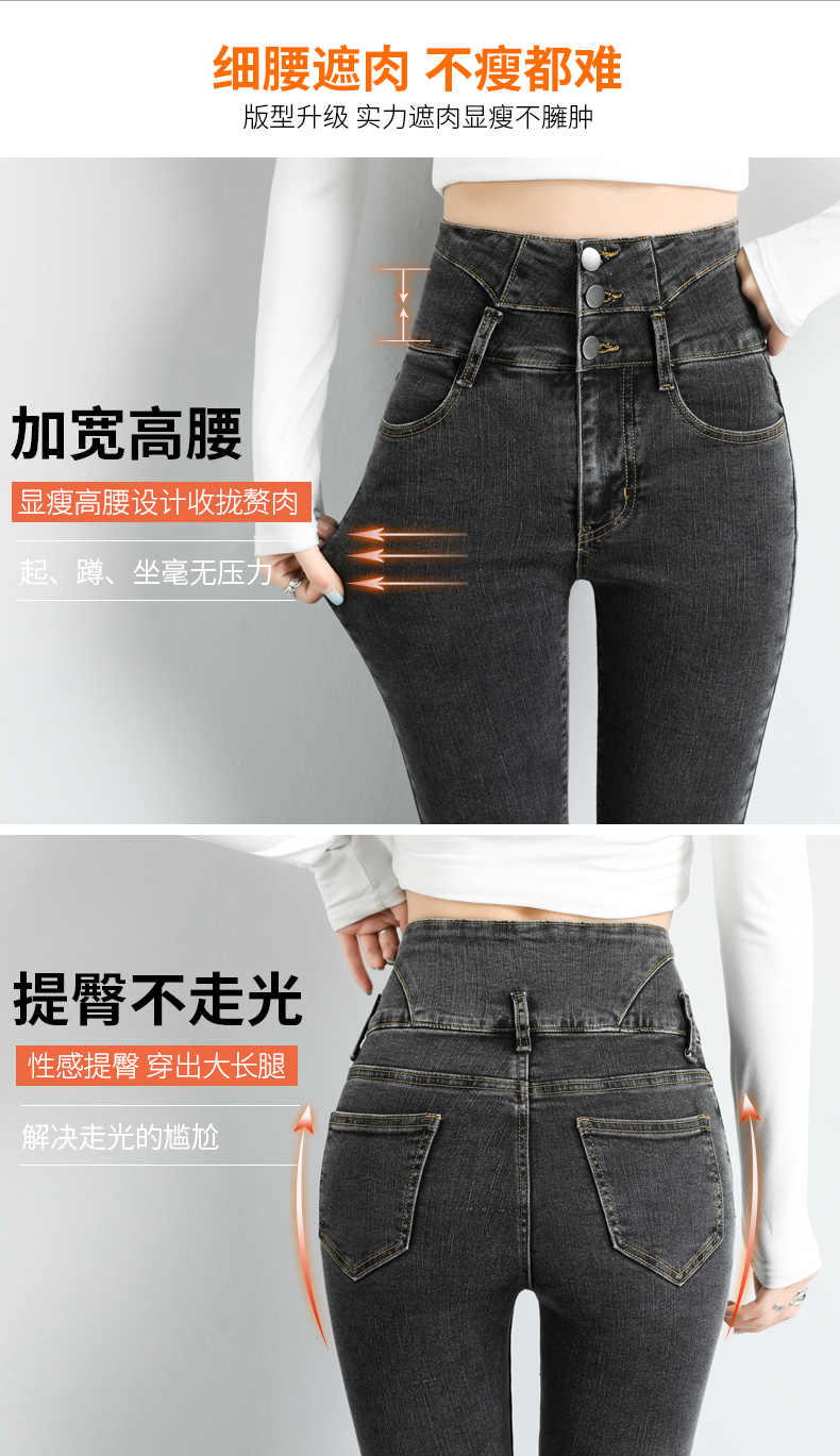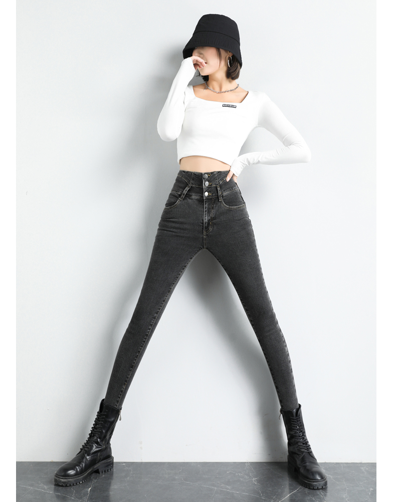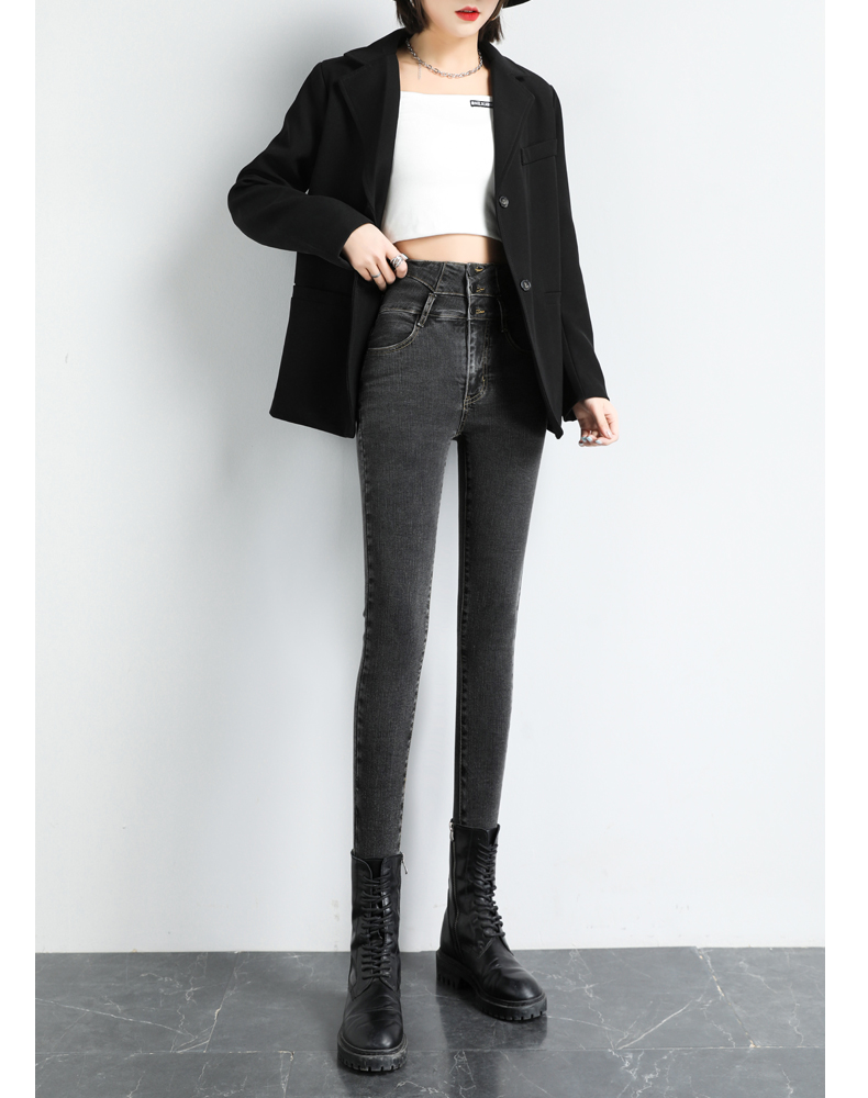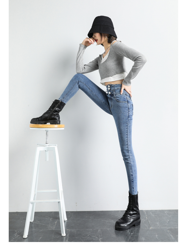 BY09#韩版高腰牛仔裤女秋冬新款显高显瘦百搭紧身铅笔小脚牛仔裤