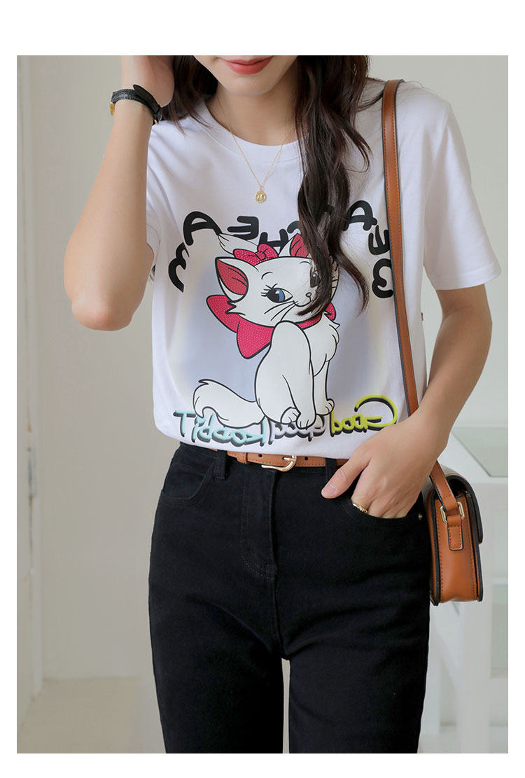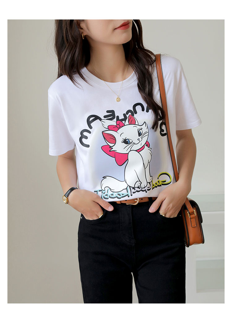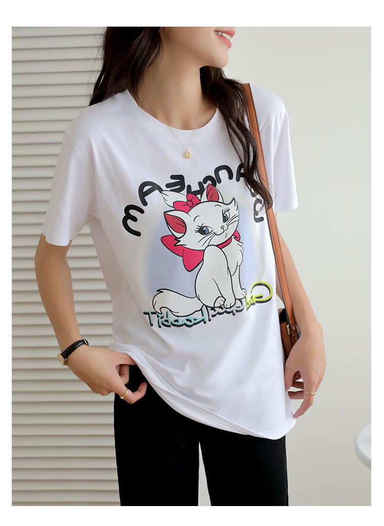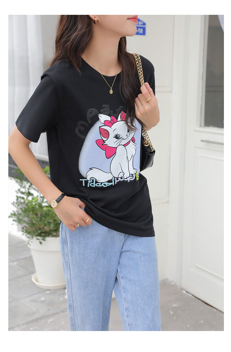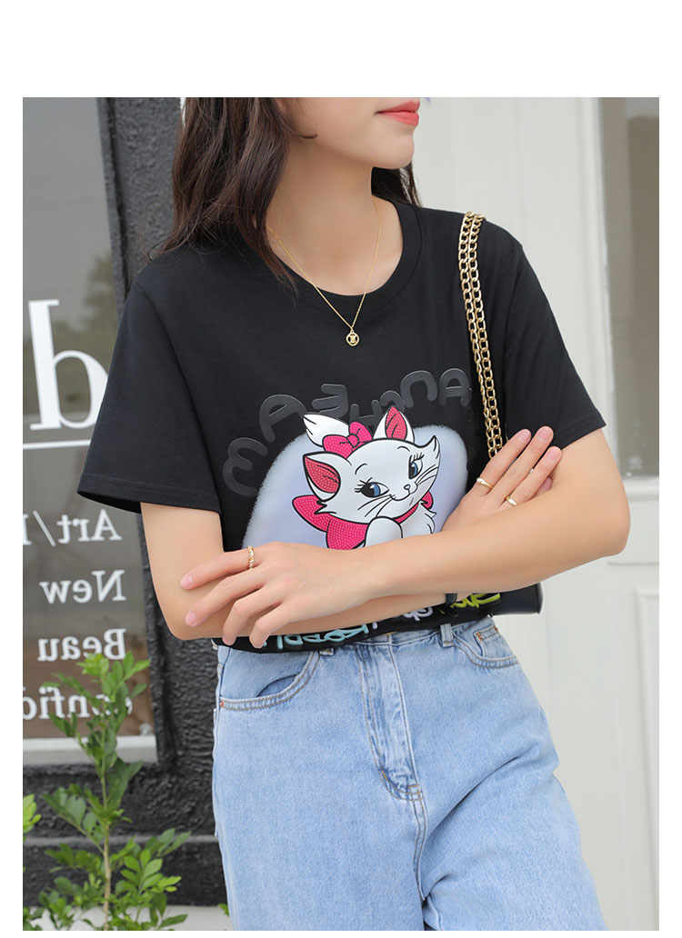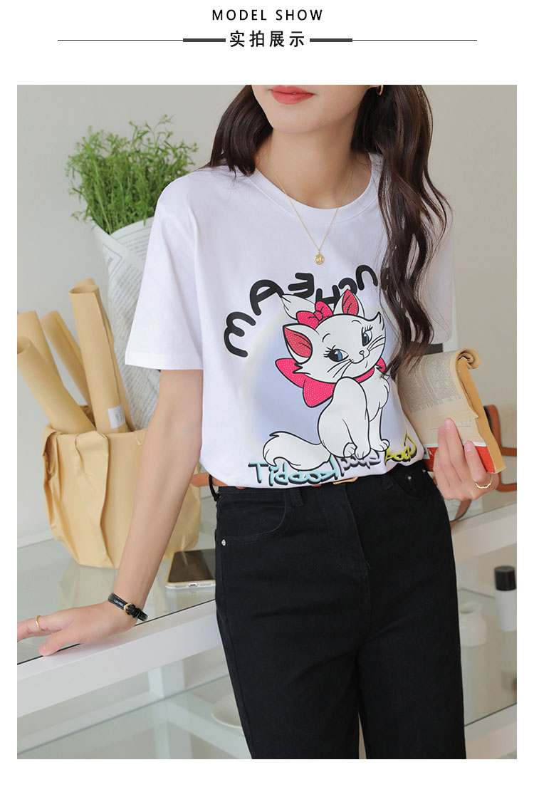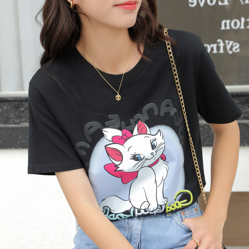 PF1444#夏新款潮牌设计感宽松短袖t恤女烫钻猫咪休闲上衣半袖打底衫