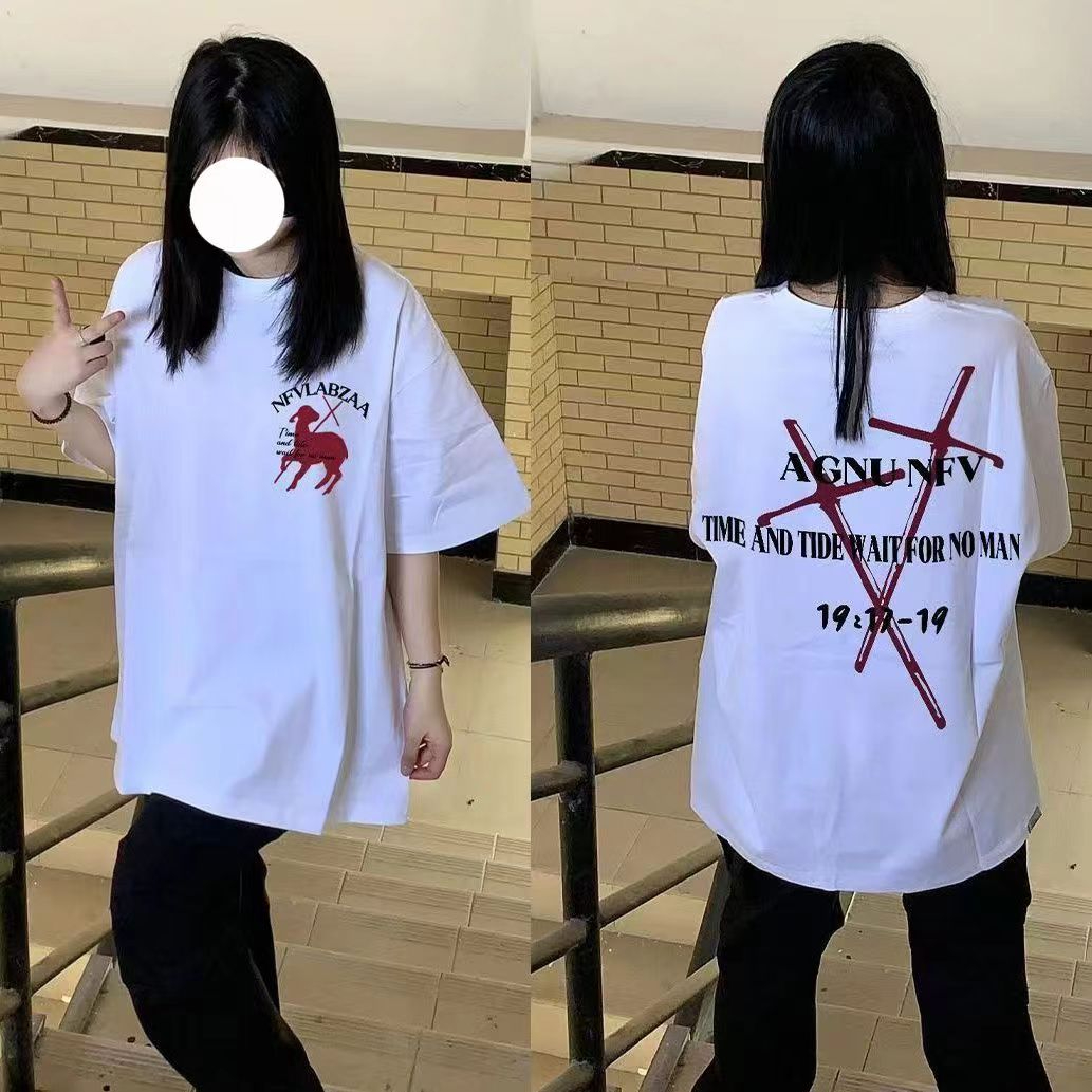 PF1468#纯棉短袖t恤女夏季上衣宽松设计感小众街头