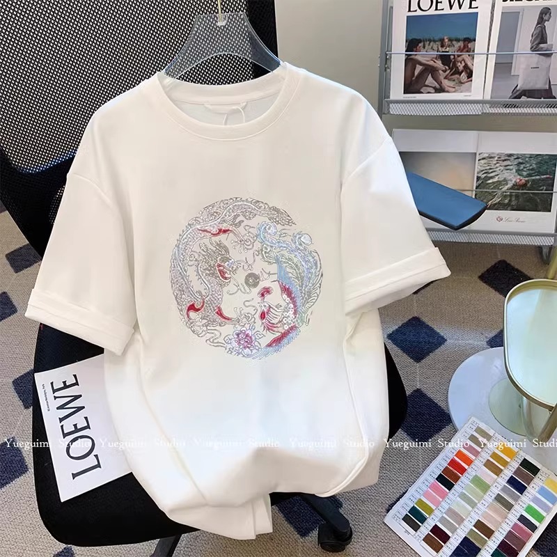 PF1516#白色国风纯棉短袖t恤女夏季小众复古休闲百搭小个子高级感上衣ins