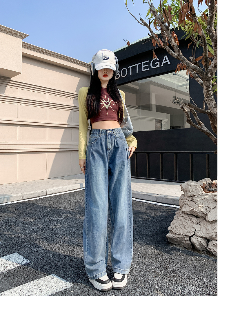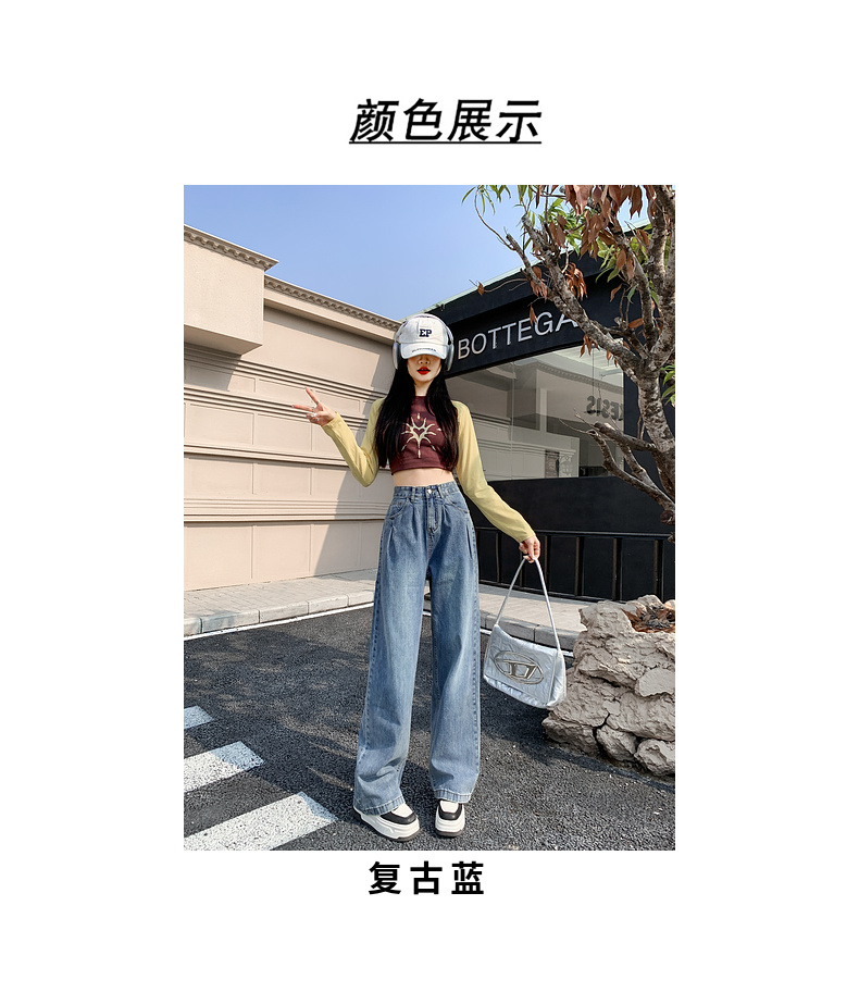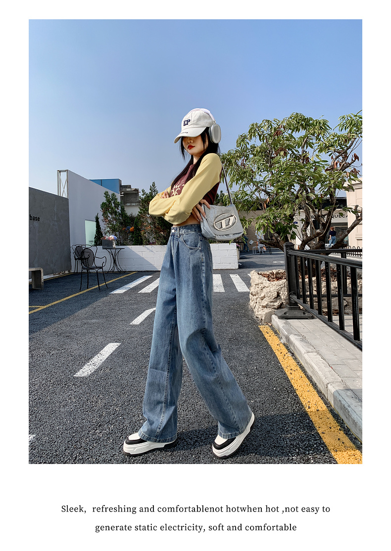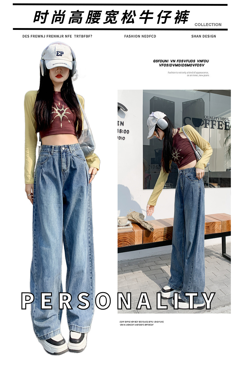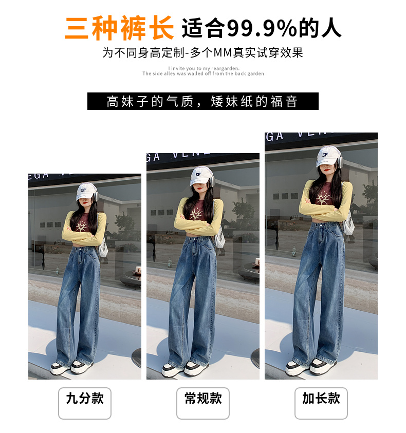 PF1523#爆款超柔纱垂感复古褶皱设计感高腰宽松阔腿牛仔九分长裤加长