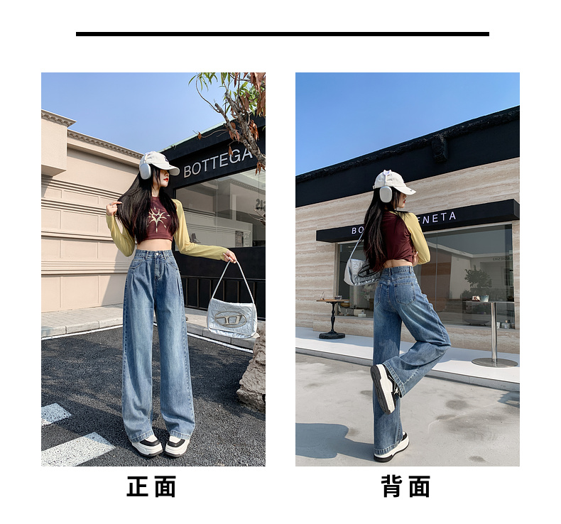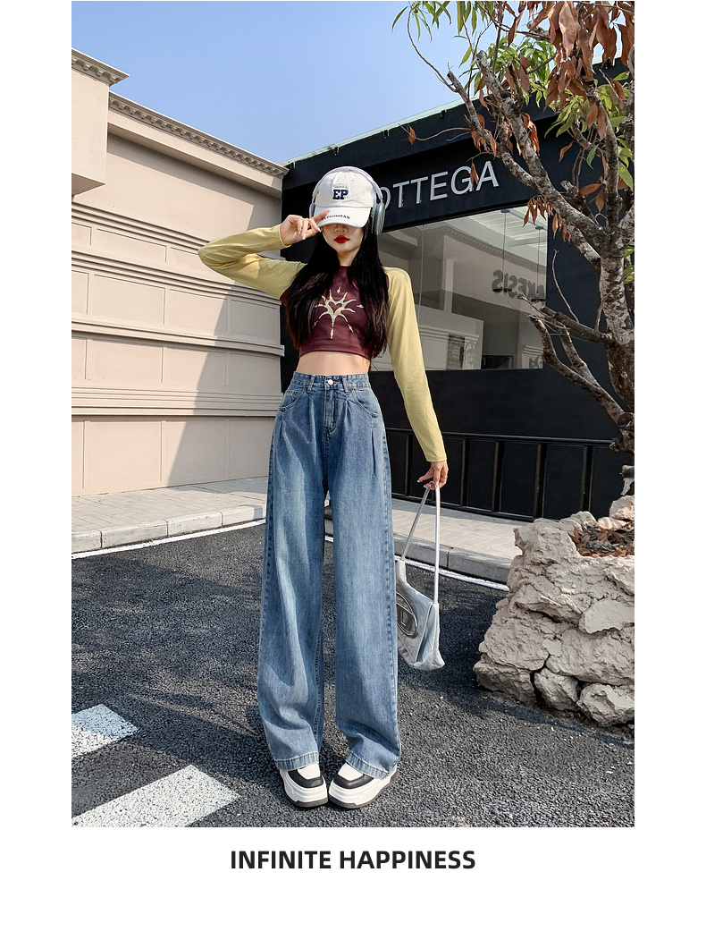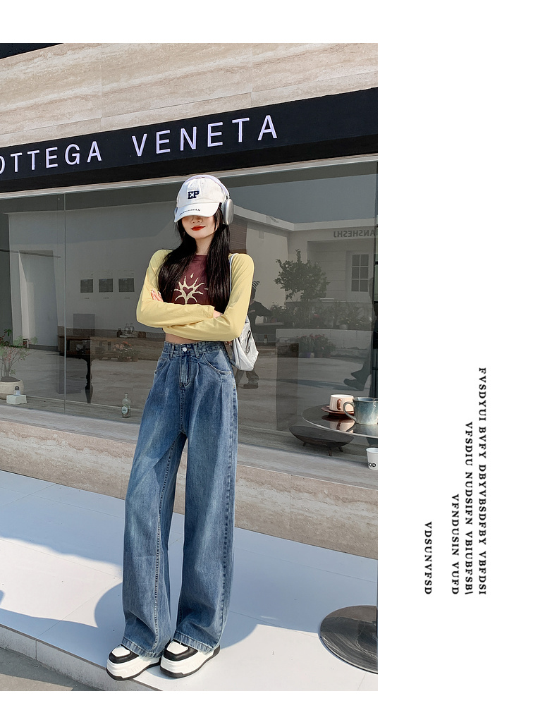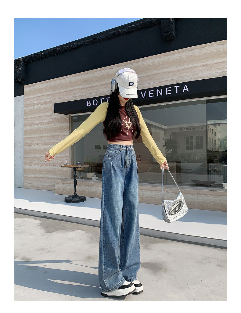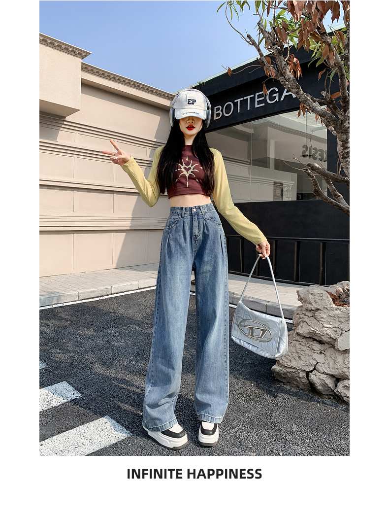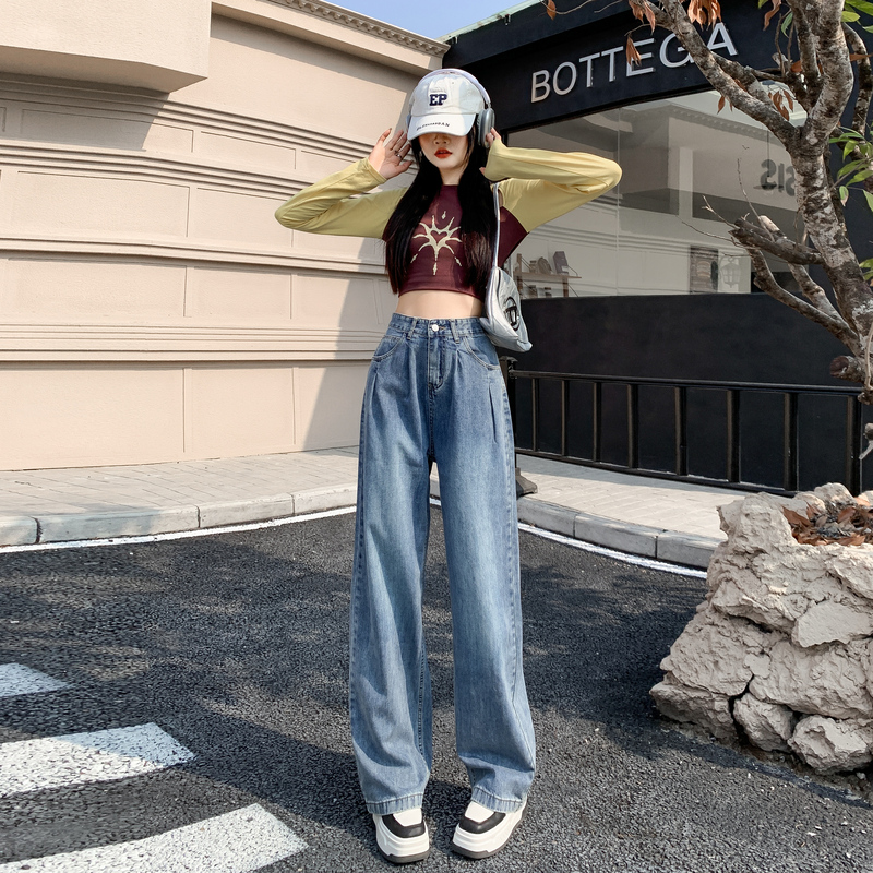 PF1523#爆款超柔纱垂感复古褶皱设计感高腰宽松阔腿牛仔九分长裤加长