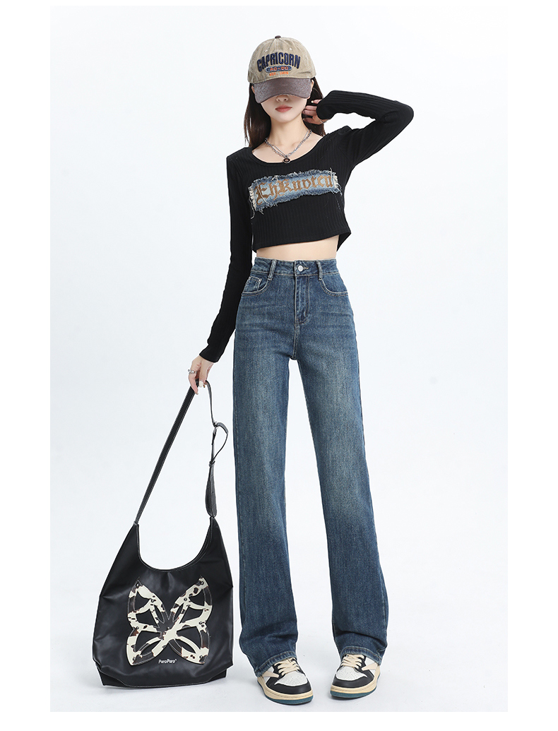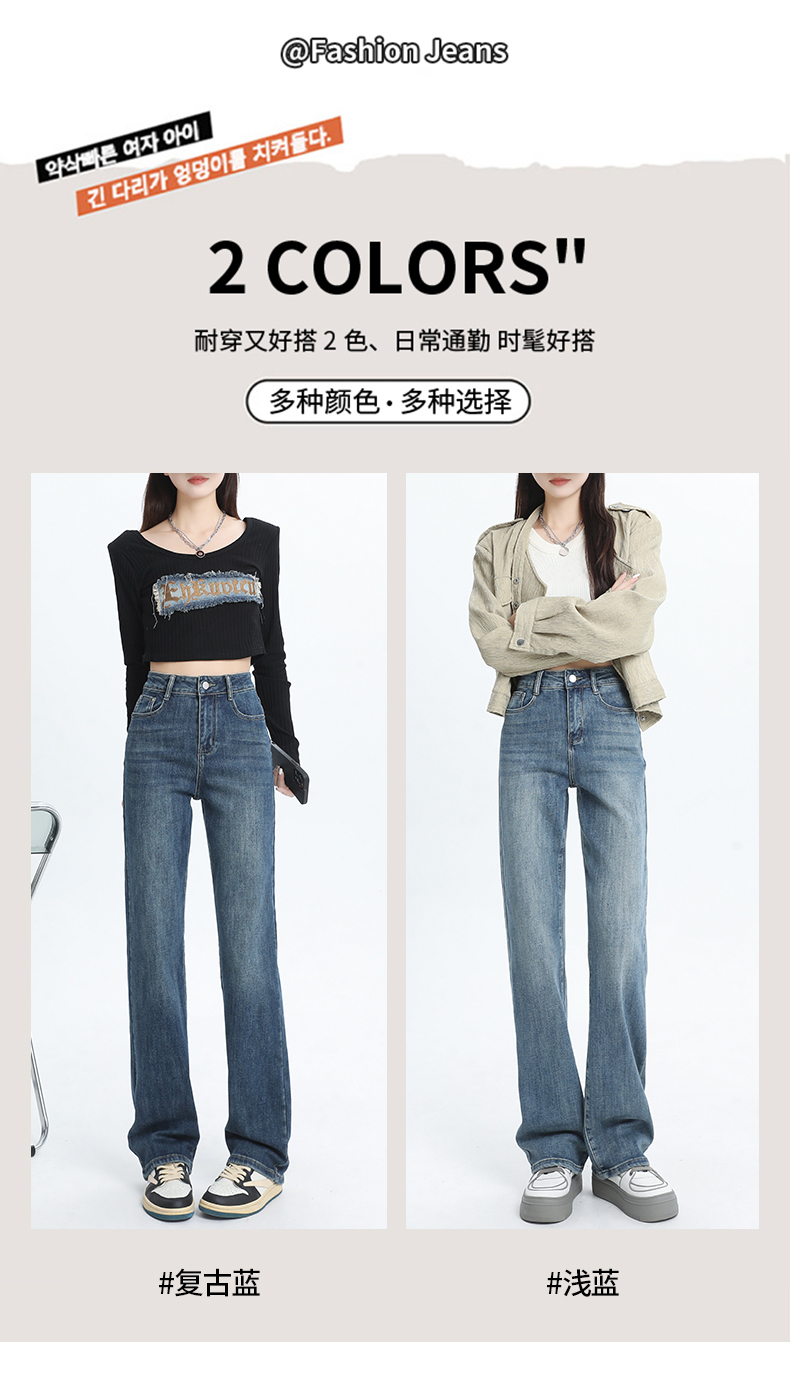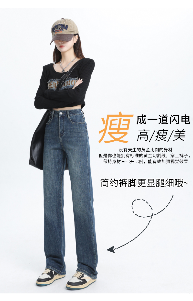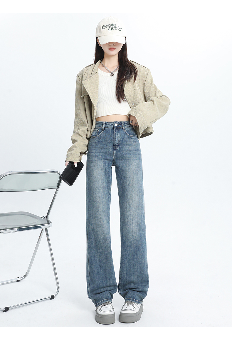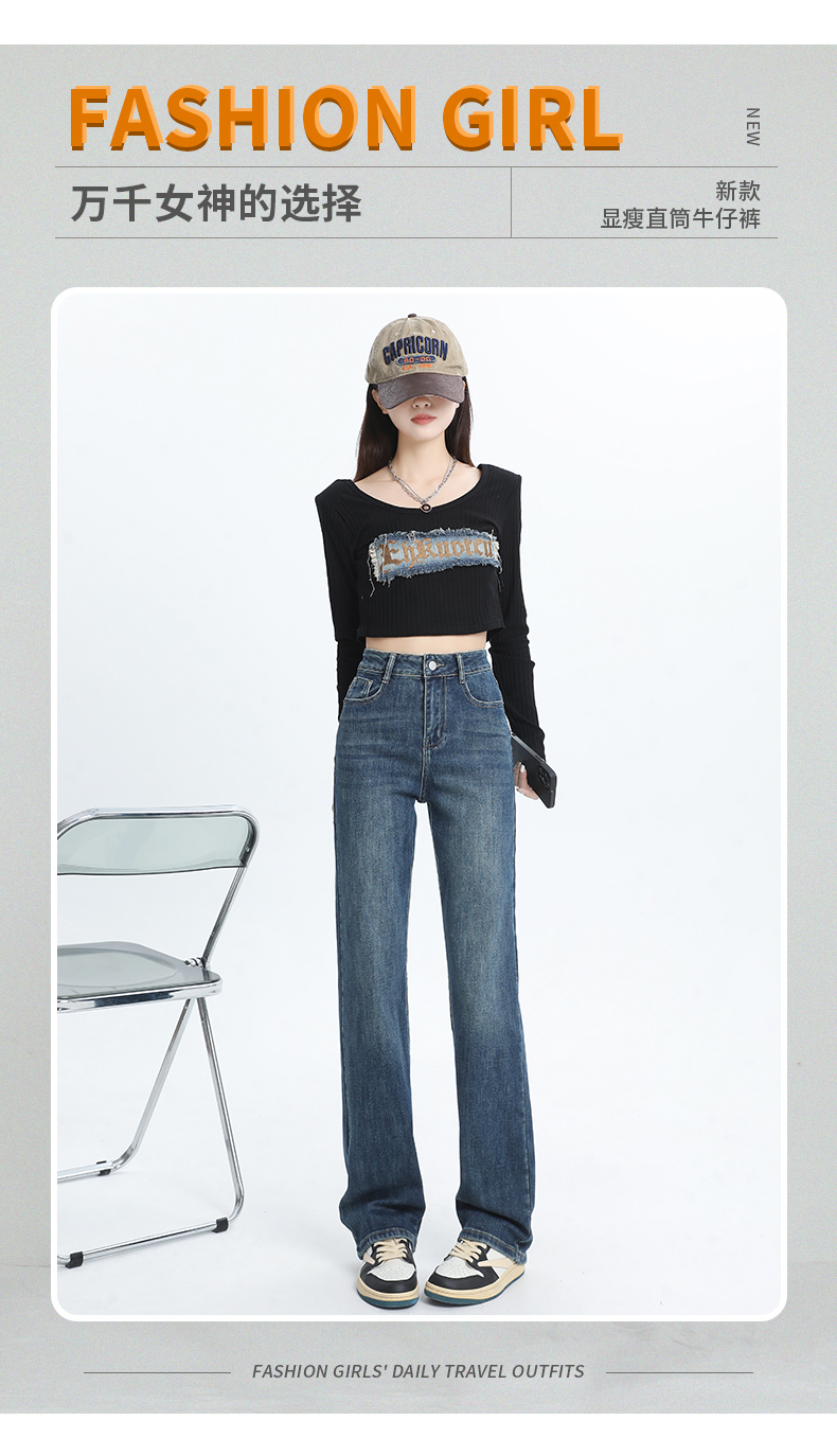 PF1526#高腰阔腿牛仔裤女浅蓝 新款梨形身材显瘦垂感窄版直筒裤