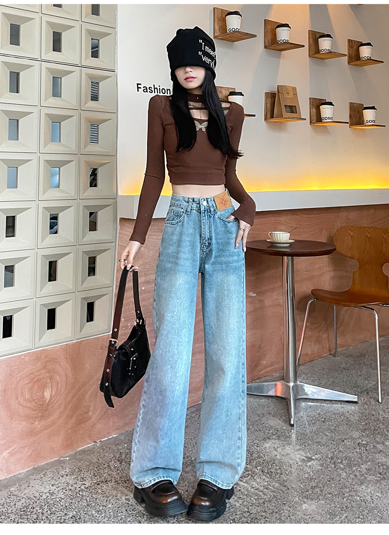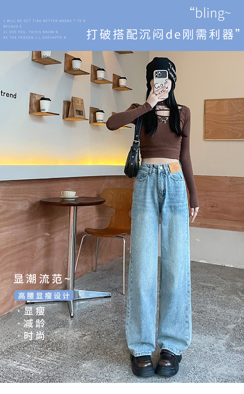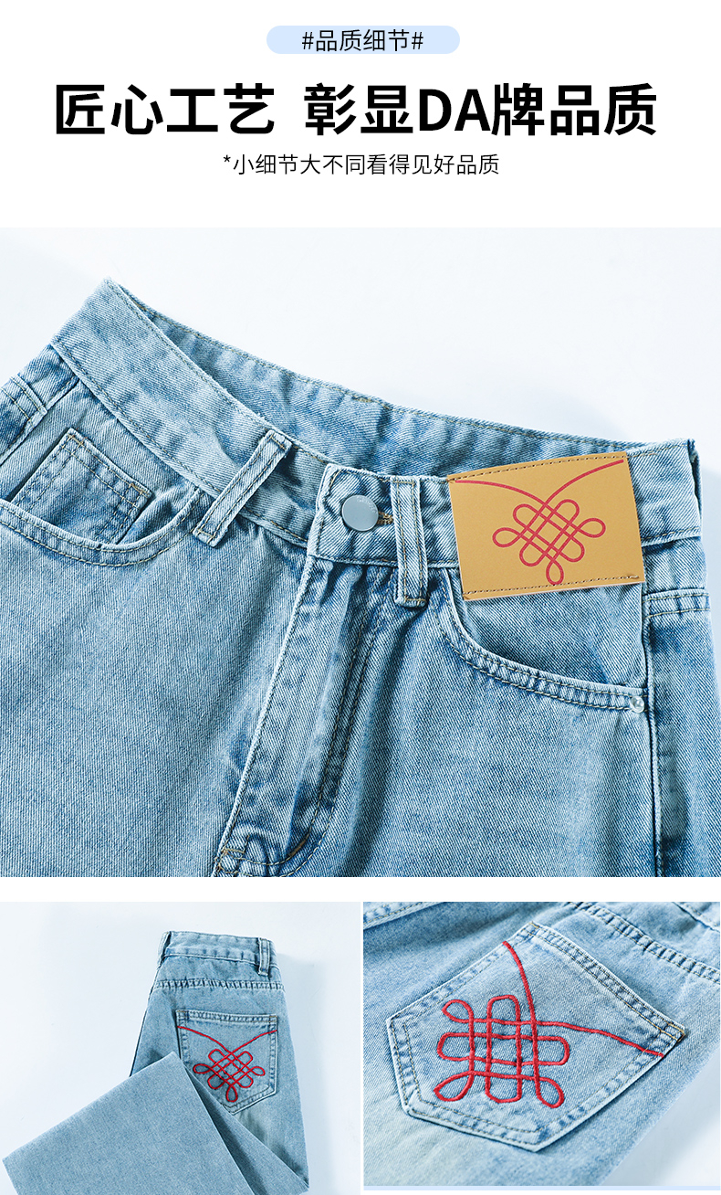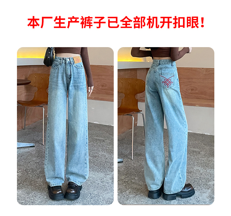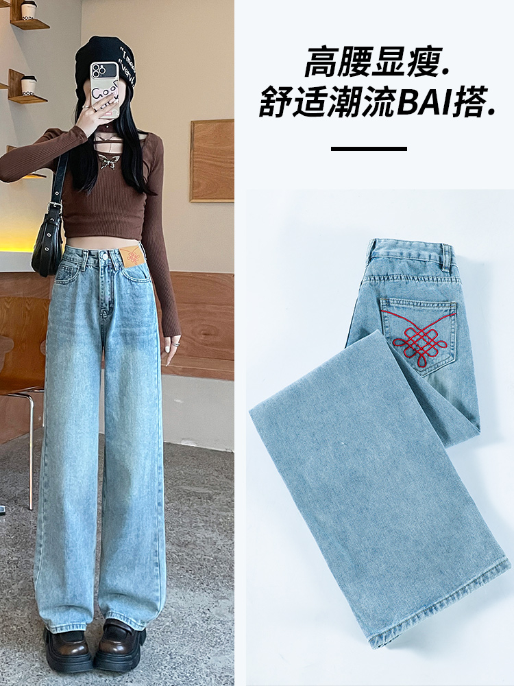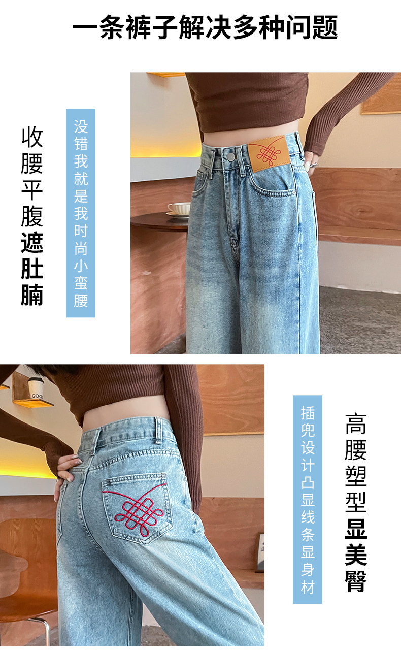 PF1527#直筒牛仔裤女 国风刺绣新款显瘦时尚窄版小个子阔腿裤