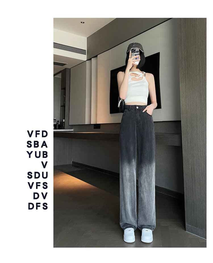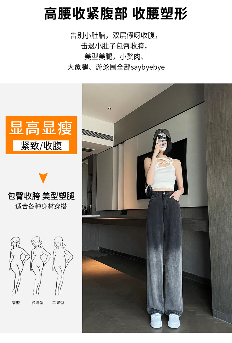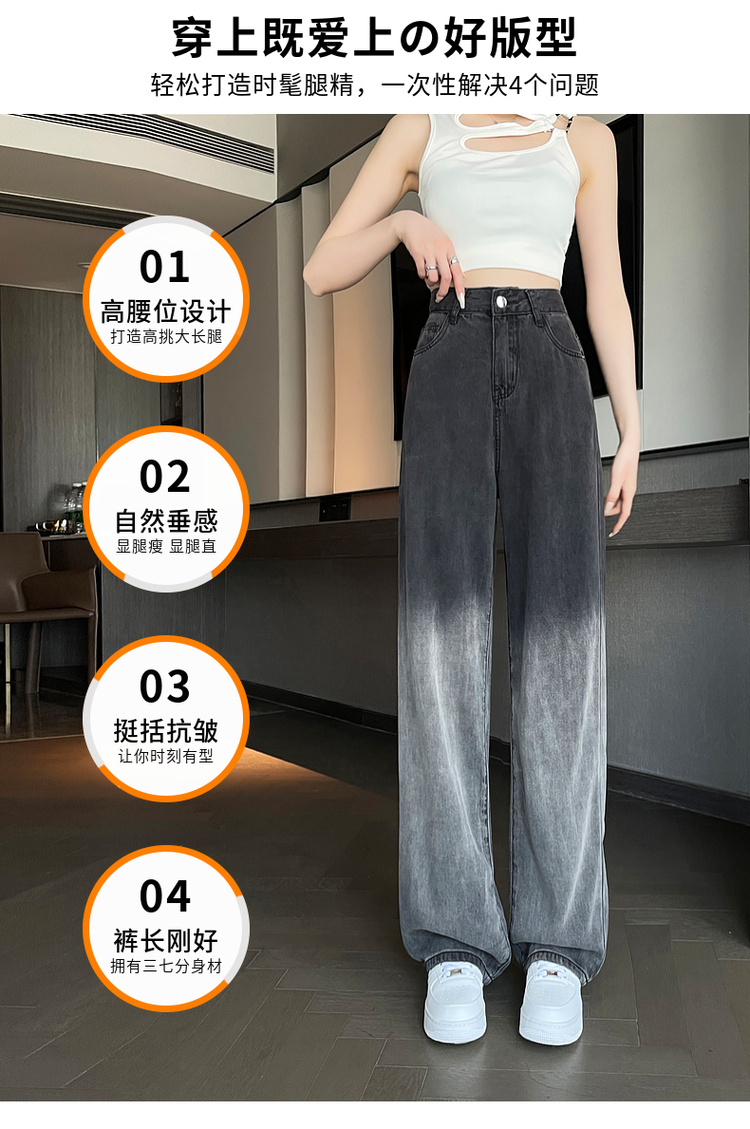 PF1556#冰丝牛仔阔腿裤女高腰显瘦垂感薄款夏天新宽松天丝直筒拖地裤