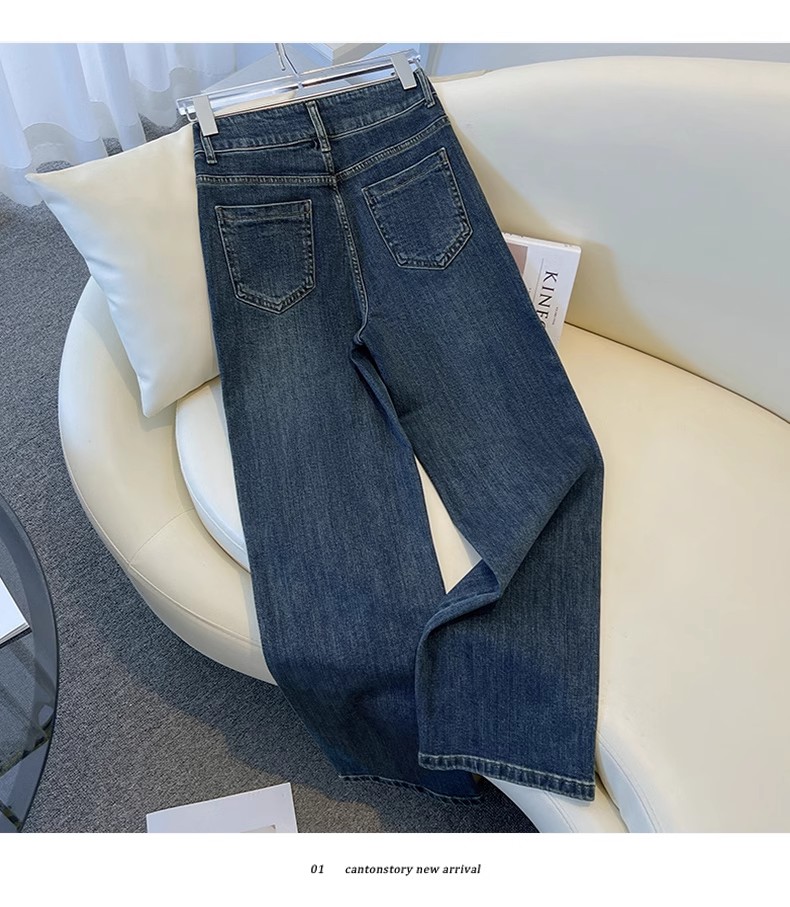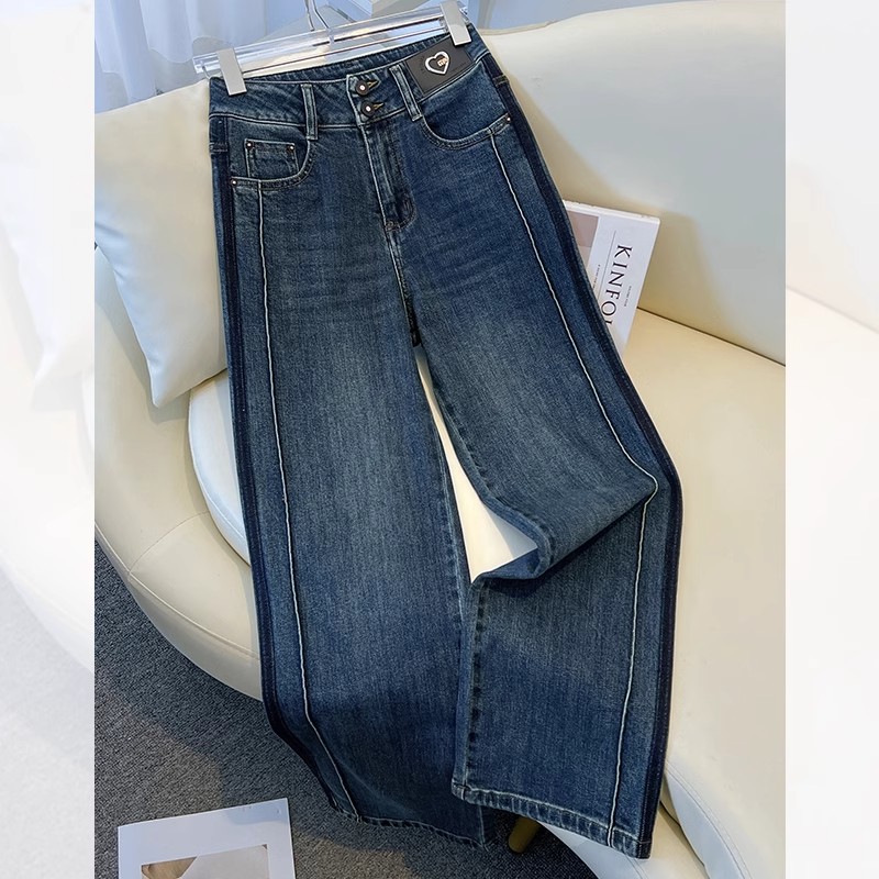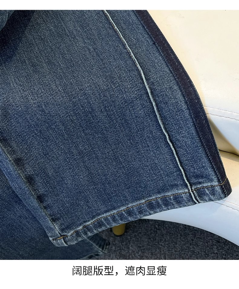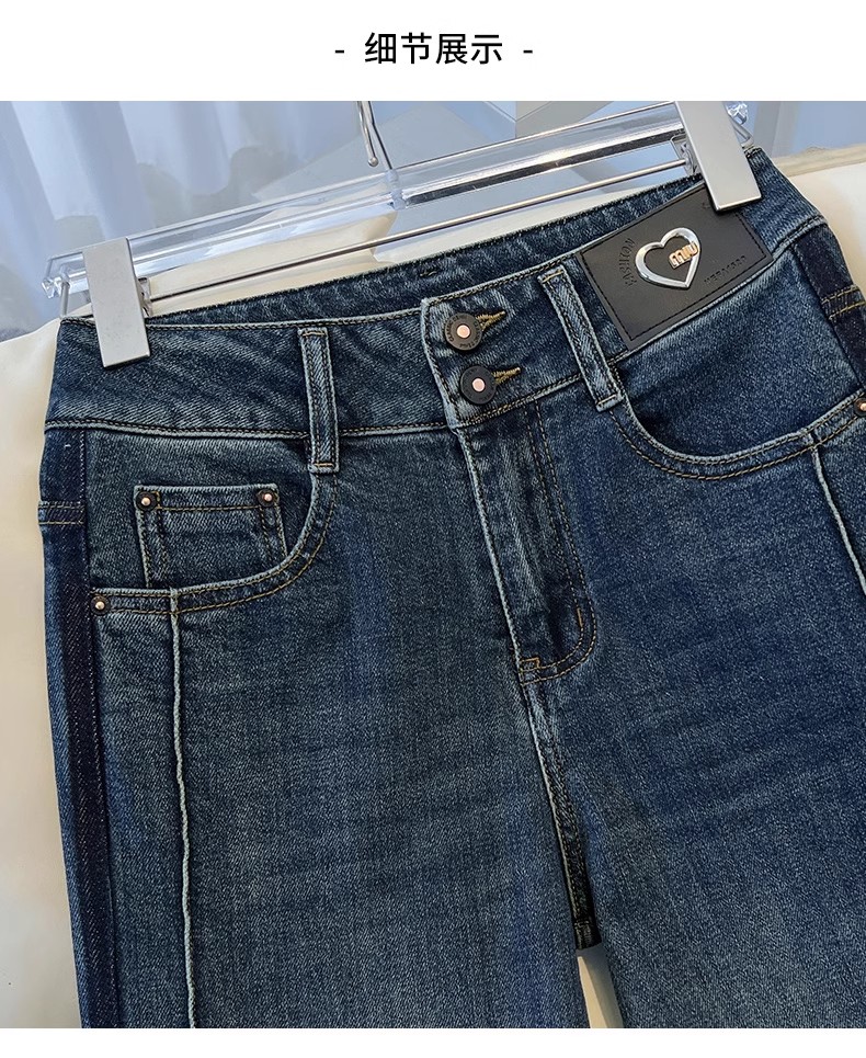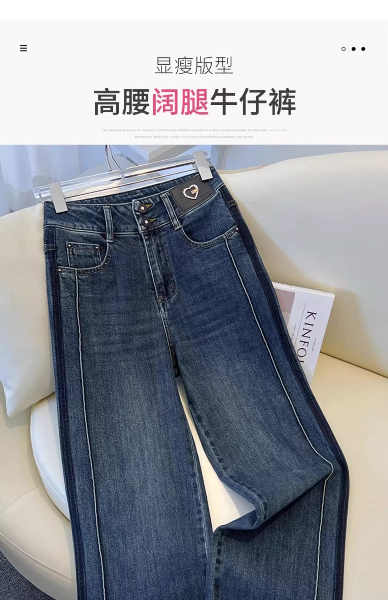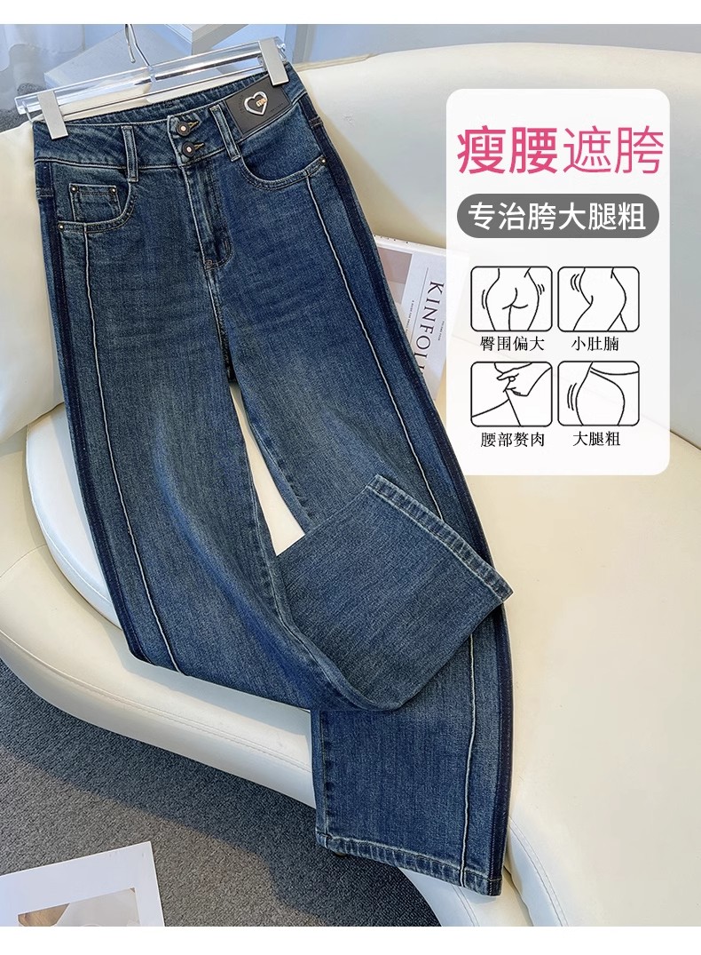 PF1572#直筒牛仔裤女 新款小个子高腰美式设计感拼接窄版阔腿裤子