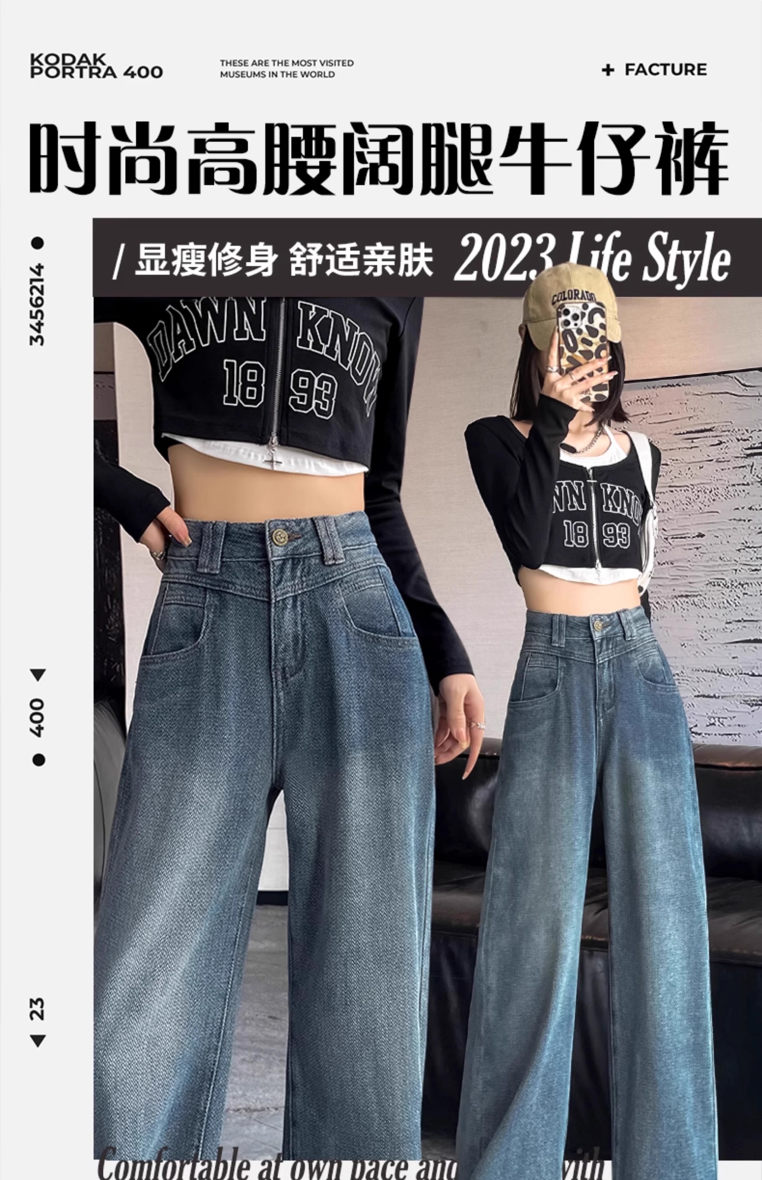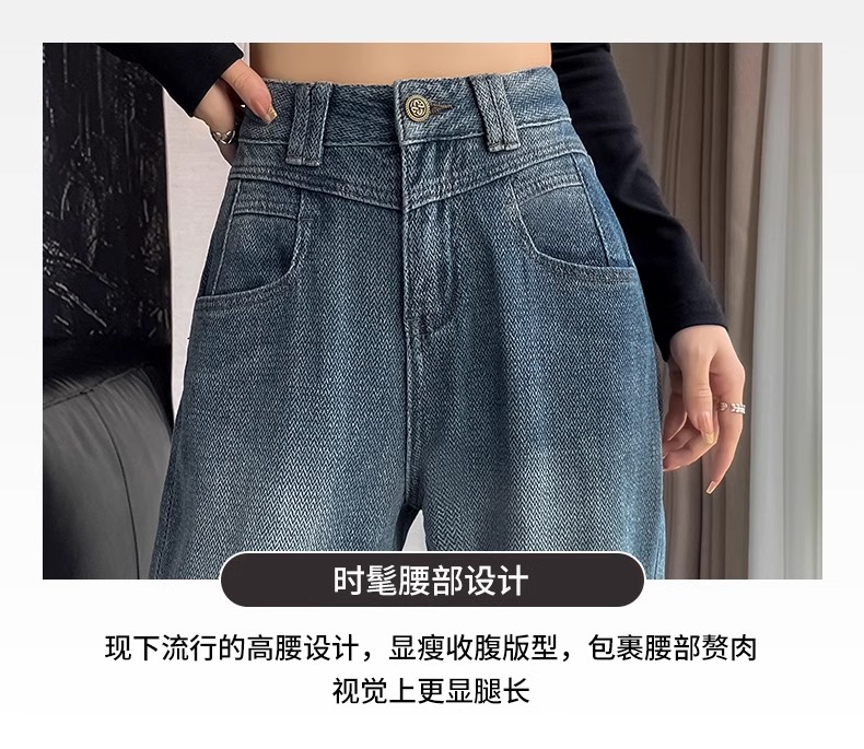 PF1573#高腰阔腿牛仔裤女 新款显瘦宽松拖地星空纹直筒裤子