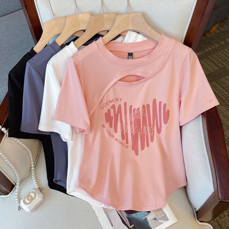 PF1582#大码女装 夏季新款设计感镂空宽松显瘦印花短袖T恤上衣