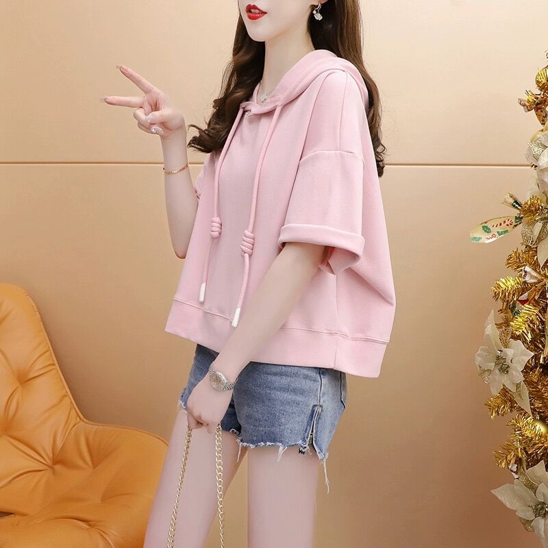PF1668#纯棉/后包领/宽松连帽短款设计感短袖T