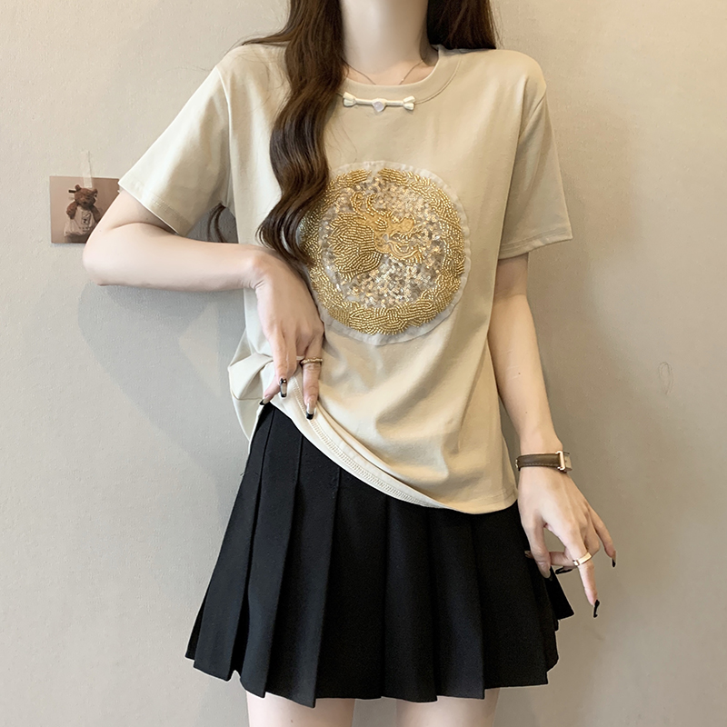 PF1764#新款胖mm大码高级感中国风百搭新中式刺绣上衣T恤