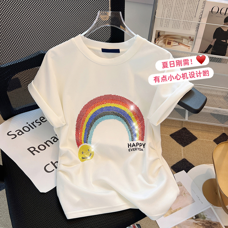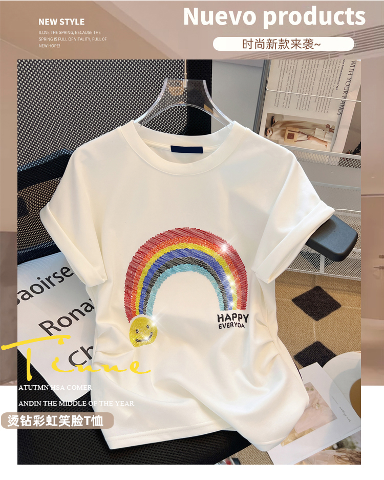 PF1794#高端大牌短袖T恤女设计感女小众修身洋气减龄圆领撞色短款上衣bm