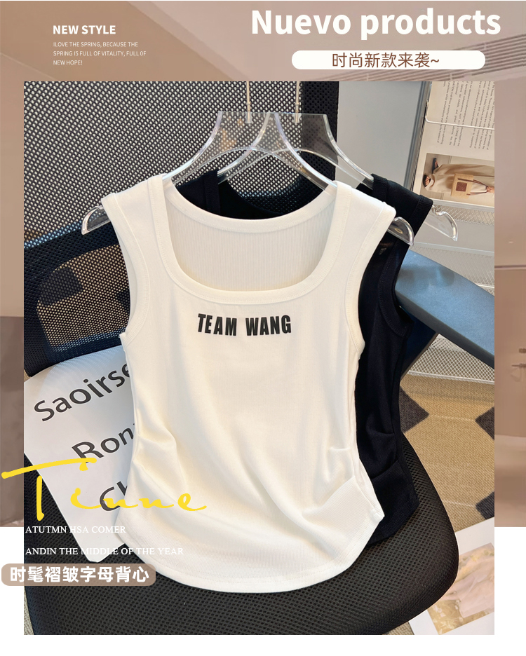 PF1798#白色字母背心女内搭 新款夏外穿美式小吊带辣妹无袖遮副乳上衣