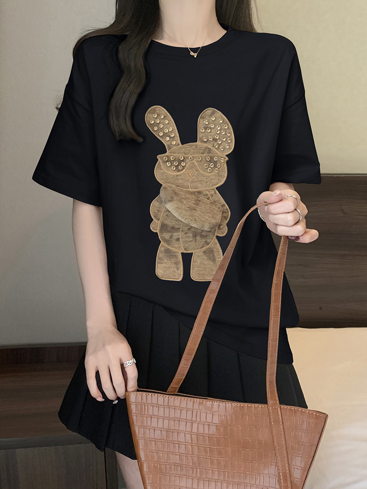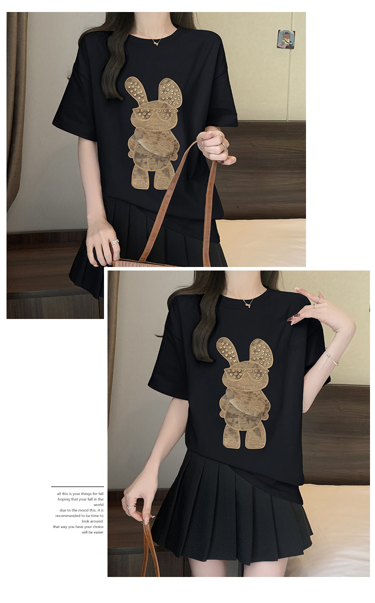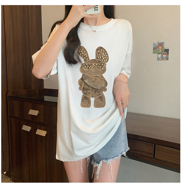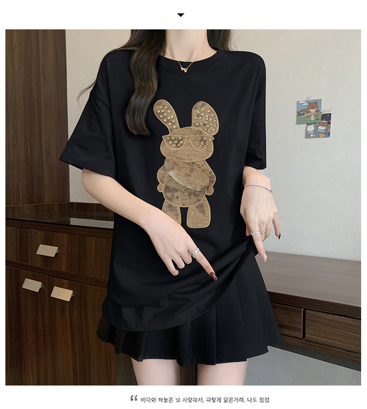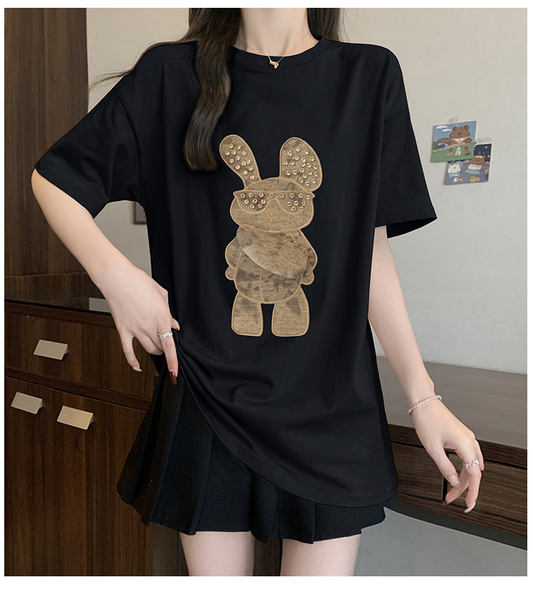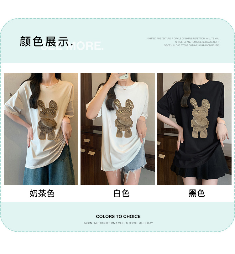 PF1809#大码胖mm2024春夏新款大版中长款重磅潮牌T恤短袖女欧货重工洋气
