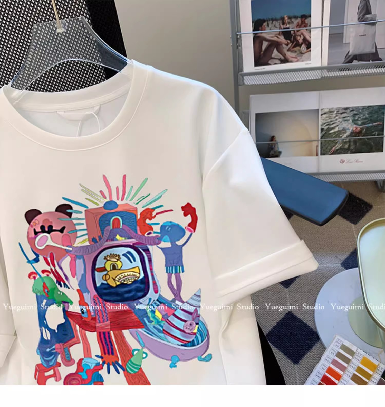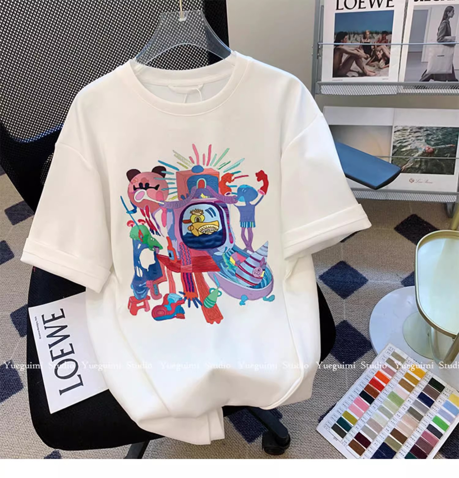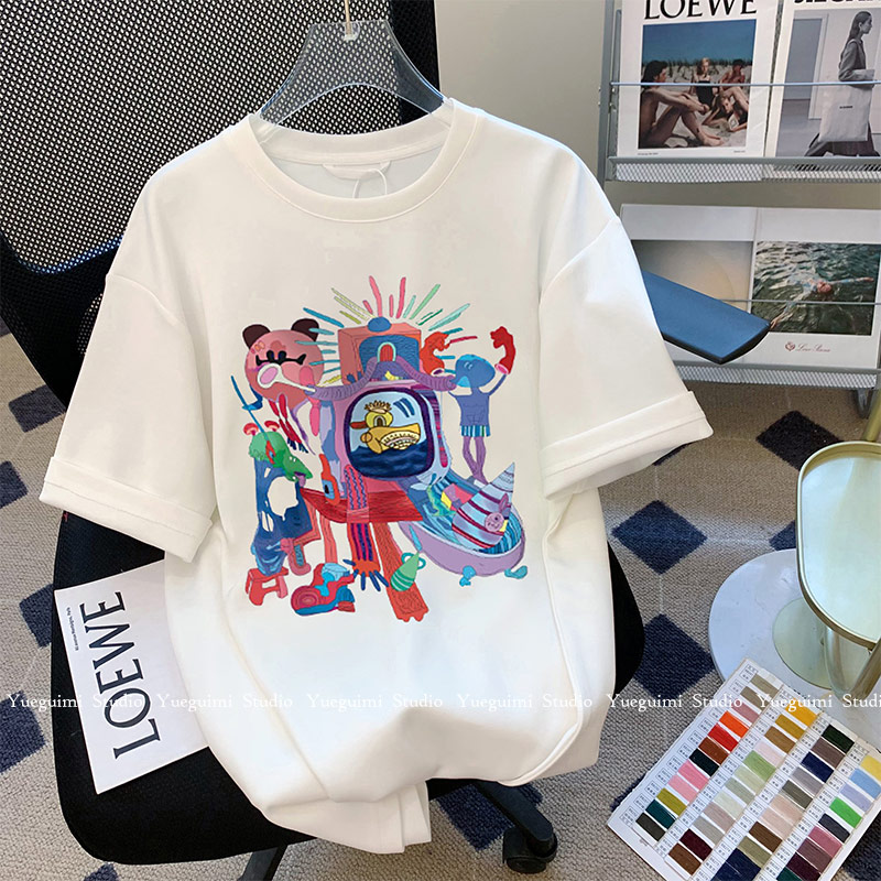 PF1812#宽松休闲印花T恤夏新款字母百搭落肩短袖女