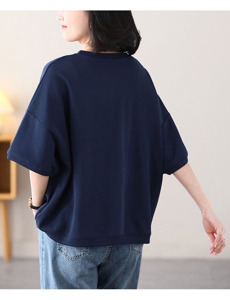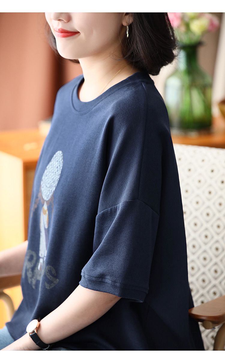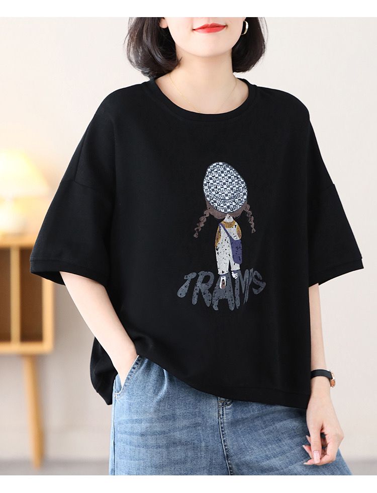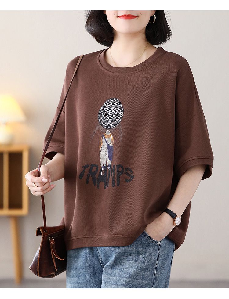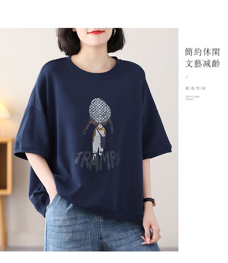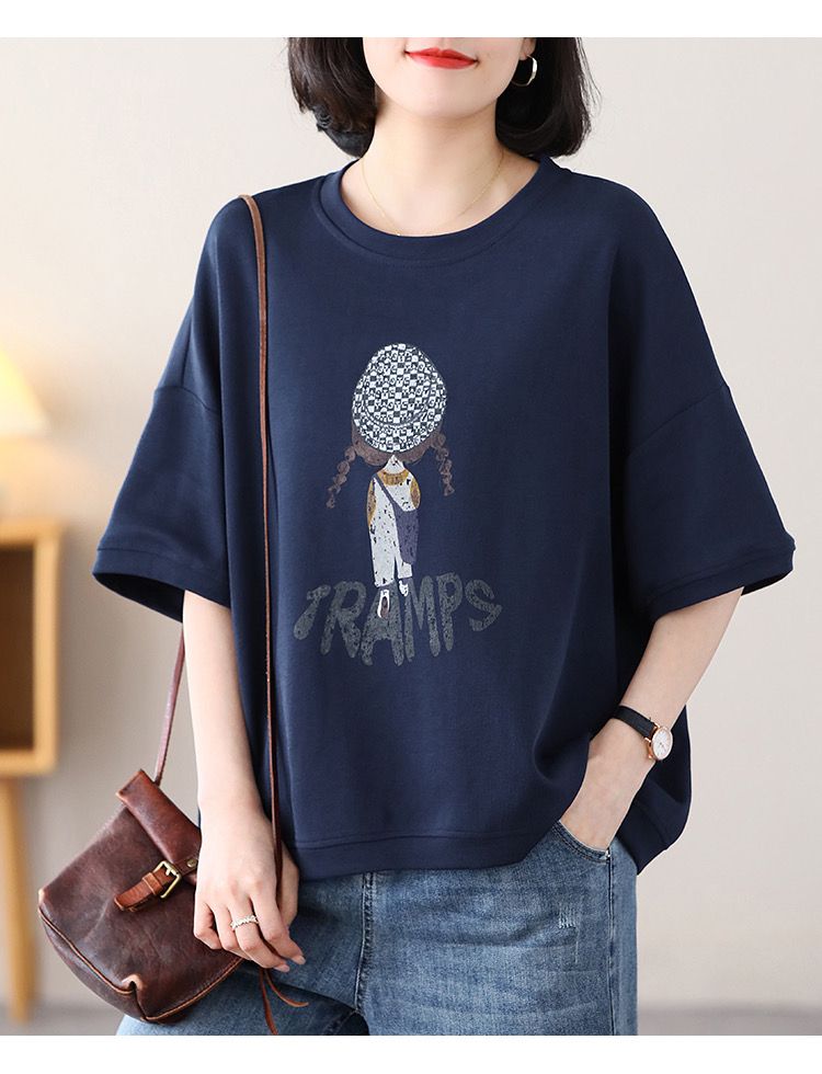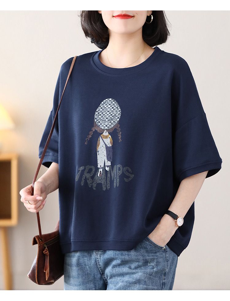PF1813#圆领短袖T恤女简约印花宽松显瘦休闲百搭韩版大码中袖打底