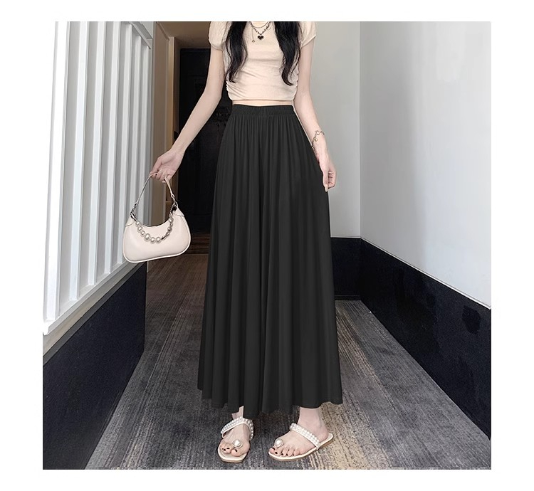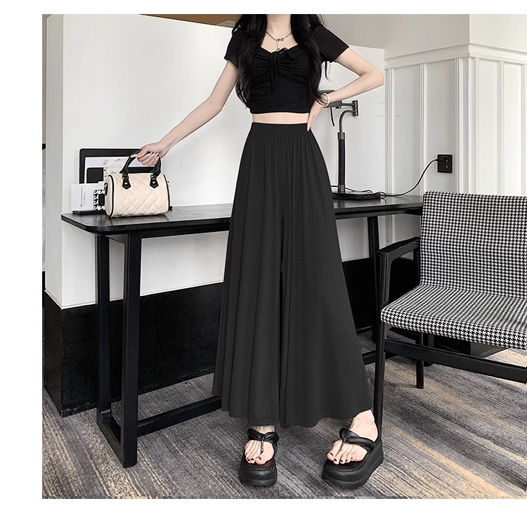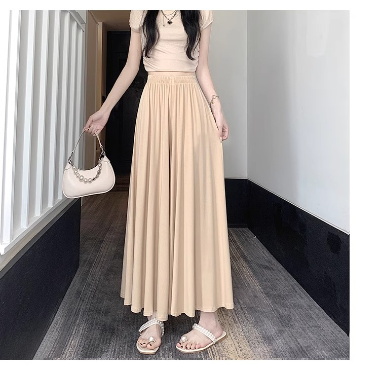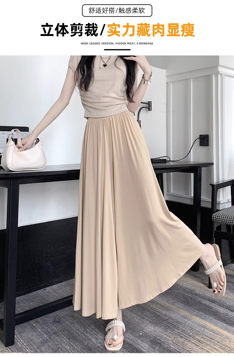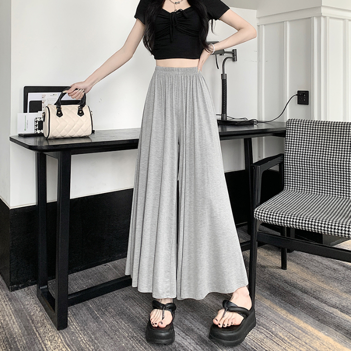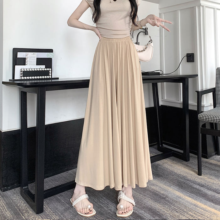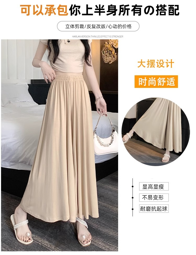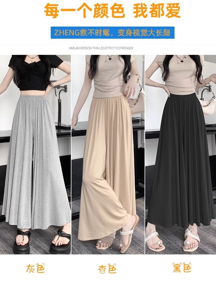 PF1829#时尚超火松紧腰飘飘裤裙子女夏季薄款莫代尔阔腿裤高腰宽松垂感