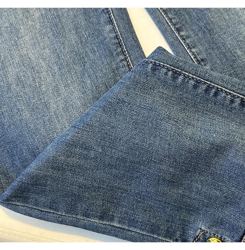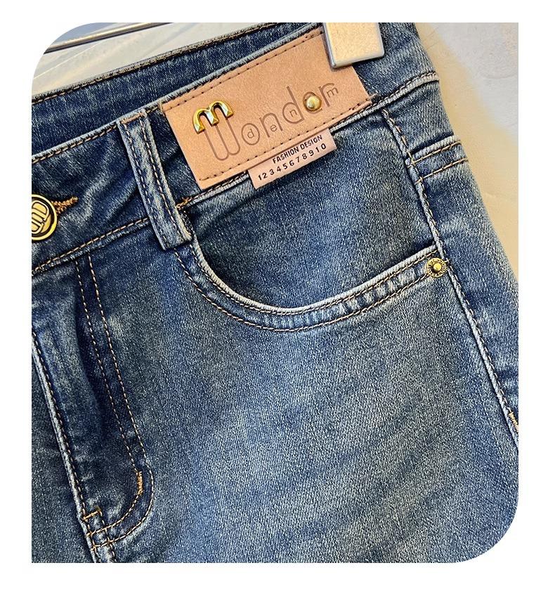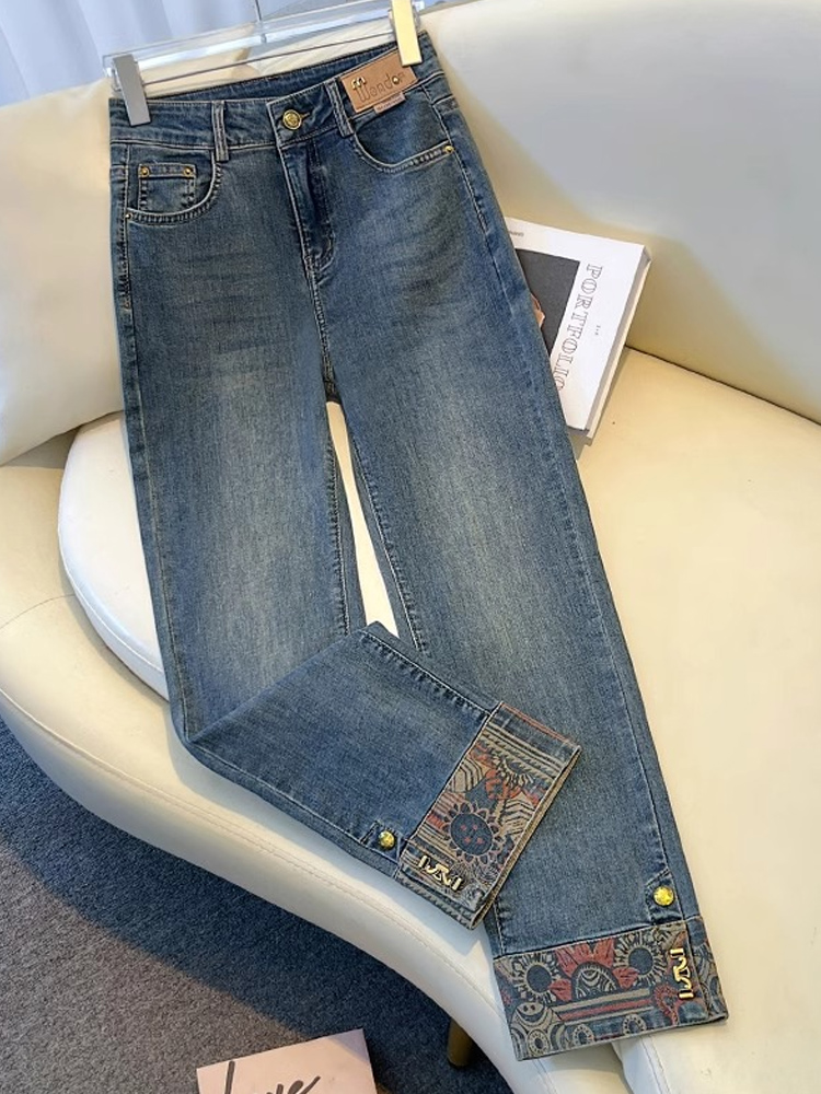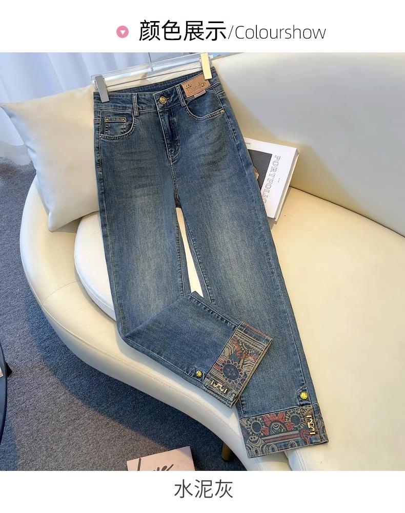 PF1840#直筒牛仔裤女春夏 新款高腰百搭梨型身材小个子拼接九分烟管裤