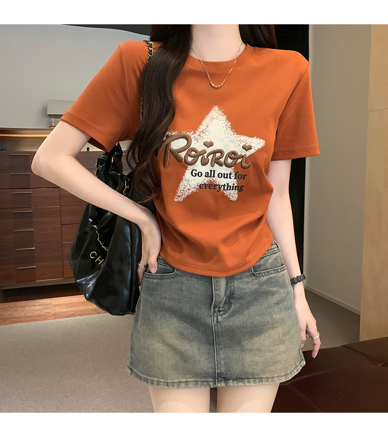 PF1887#字母刺绣粉色短袖T恤女 夏季新款纯棉百搭体恤修身短款上衣