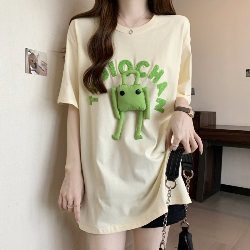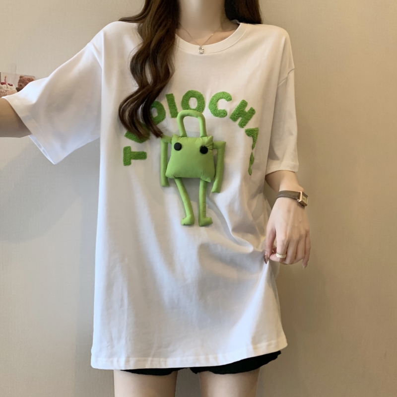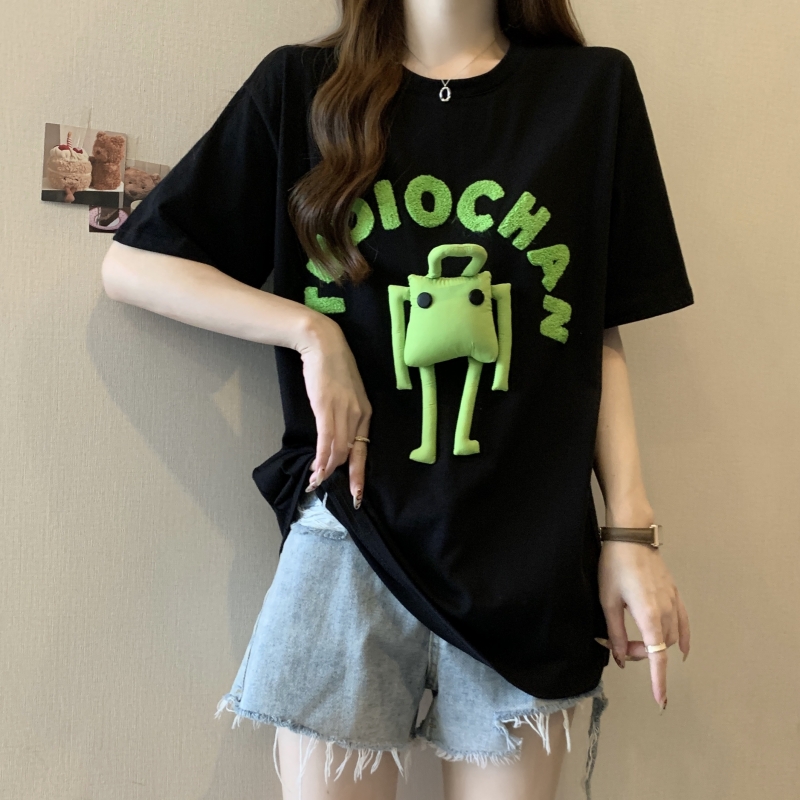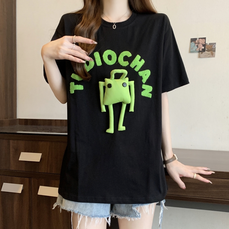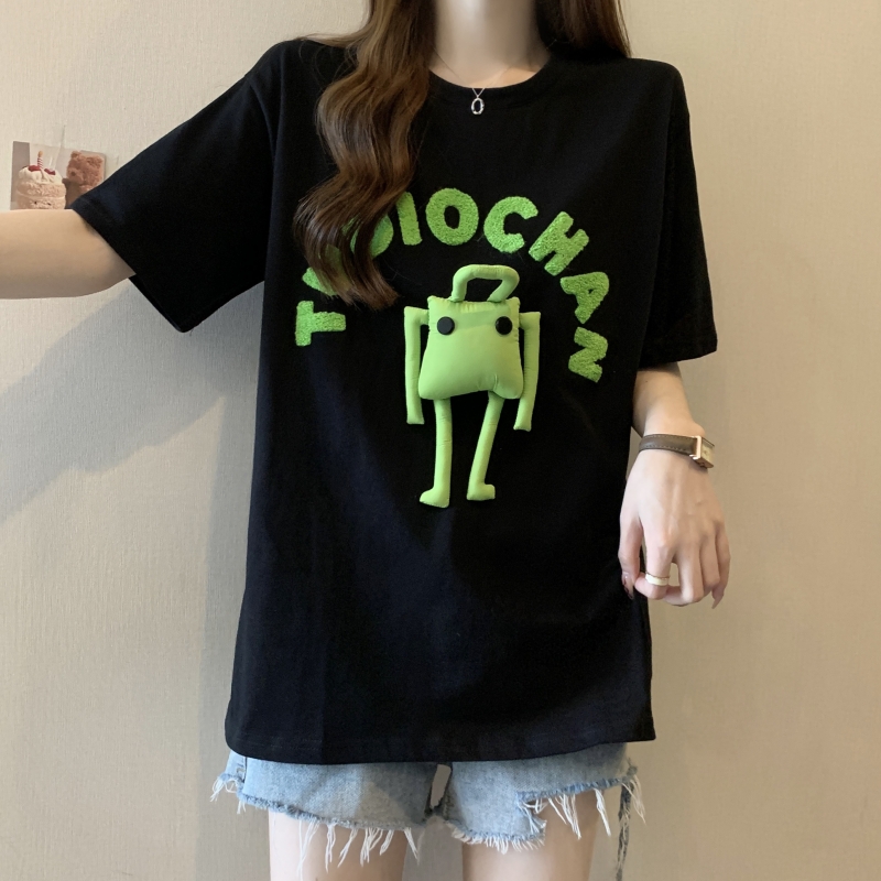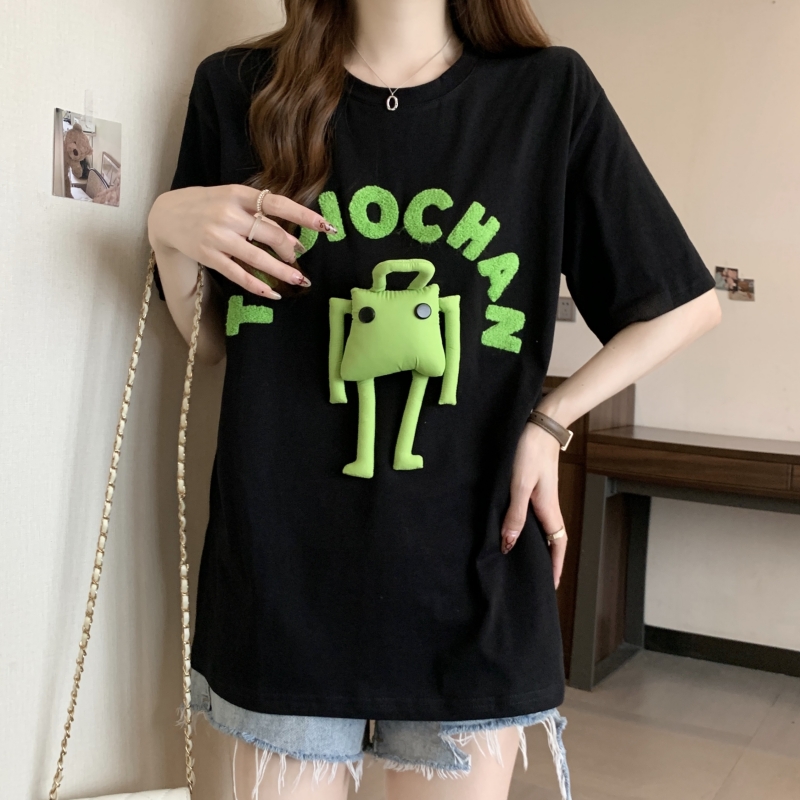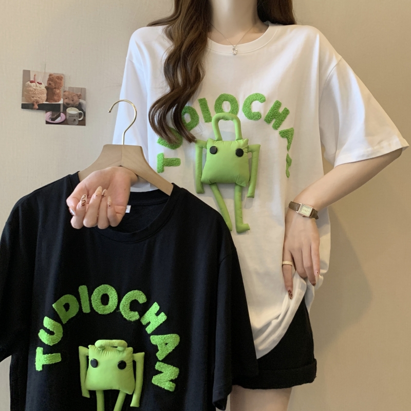 PF1900#夏装纯棉 毛巾绣公仔短袖T恤女宽松