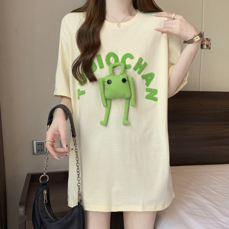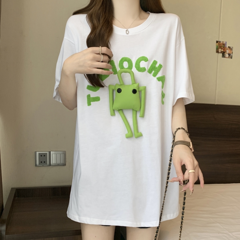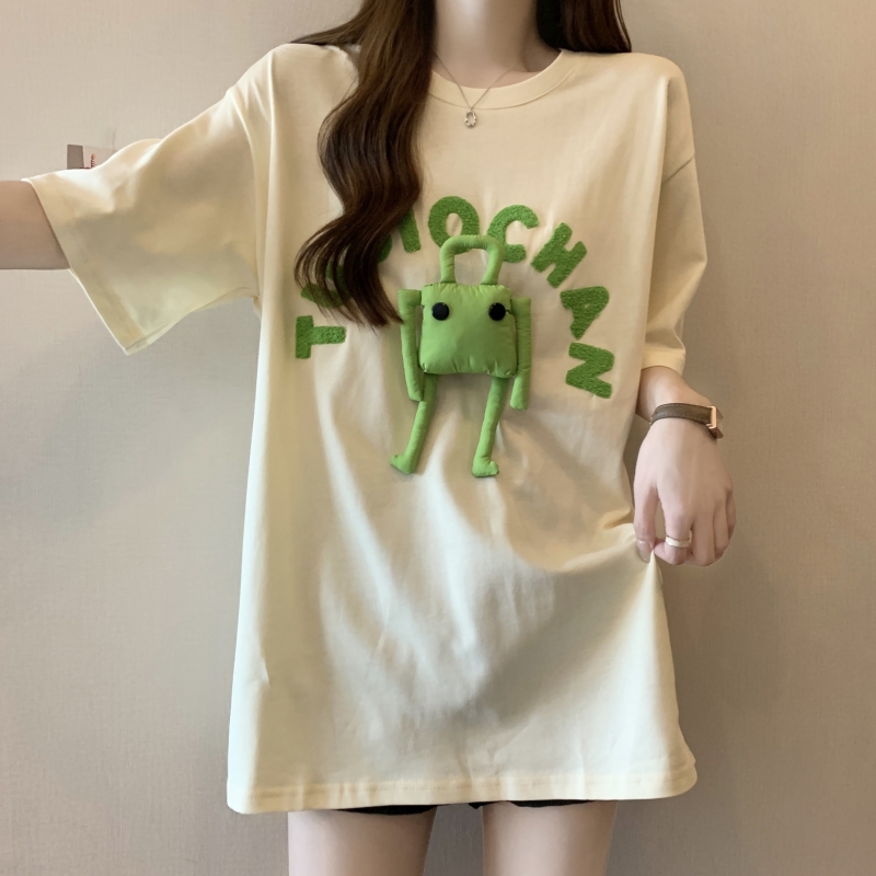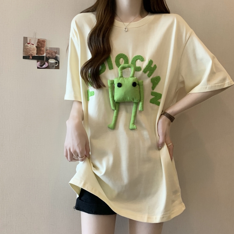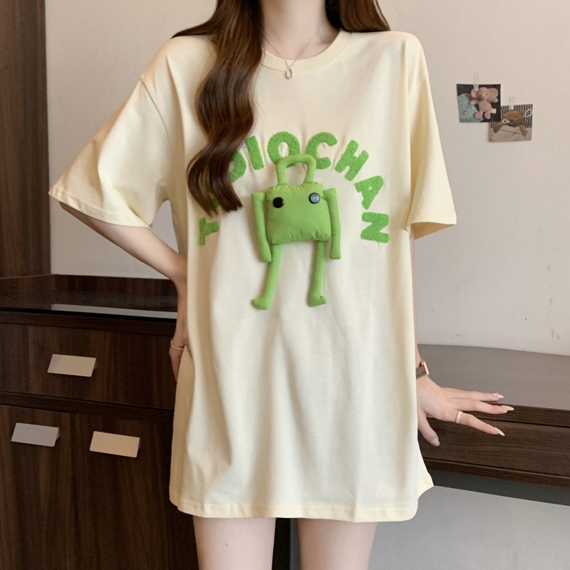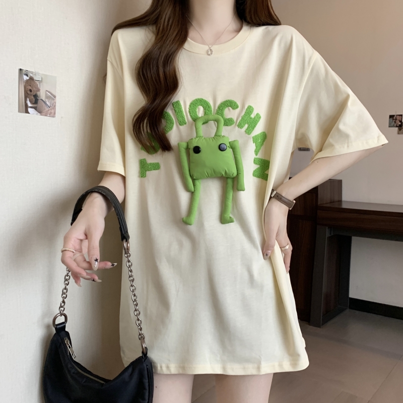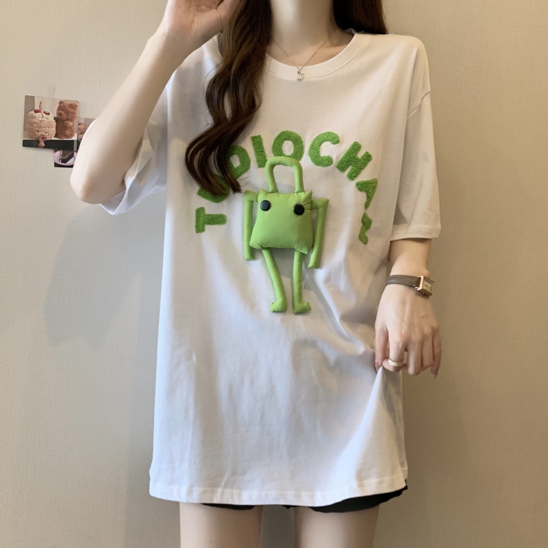PF1900#夏装纯棉 毛巾绣公仔短袖T恤女宽松