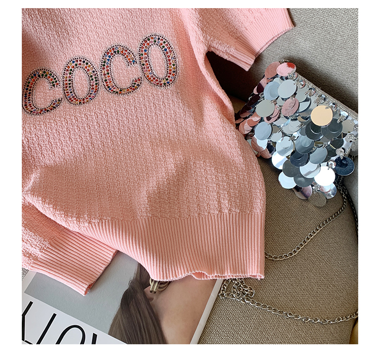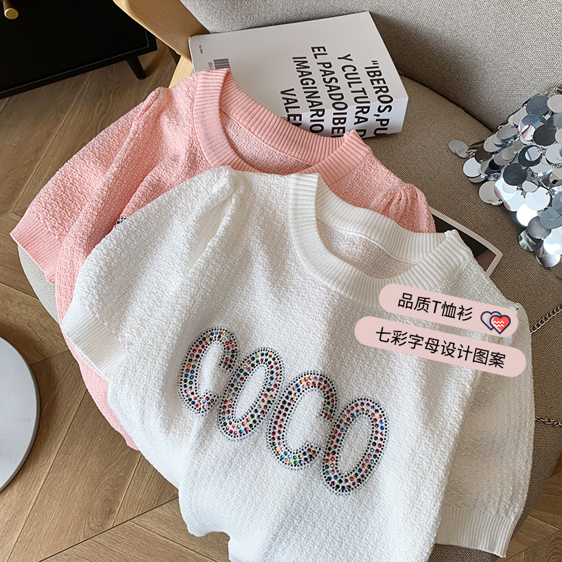 PF1930#新款洋气时尚减龄气质超好看宽松显瘦百搭粉色针织短袖