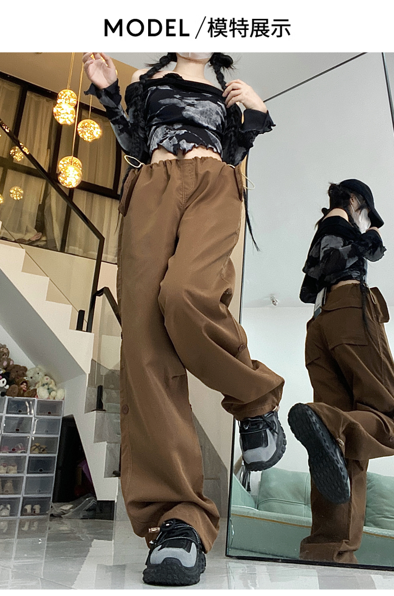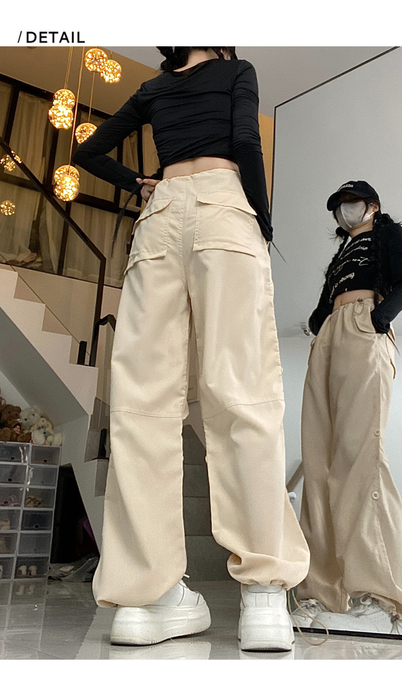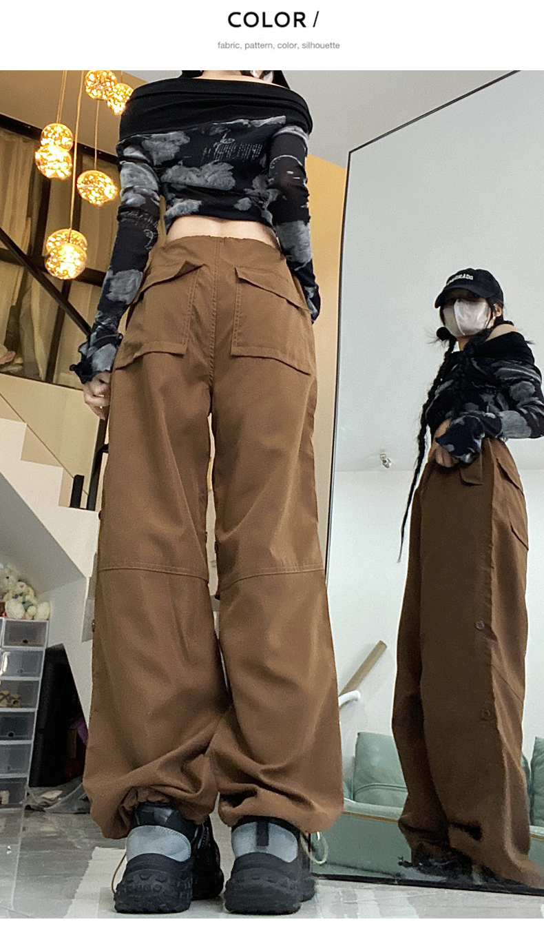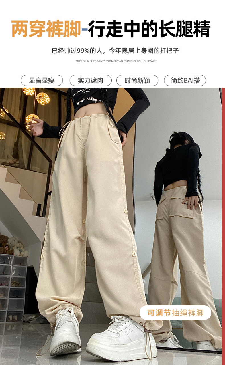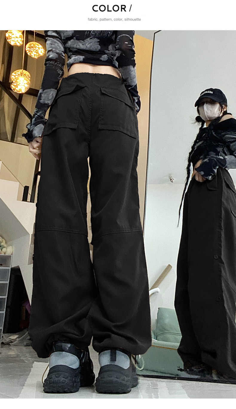 PF1955#新款多口袋拖地工装裤女高腰宽松直筒裤阔腿裤