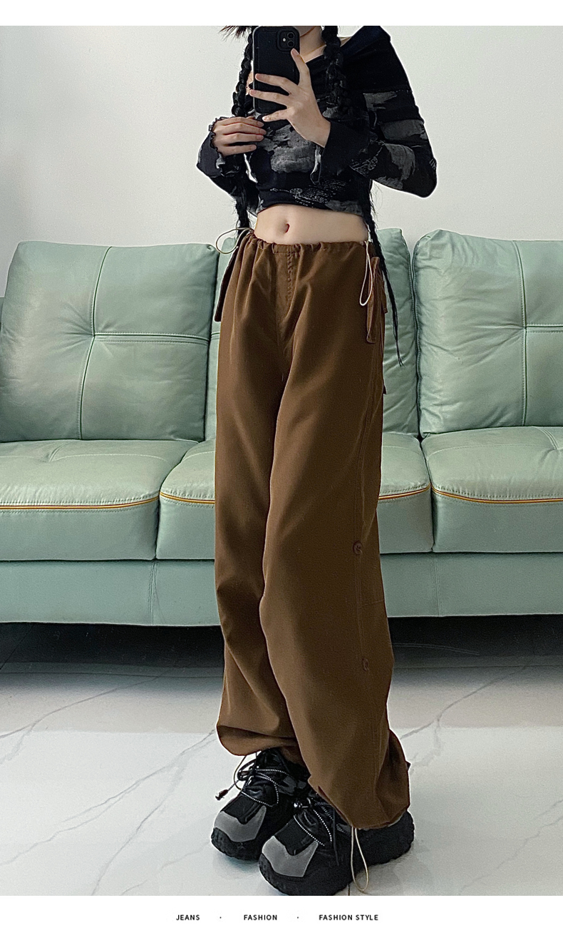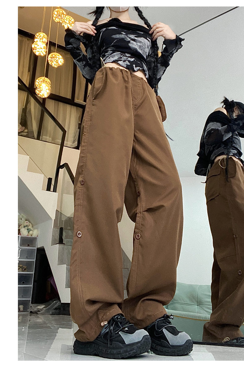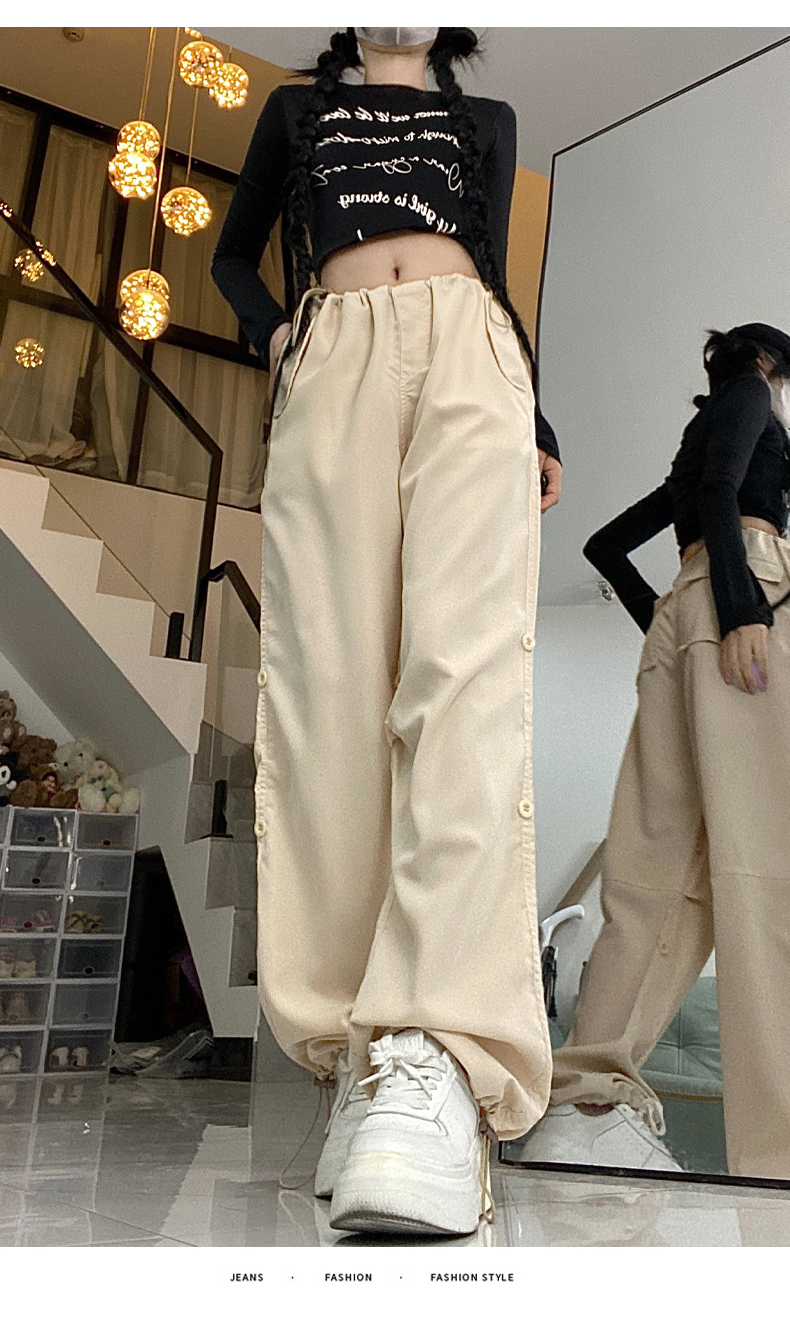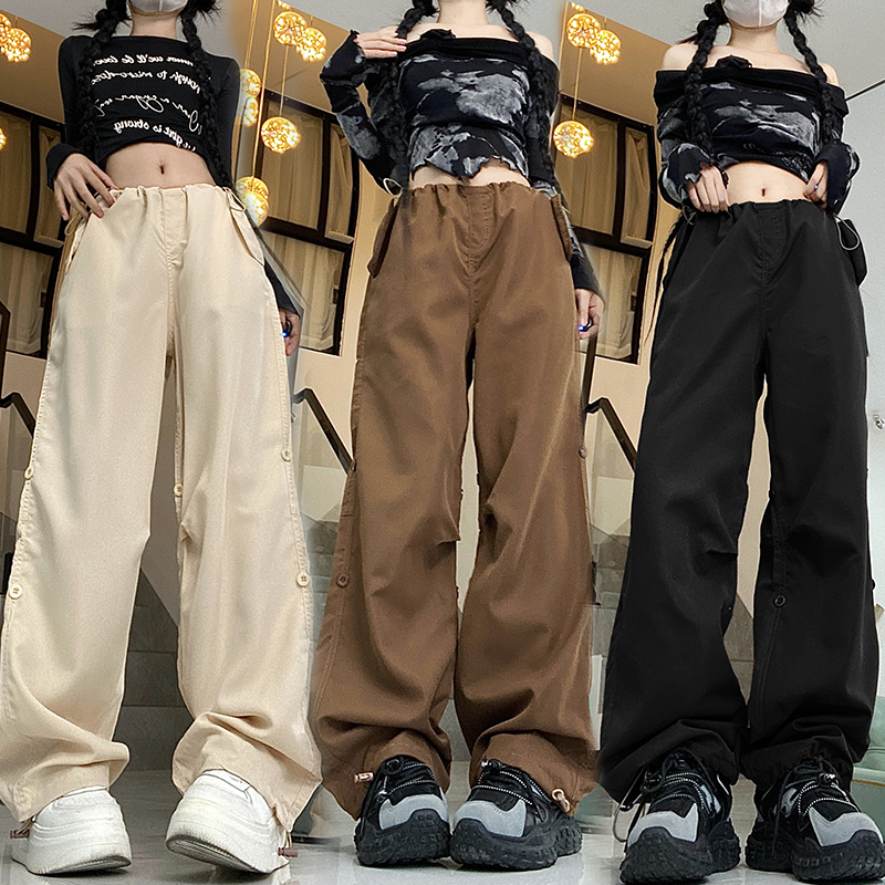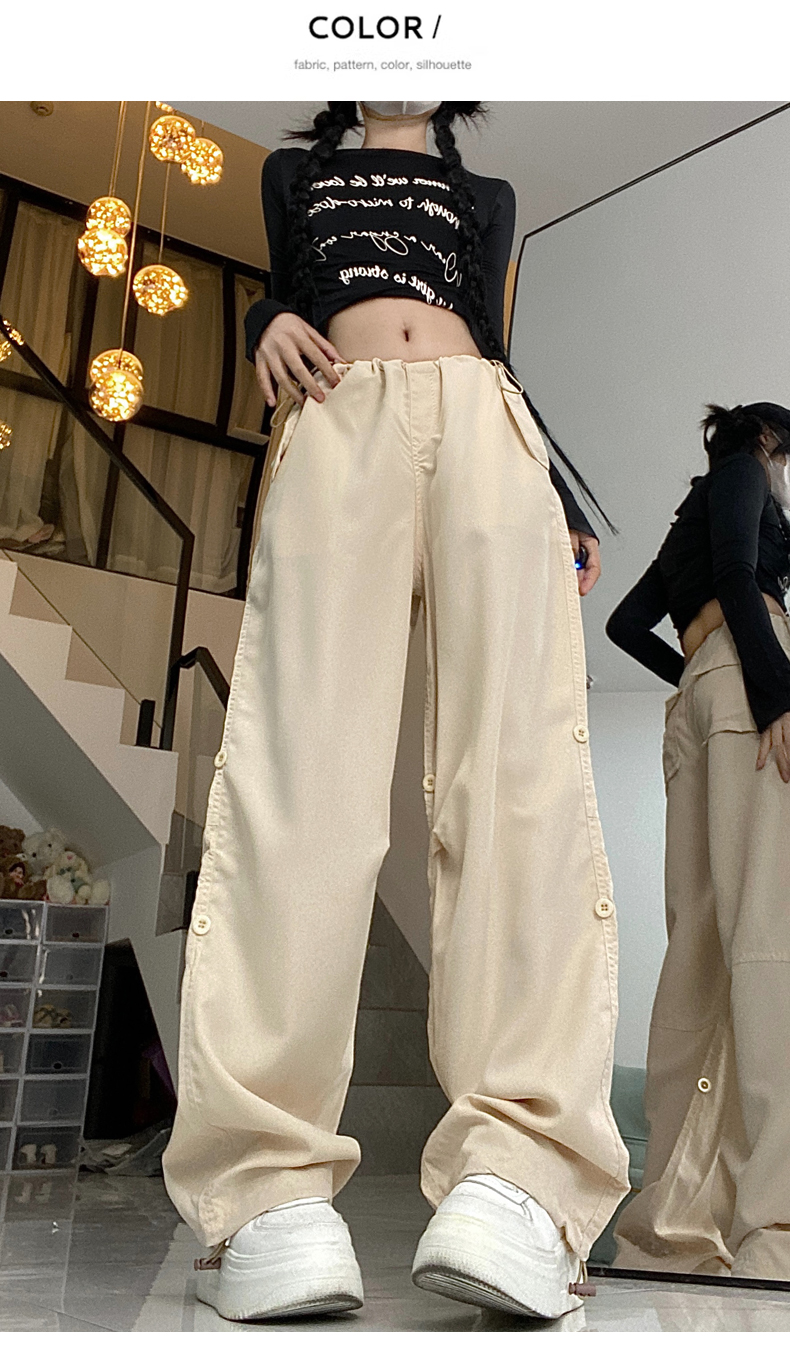 PF1955#新款多口袋拖地工装裤女高腰宽松直筒裤阔腿裤