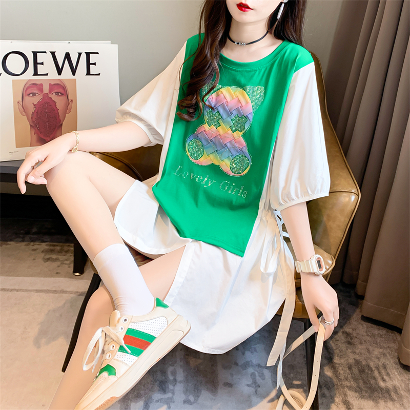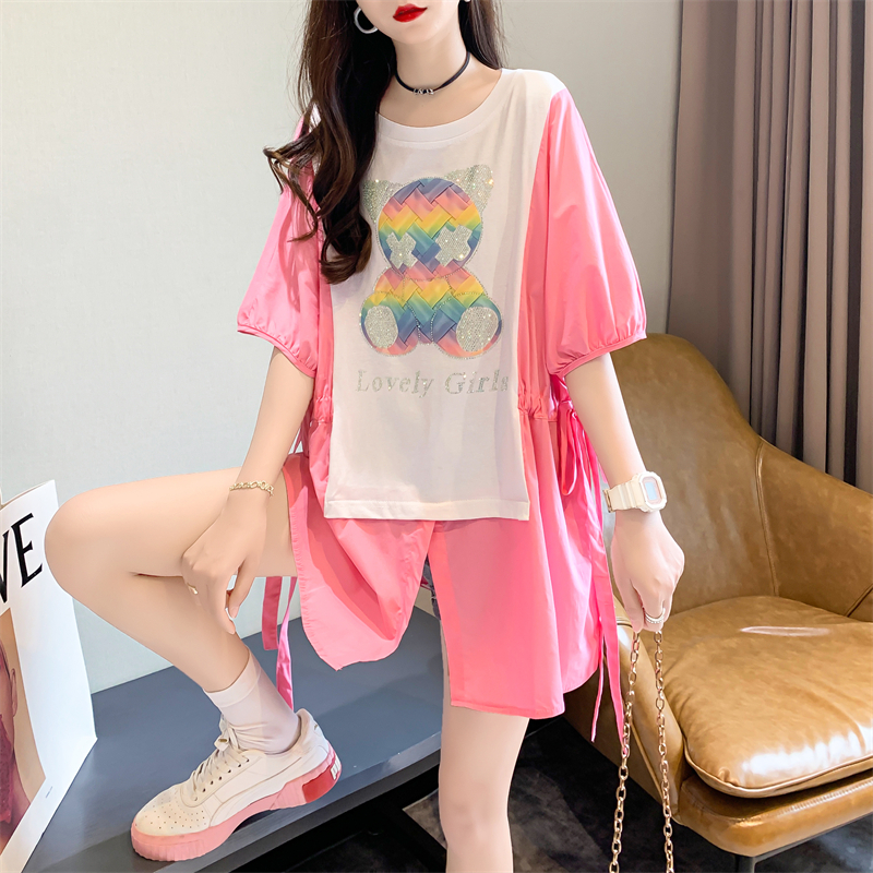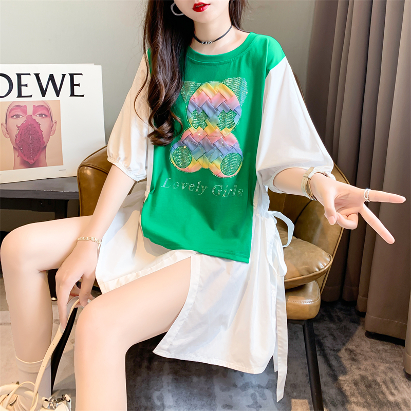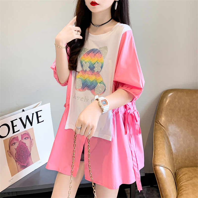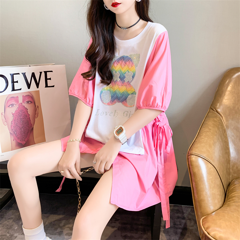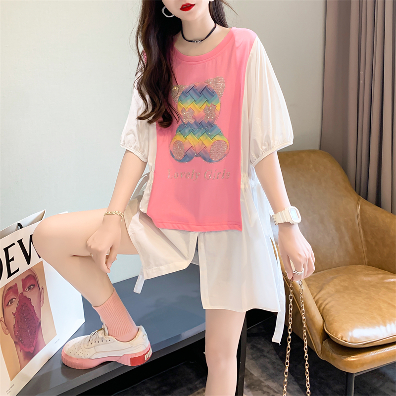 PF2019#设计感短袖t恤女中长款宽松慵懒风休闲洋气减龄上衣