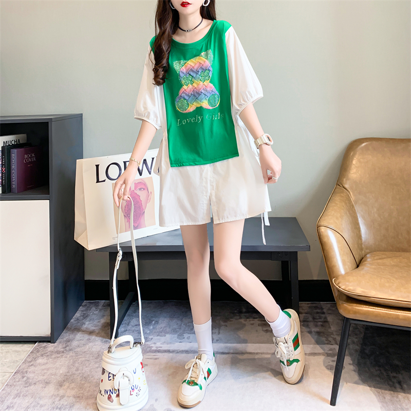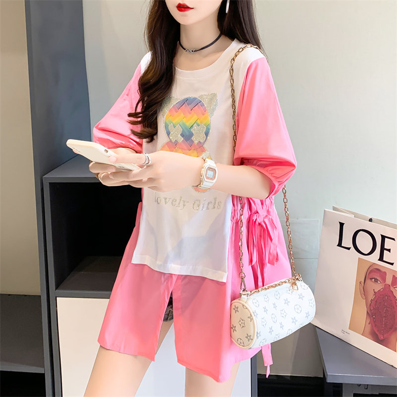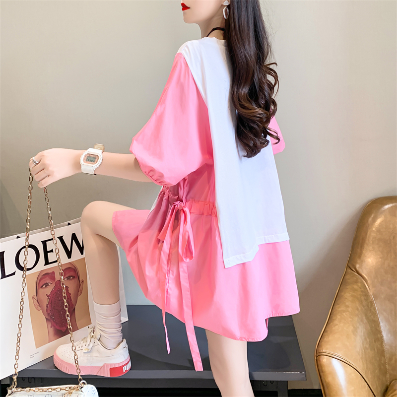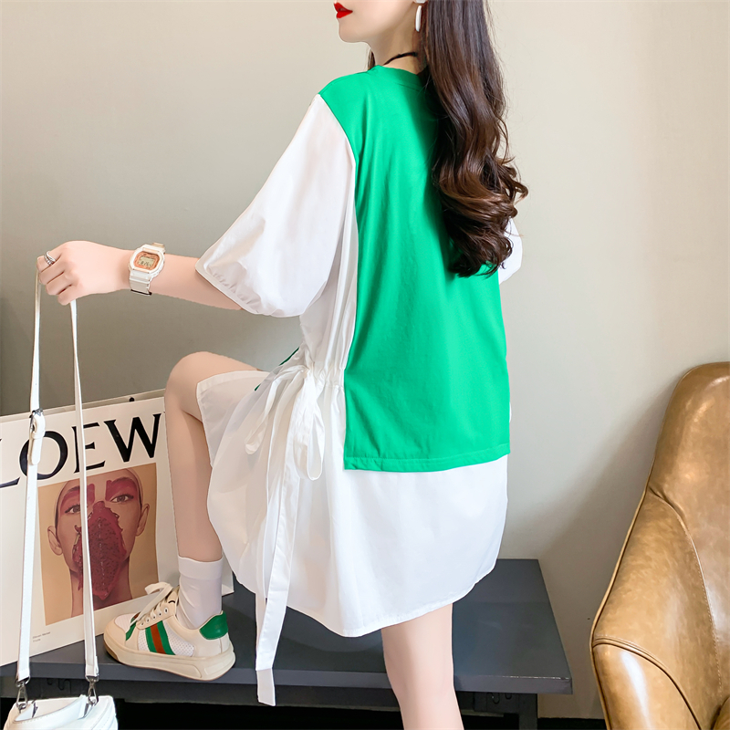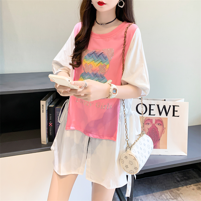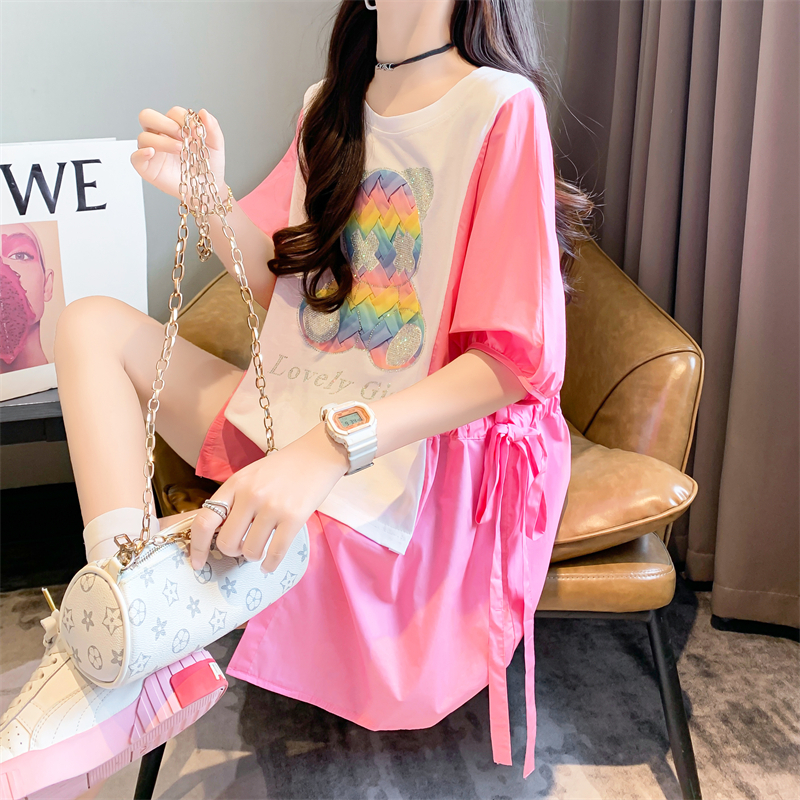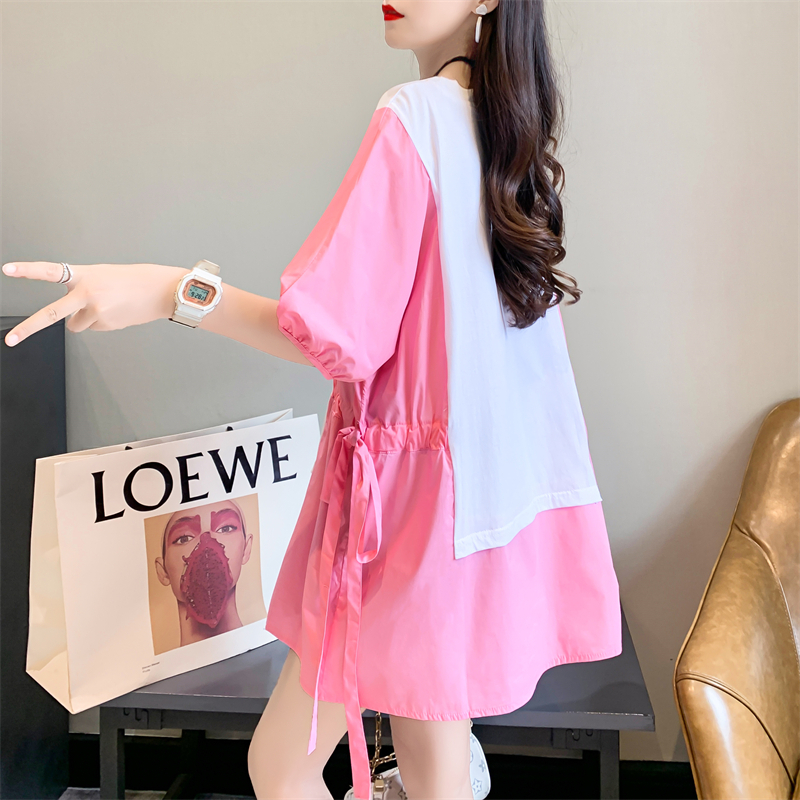 PF2019#设计感短袖t恤女中长款宽松慵懒风休闲洋气减龄上衣